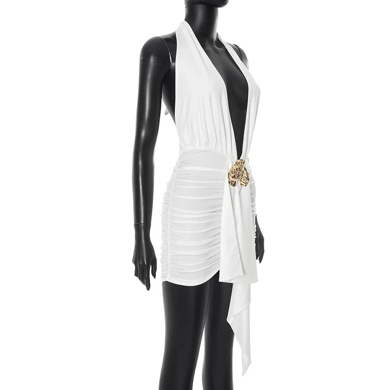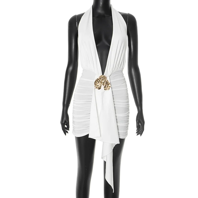 Avrilyaan Abito senza maniche con nastro pieghettato con scollo all'americana Donna Mini Abito estivo 2025 Abiti da festa sexy senza schienale con scollo a V profondo Abiti 1Avrilyaan Abito senza maniche con nastro pieghettato con scollo all’americana Donna Mini Abito estivo 2025 Abiti da festa sexy senza schienale con scollo a V profondo Abiti