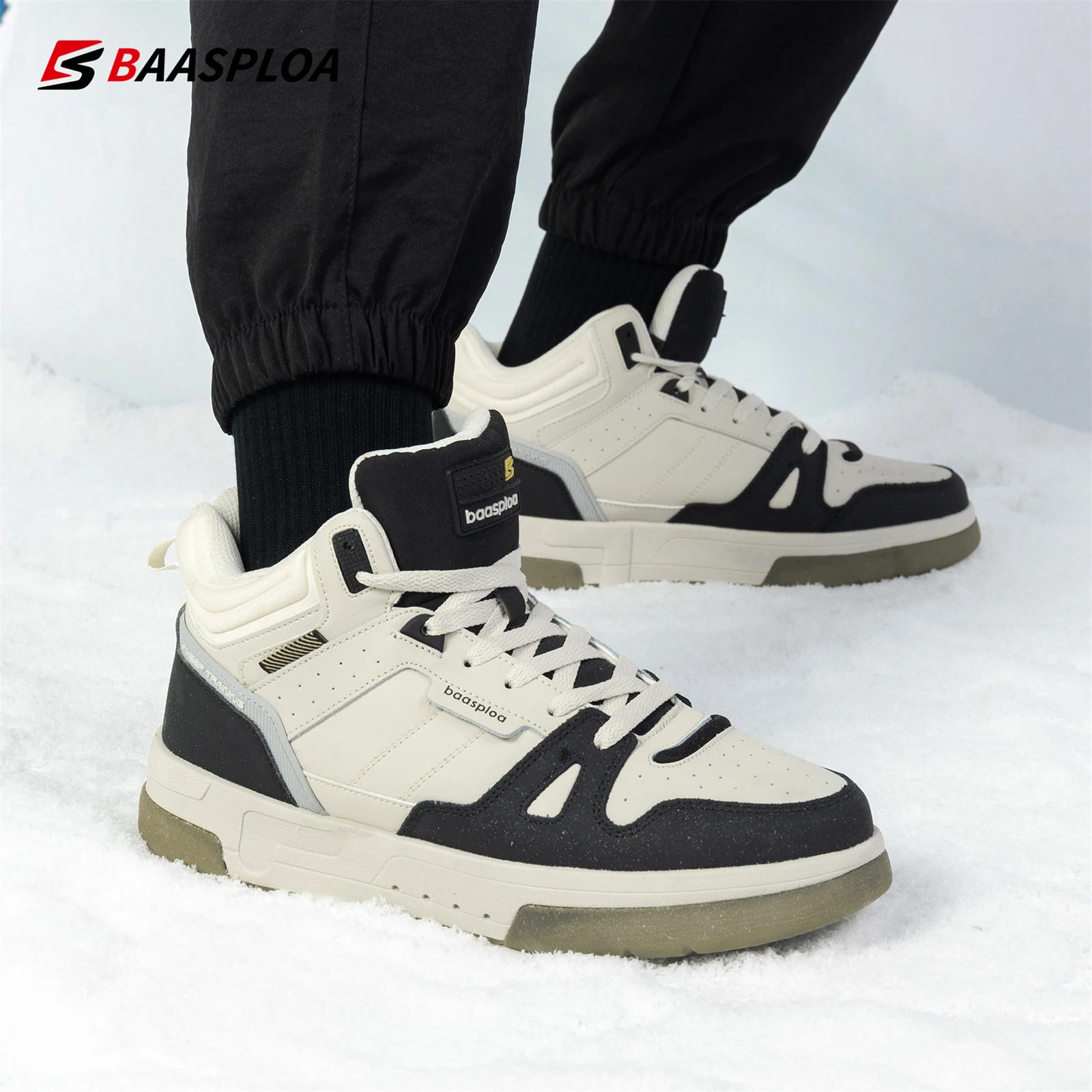 Baasploa Scarpe da ginnastica invernali da uomo Scarpe da skateboard casual da uomo Scarpe da ginnastica maschili da esterno antiscivolo in peluche caldo cotone impermeabile