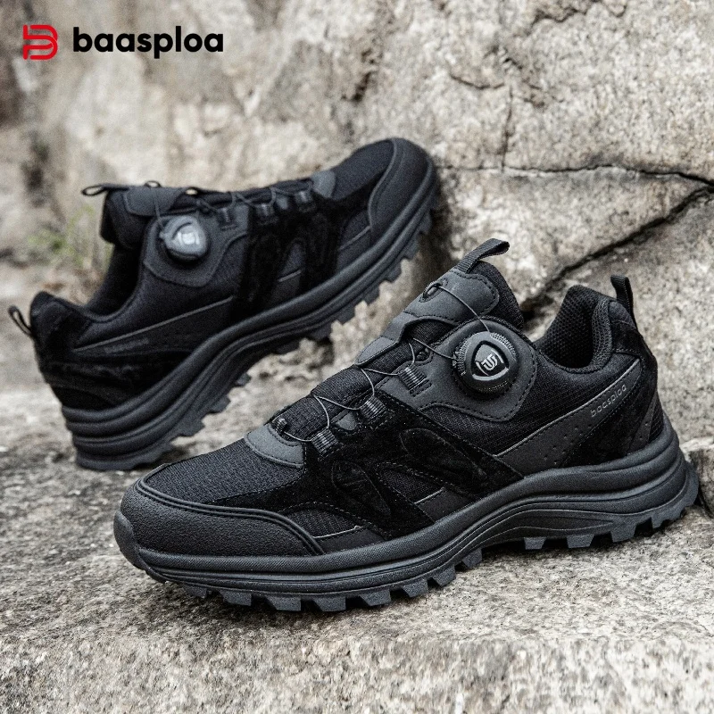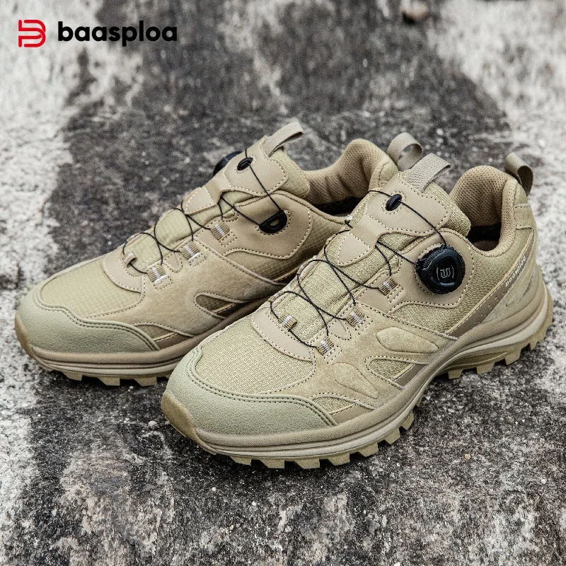 Baasploa Scarpe da trekking da uomo Scarpe da ginnastica da esterno in pelle antispruzzo Scarpe da passeggio da trail con bottone rotante comfort maschile antiscivolo