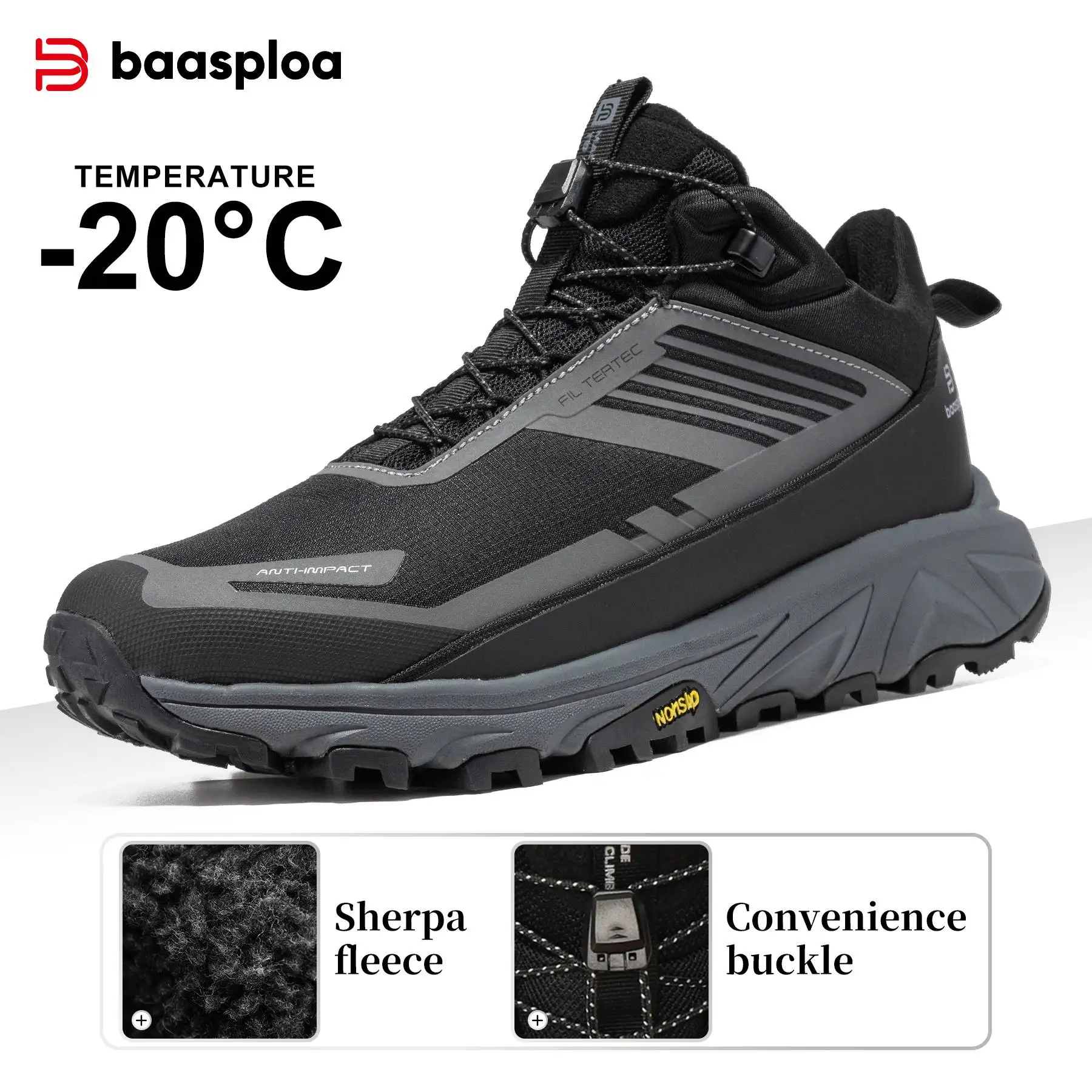 Baasploa Scarpe da trekking da uomo Scarpe da ginnastica resistenti all’acqua da esterno Scarpe da passeggio casual calde e comode invernali da uomo antiscivolo