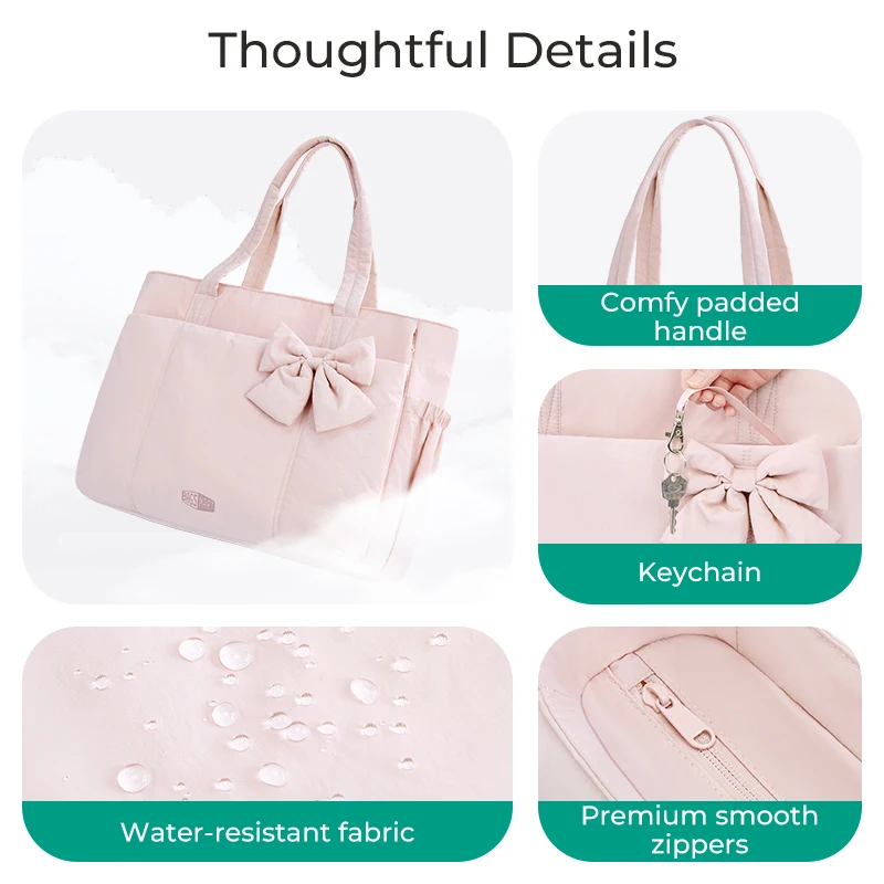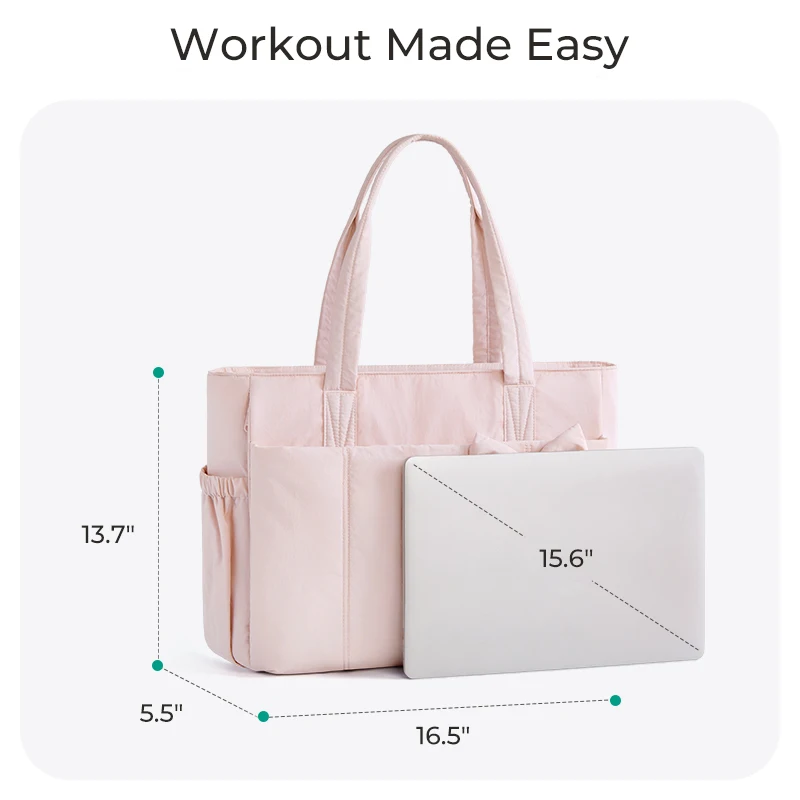 Questa elegante borsa è realizzata per i professionisti impegnati che vanno dal lavoro all’allenamento.Si adatta al tuo laptop, ai documenti, ai vestiti da palestra e persino a un tappetino da yoga, il tutto in una borsa.Lo scomparto bagnato/asciutto mantiene separati gli indumenti sudati, mentre il design pulito e moderno si abbina a qualsiasi outfit da ufficio.Il morbido dettaglio del fiocco aggiunge un tocco femminile ed elegante, donando leggerezza, fascino e una personalità giocosa alla tua routine quotidiana.