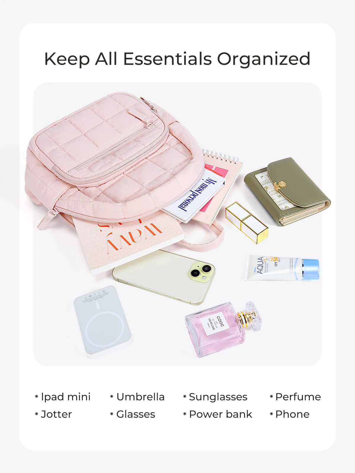 Comfort migliorato: goditi un comfort superiore in movimento con spallacci imbottiti e regolabili che distribuiscono il peso in modo uniforme.Il pannello posteriore in rete traspirante del simpatico zaino da donna fornisce un supporto ergonomico e ti mantiene fresco durante l’uso prolungato, garantendo un’esperienza di trasporto confortevole sia che tu sia carico di libri o di viaggio leggero