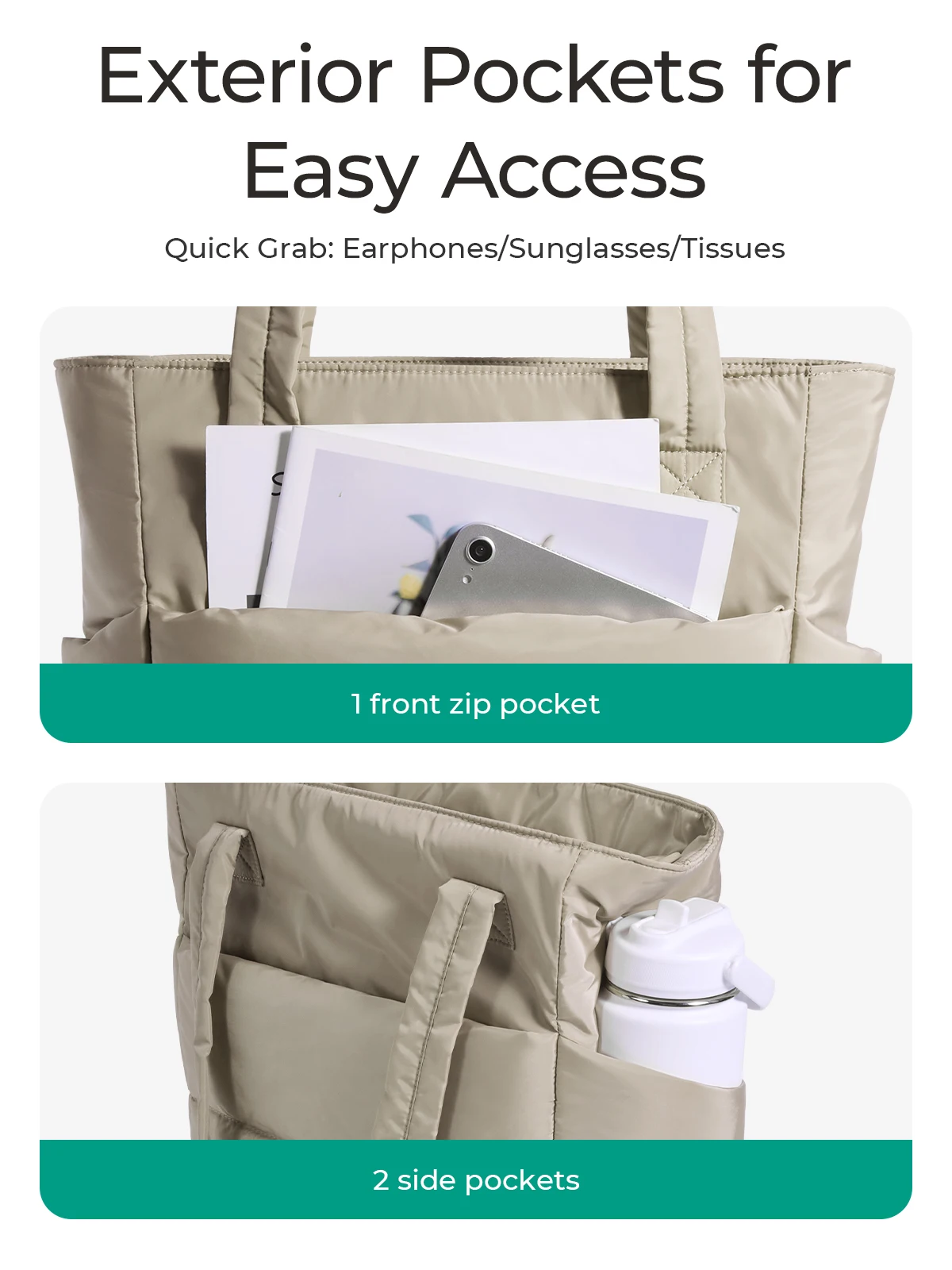 Multitasche: dimensioni sottili – 13,2”L (lunghezza inferiore) / 16,1”L (lunghezza superiore) x 5,1”Lx 15,7’H/ dimensioni standard: 16,1”L x 6,1”Lx 12,2”H.La borsa tote da donna manifesta molte tasche separate.1 scomparto principale multistrato può contenere facilmente un computer portatile da 15,6", una cartella A4, vestiti, ecc.2 tasche laterali allargate + 1 tasca frontale ti consentono di accedere rapidamente agli oggetti di cui hai bisogno.Rifiutando zaini come i conchiglie delle tartarughe, meriti una borsa tote grande ed elegante.