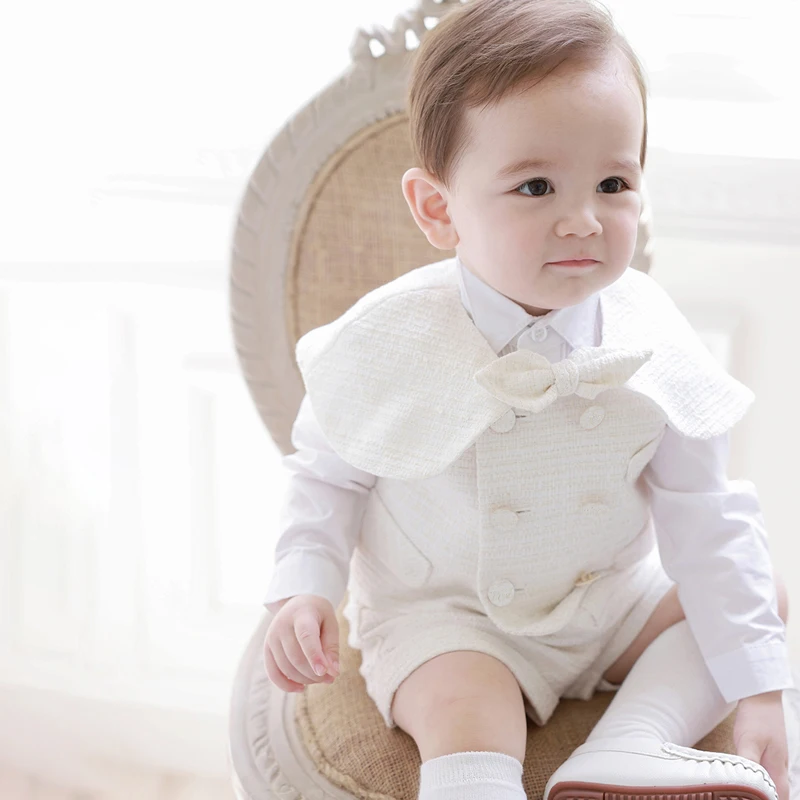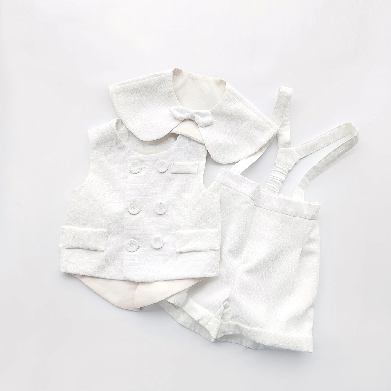 Bambini 4 pezzi Set di abbigliamento autunnale Ragazzi bianchi Abiti formali Gilet Camicie Scialle Pantaloncini Abiti con papillon Abito da boutique di compleanno per bambini 1Bambini 4 pezzi Set di abbigliamento autunnale Ragazzi bianchi Abiti formali Gilet Camicie Scialle Pantaloncini Abiti con papillon Abito da boutique di compleanno per bambini