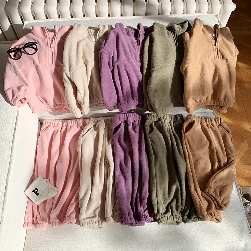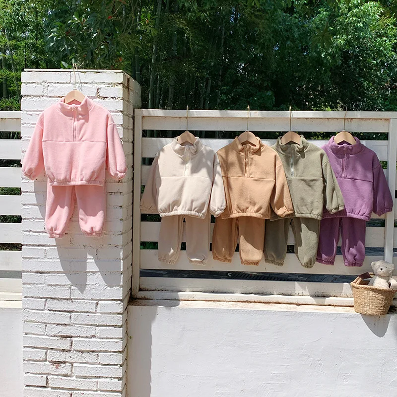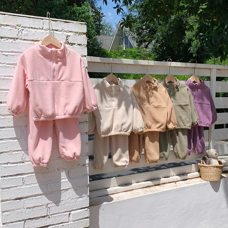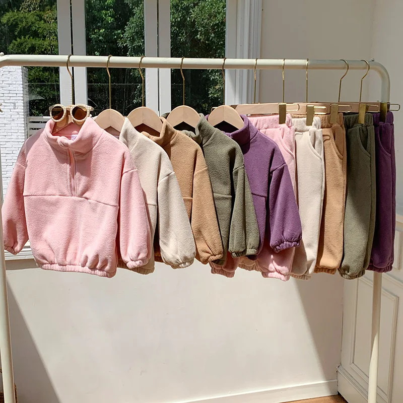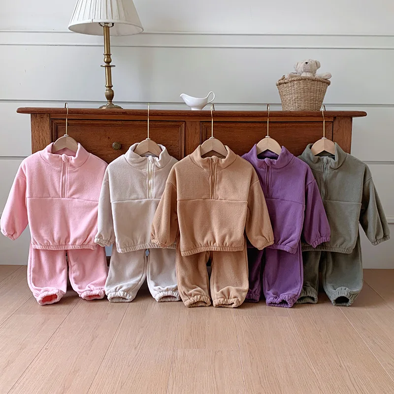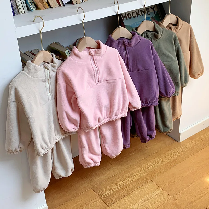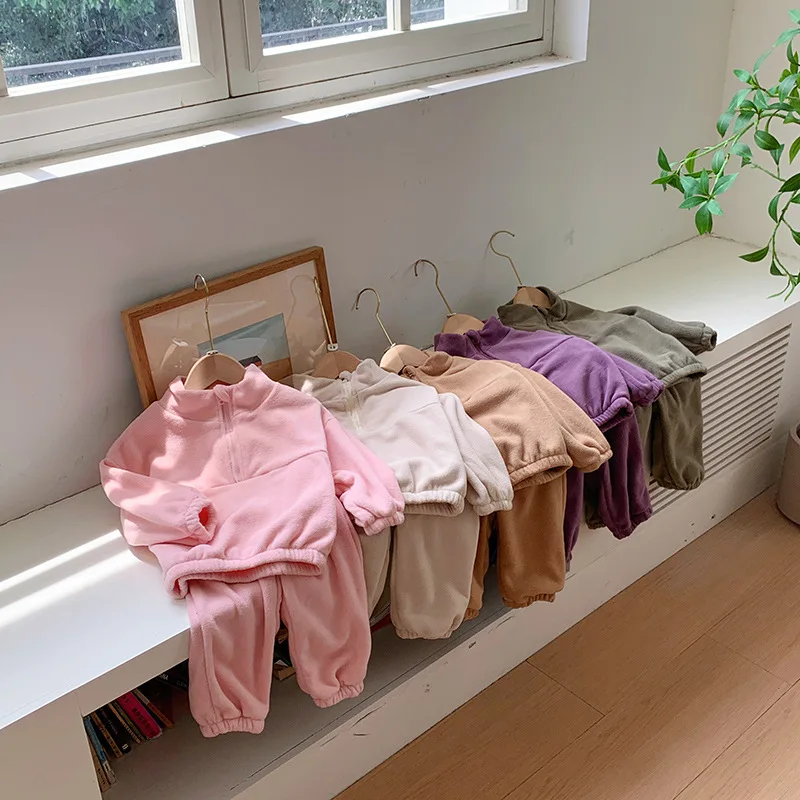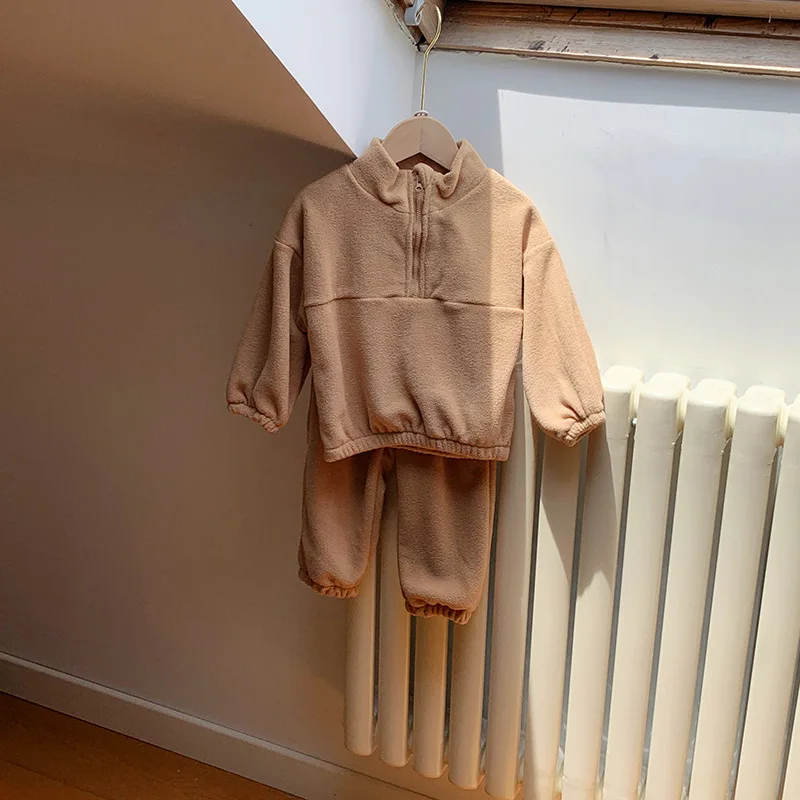Bambini Ragazzi Abiti Autunno Inverno Bambini Ragazzi Pullover in pile Abiti larghi Solid Plus Velluto Baby Boy Pant Little Boys 2 pezzi Set