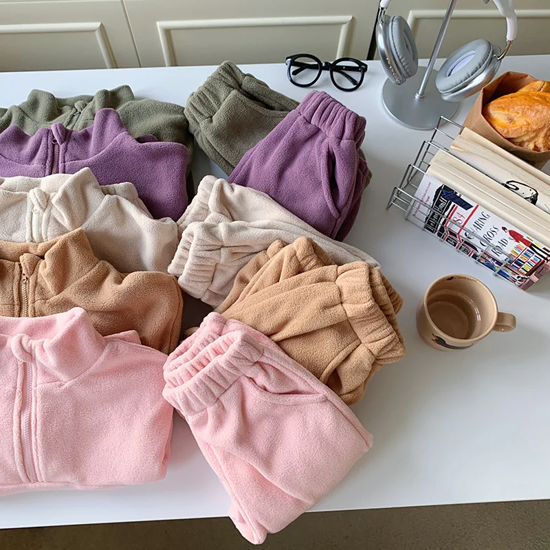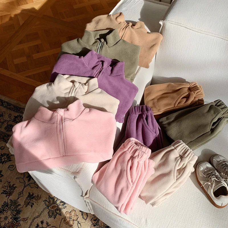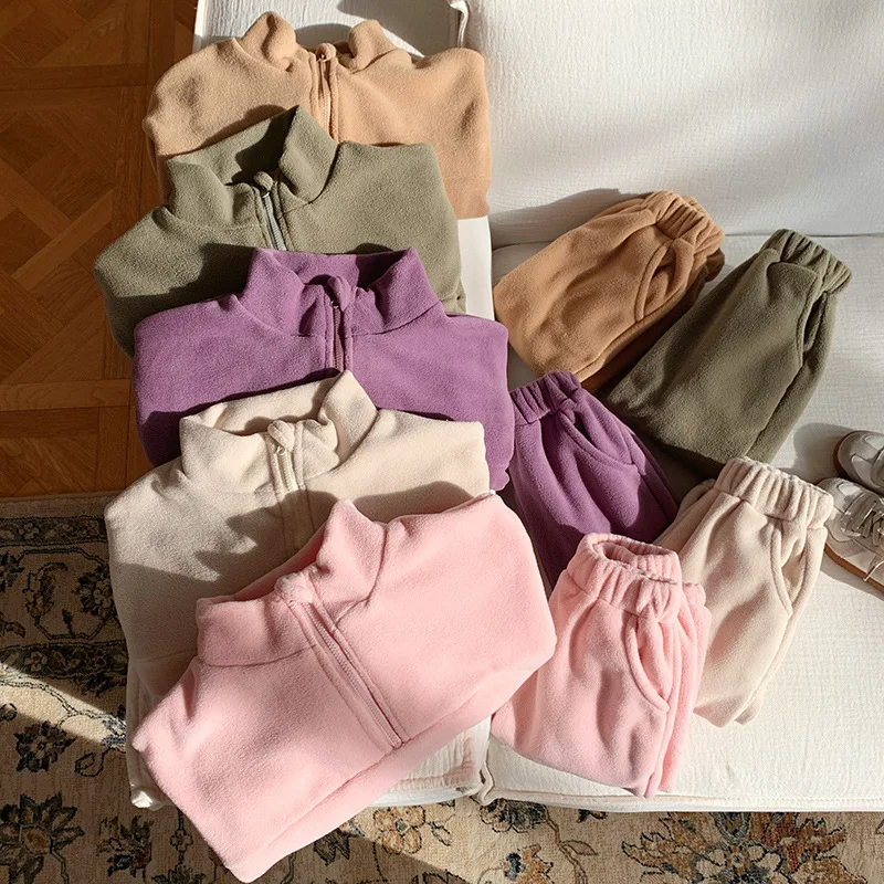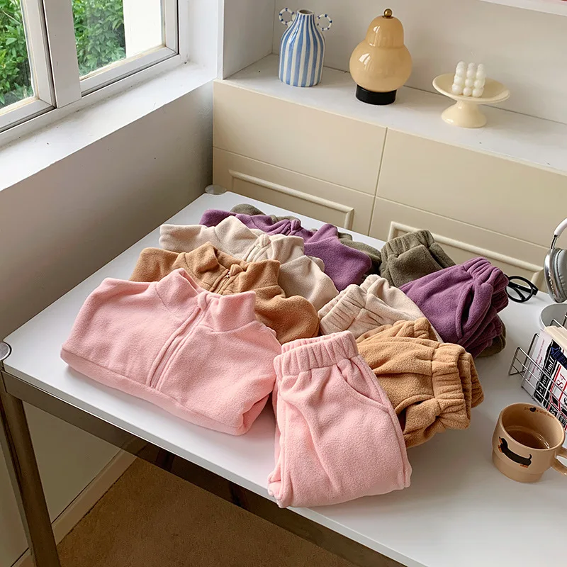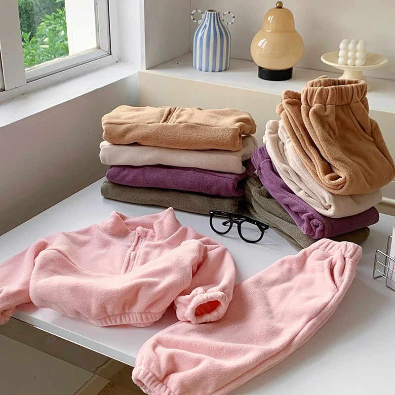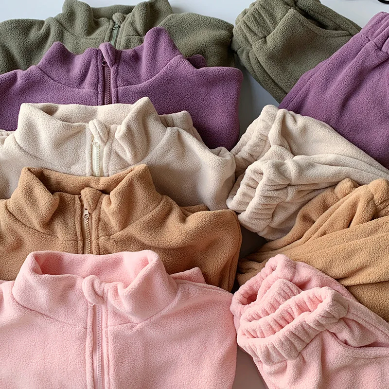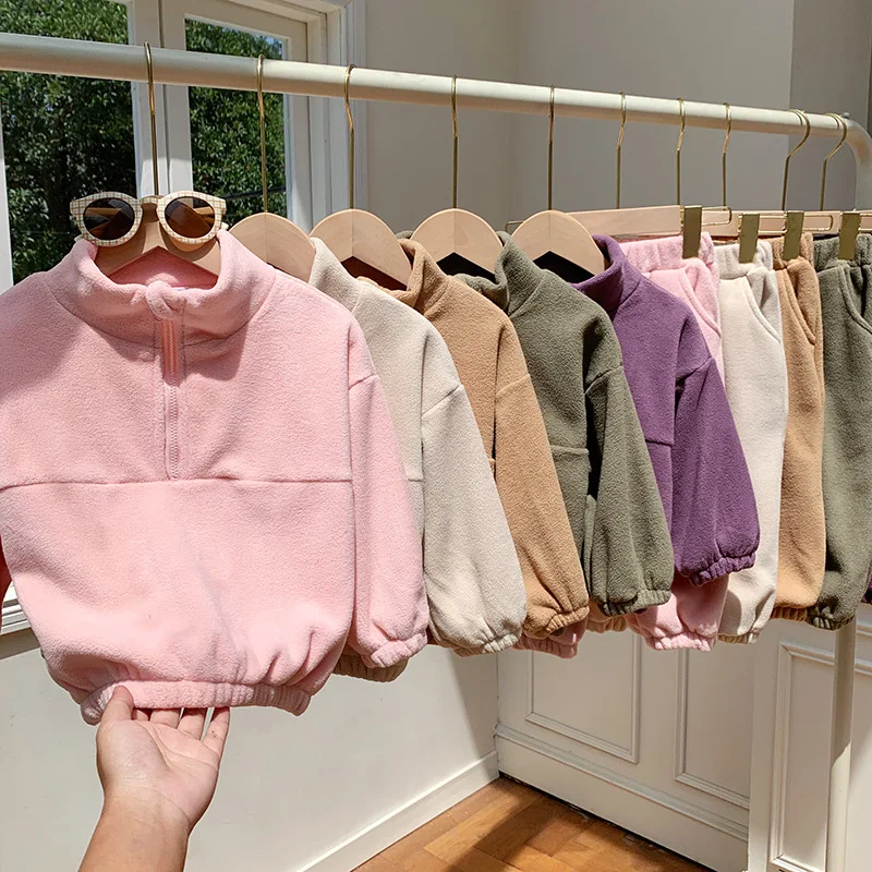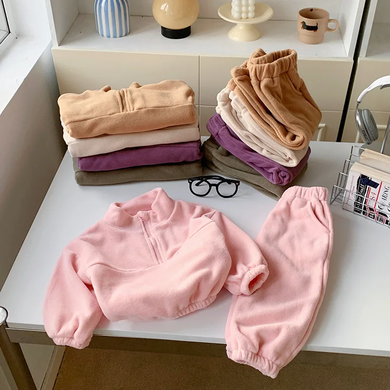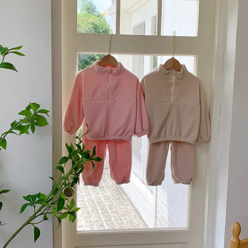 Bambini Ragazzi Abiti Autunno Inverno Bambini Ragazzi Pullover in pile Abiti larghi Solid Plus Velluto Baby Boy Pant Little Boys 2 pezzi Set