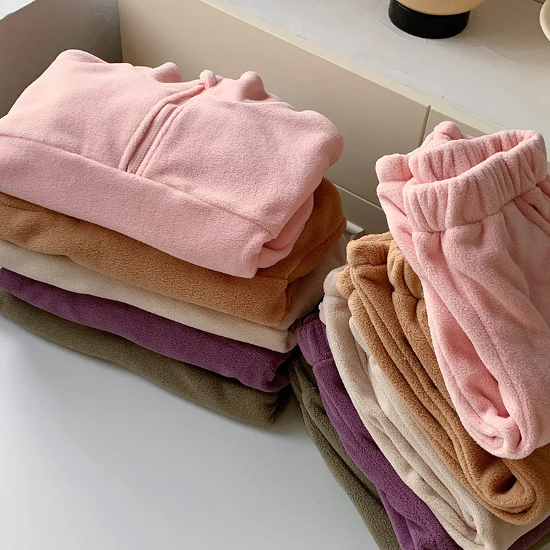 Bambini Ragazzi Abiti Autunno Inverno Bambini Ragazzi Pullover in pile Abiti larghi Solid Plus Velluto Baby Boy Pant Little Boys 2 pezzi Set
