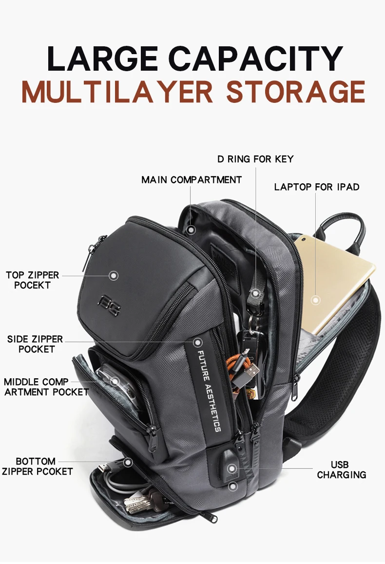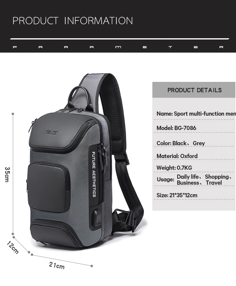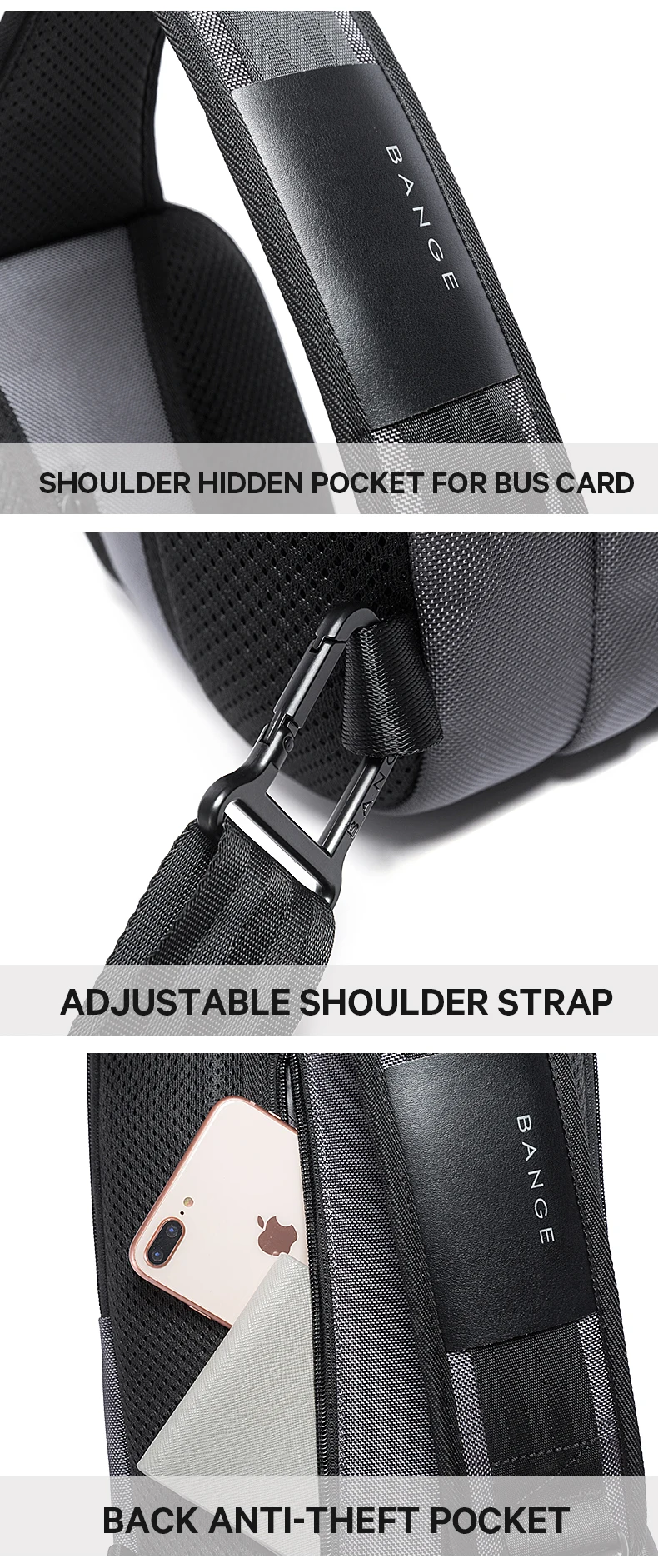 BANGE Nuova borsa a tracolla multifunzione antifurto per uomo Borse a tracolla a tracolla Borsa da petto impermeabile per breve viaggio da uomo