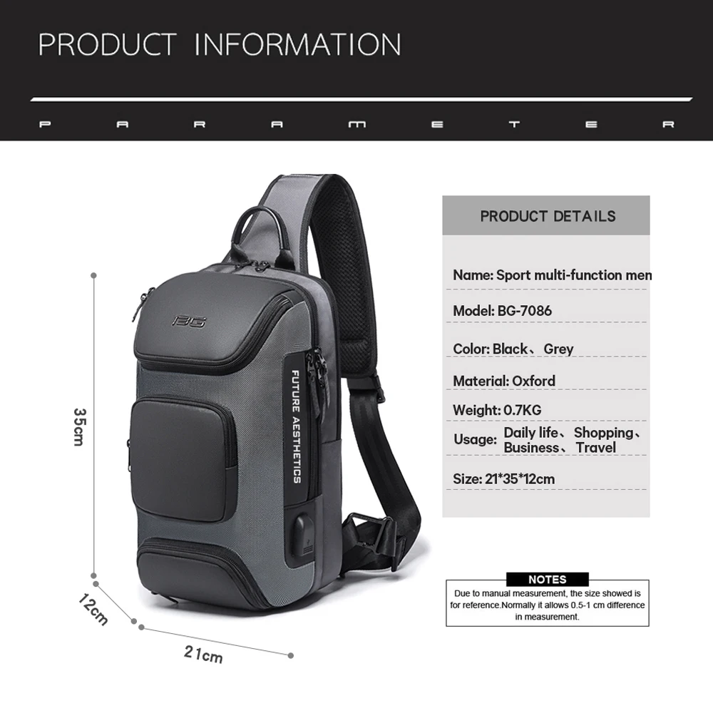 BANGE Nuova borsa a tracolla multifunzione antifurto per uomo Borse a tracolla a tracolla Borsa da petto impermeabile per breve viaggio da uomo