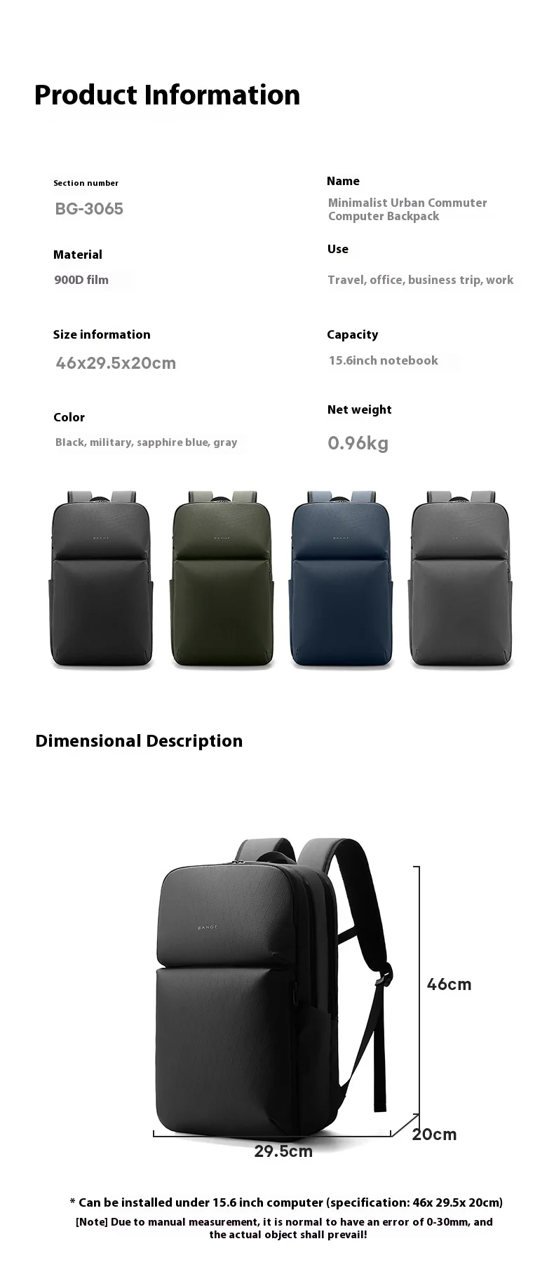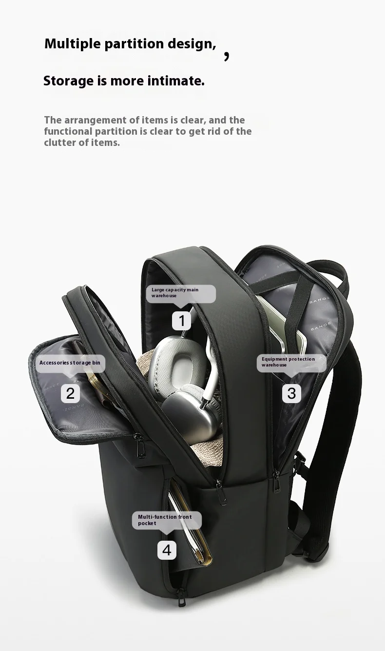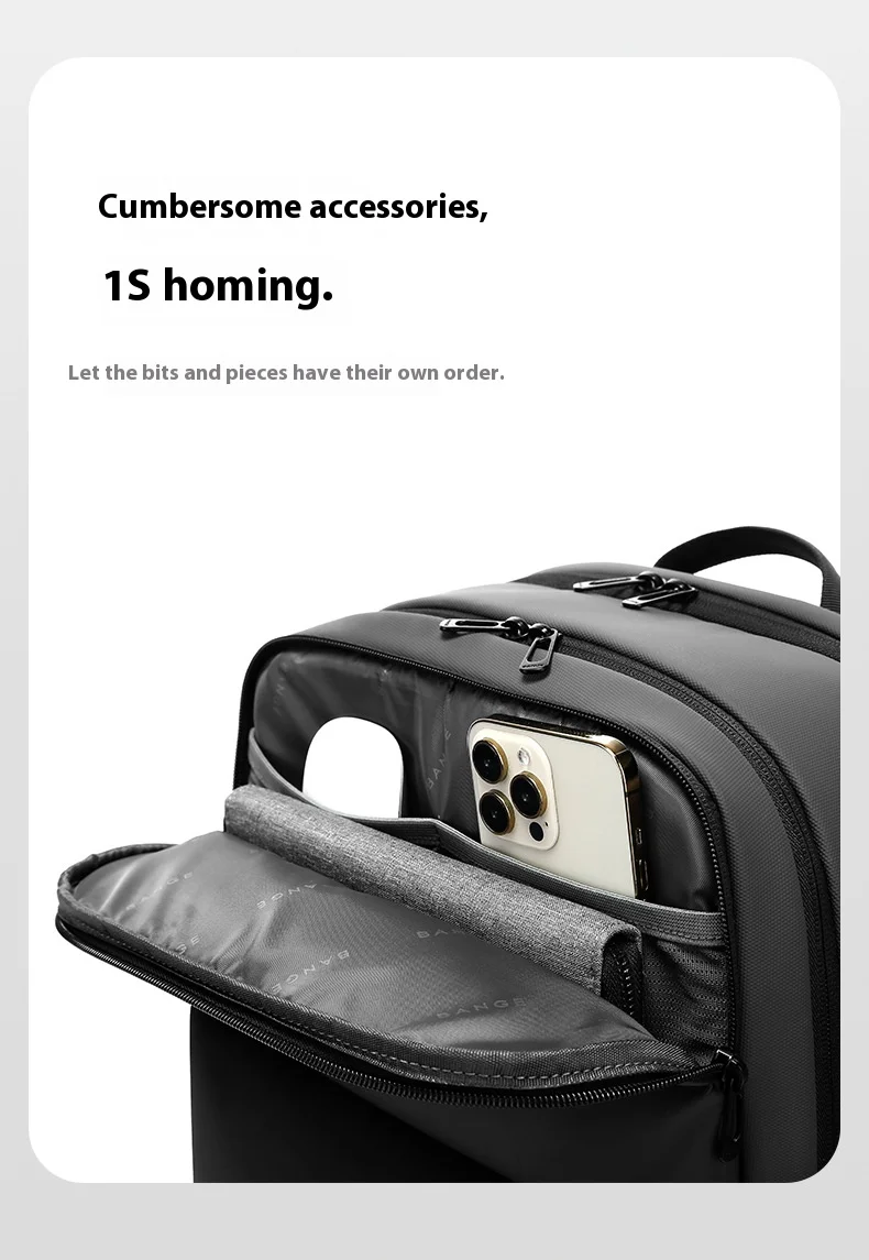 BANGE Zaino da viaggio impermeabile intelligente Approvato al volo aziendale Zaino da trasporto Zaino per laptop da 16 pollici di grande capacità per uomo
