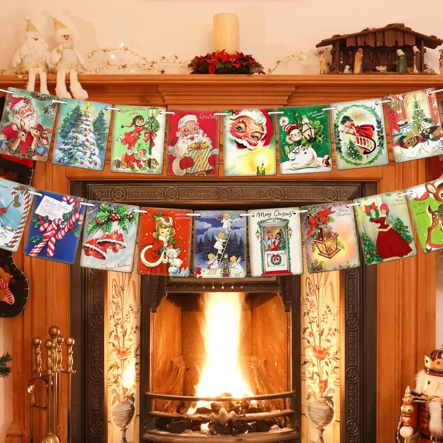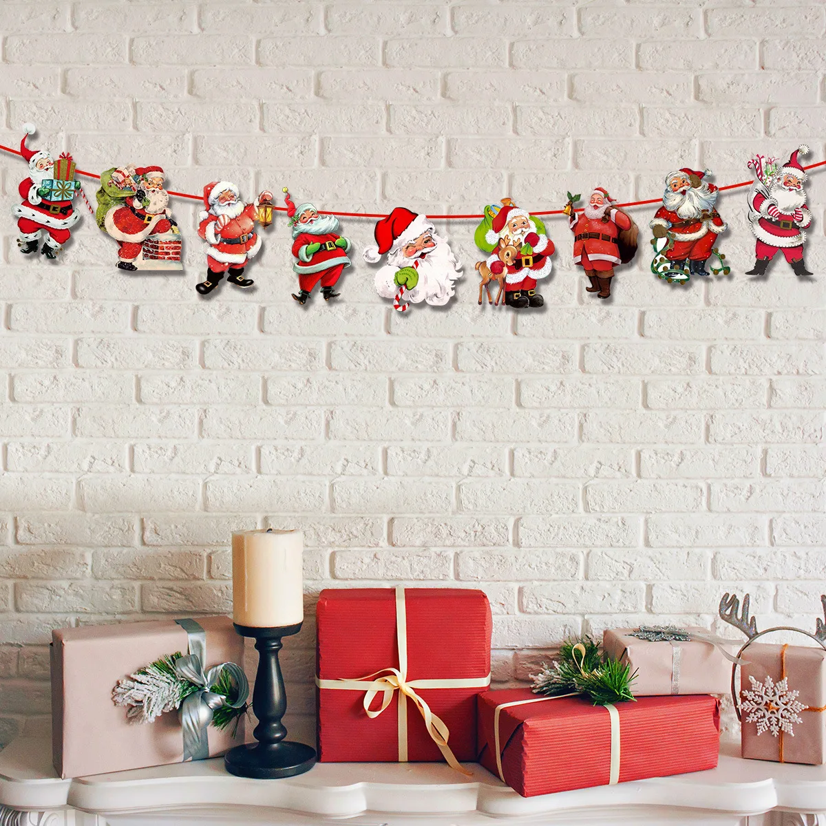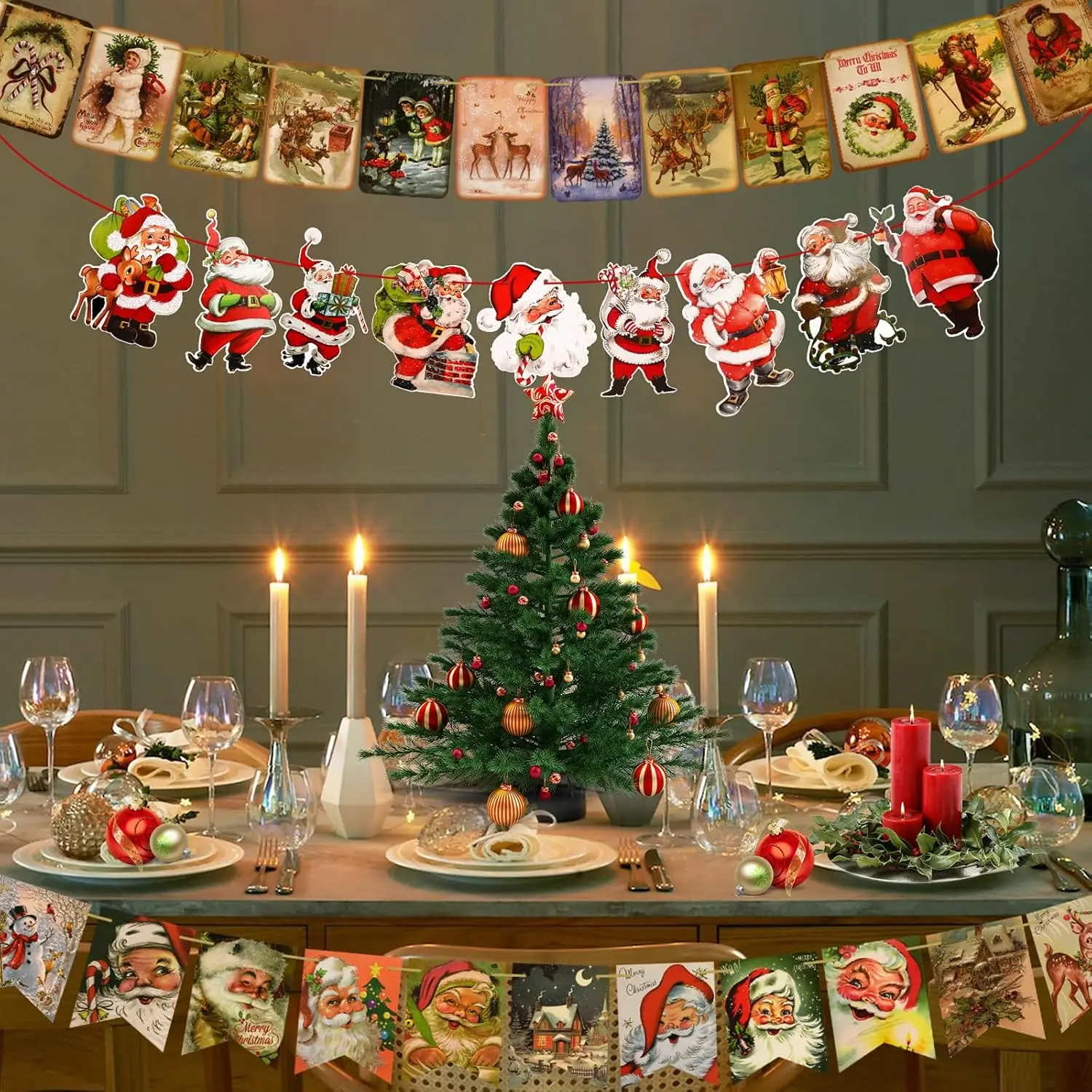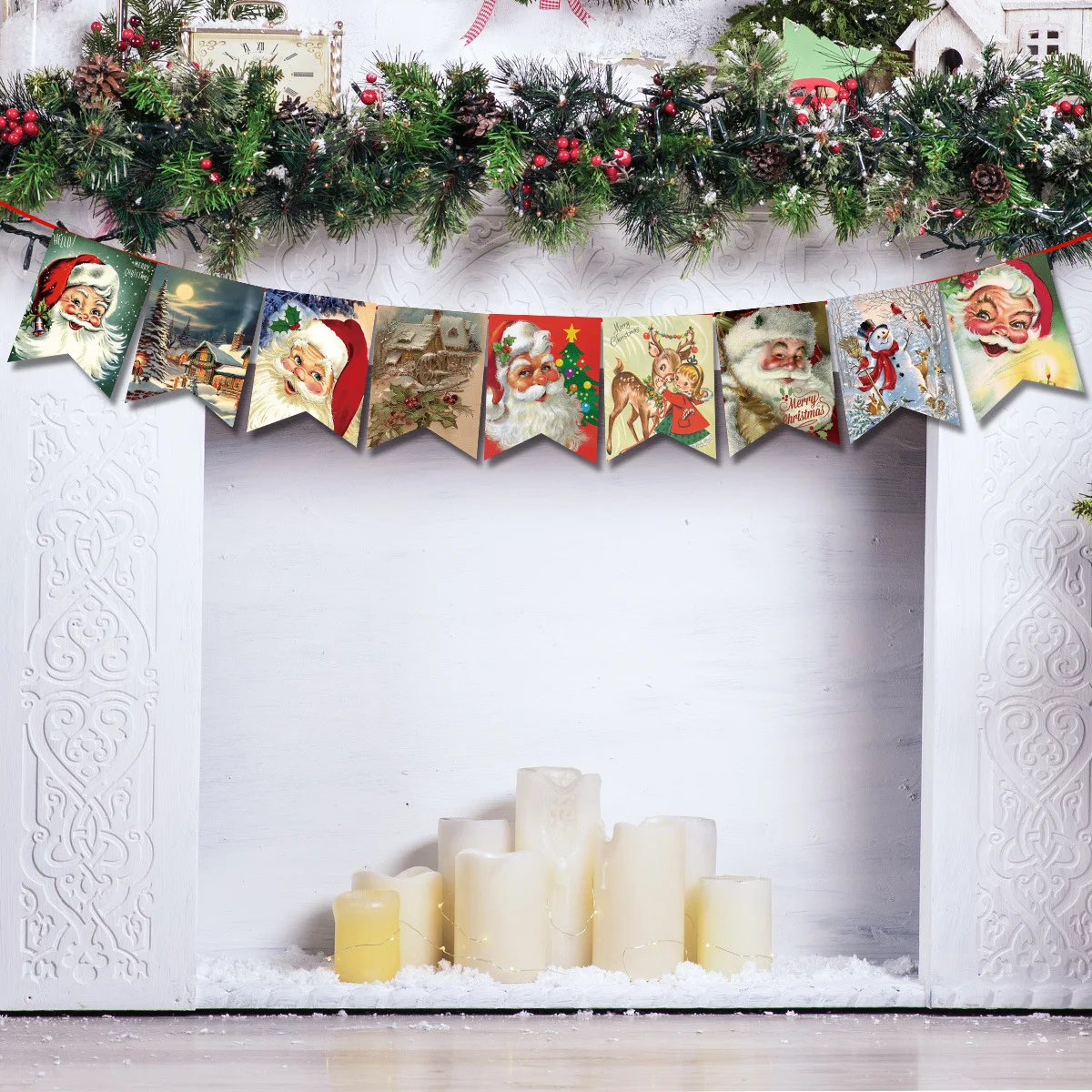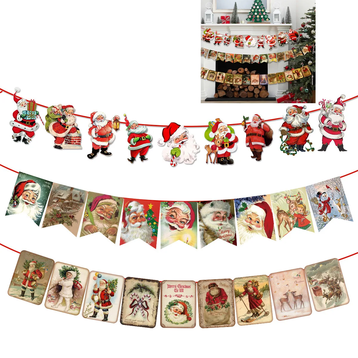 Banner di carta con bandiera natalizia vintage, decorazione di buon Natale, Babbo Natale, pupazzo di neve, renna, sfondo per feste 1Banner di carta con bandiera natalizia vintage, decorazione di buon Natale, Babbo Natale, pupazzo di neve, renna, sfondo per feste