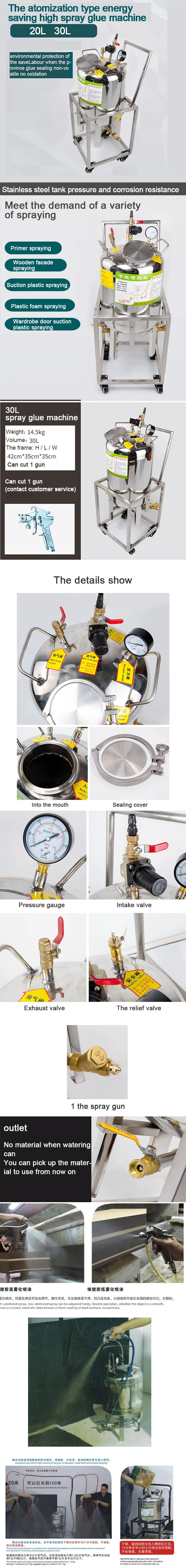 30 L Pneumatic Glue Sprayer Adhesive Spray Barrel 304 Stainless Steel Pressure Bucket Energy Efficient Dispenser Paint Gun