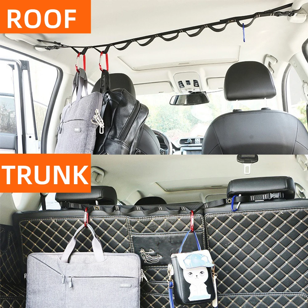 Barra appendiabiti per auto Corda appesa per bagagliaio posteriore per cappotto Tuta Auto SUV Portapanni telescopico Accessori da viaggio per campeggio all’aperto