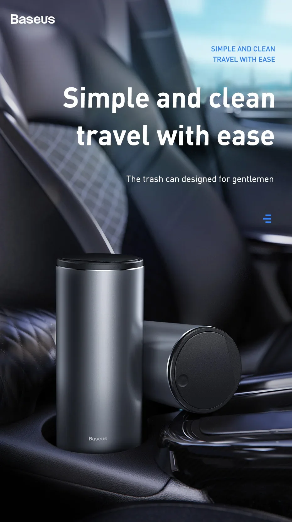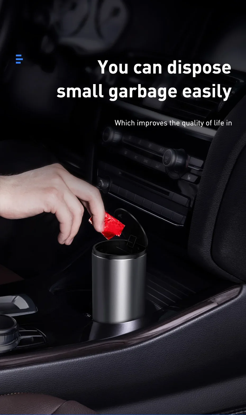 PKQ Baseus Car Trash Bin Alloy Garbage Can For Car Dustbin Waste Rubbish Basket Bin Organizer Storage Holder Bag Auto Accessories
