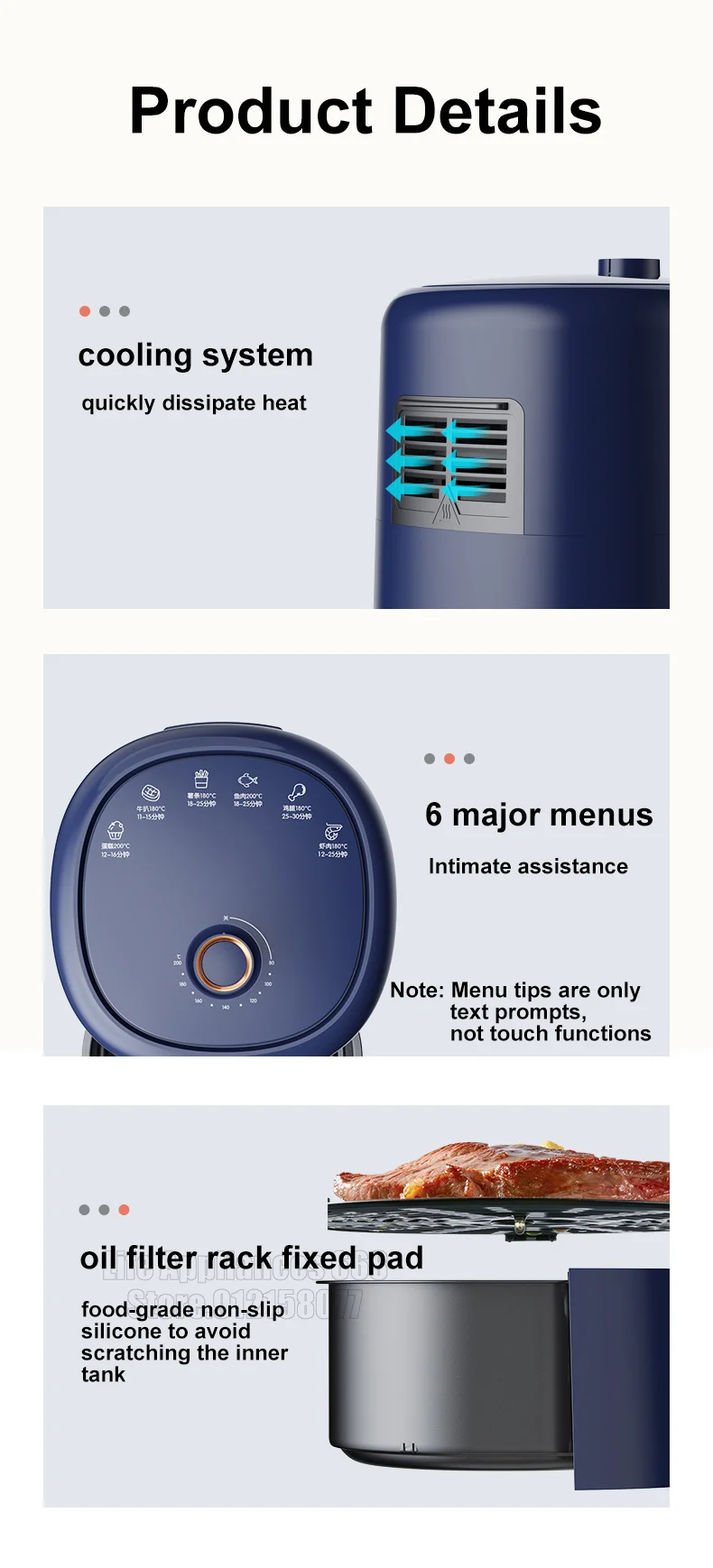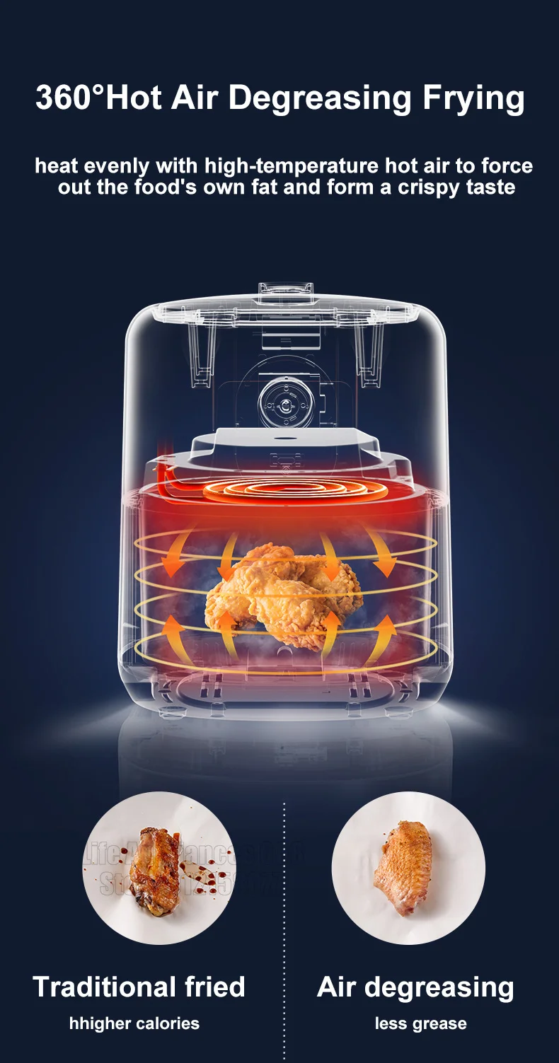 Sgrassaggio e frittura ad aria calda a 360 °, a basso contenuto calorico e più sano