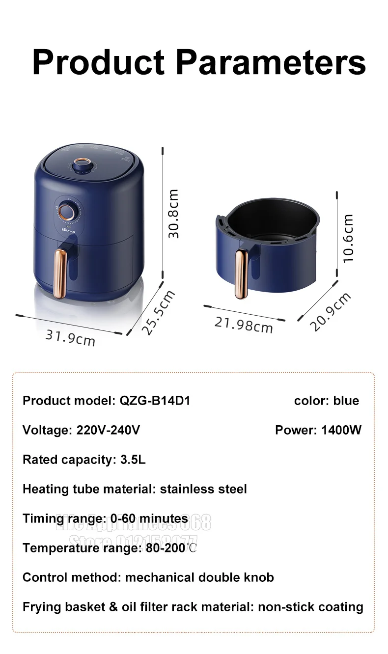 Bear 3.5L friggitrice ad aria elettrica forno QZG-B14D1 360 ° cottura friggitrice a doppia manopola senza olio elettrodomestici da cucina multifunzionali 220V-240V