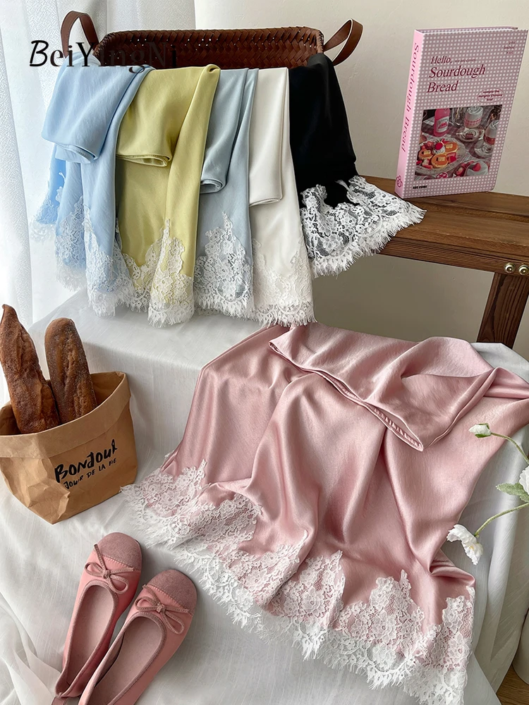 Beiyingni francese elegante gonna a sirena in raso donna primavera estate patchwork di pizzo pacchetto anca gonne lunghe a trapezio gonne da donna da ufficio