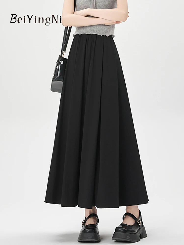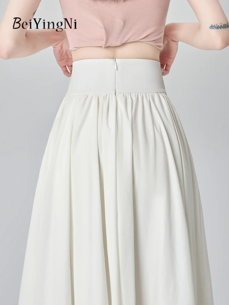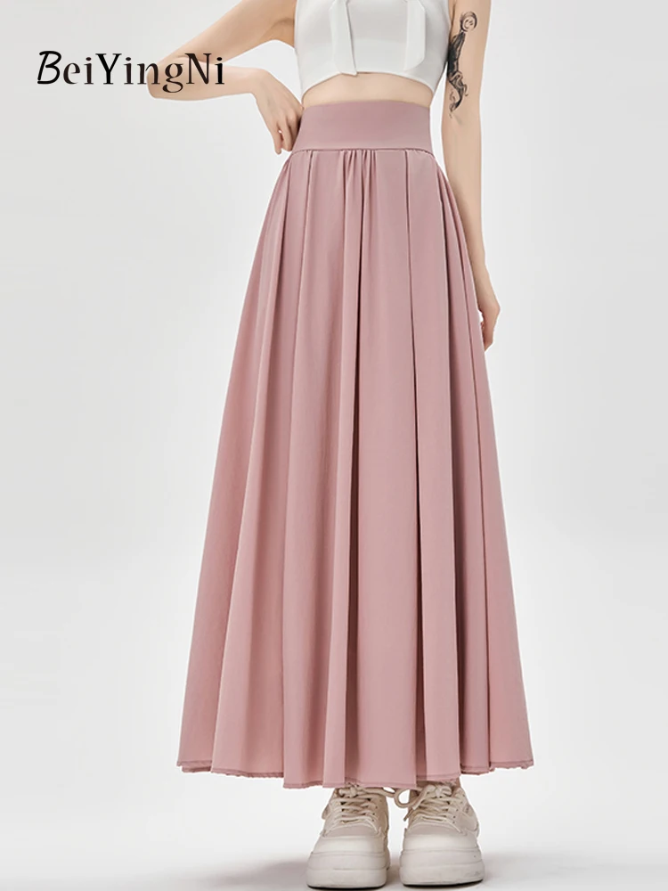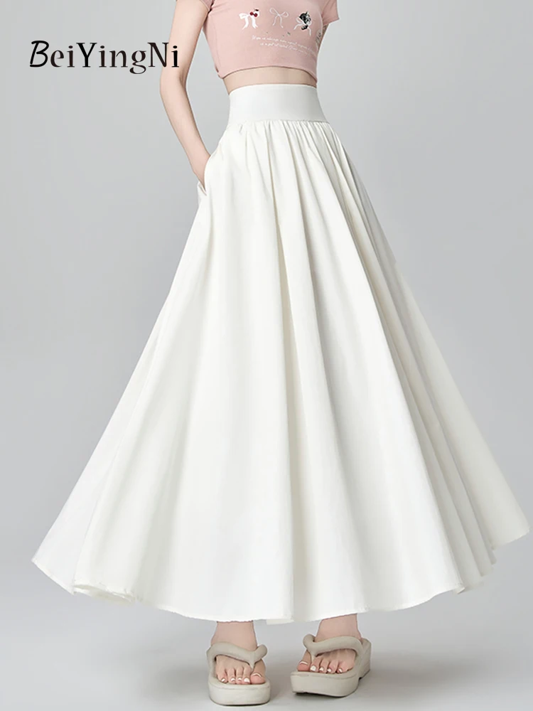Beiyingni gonna lunga estiva a vita alta da donna tasche moda coreana gonne lunghe Casual dolci a-line tinta unita bianco nero rosa 1Beiyingni gonna lunga estiva a vita alta da donna tasche moda coreana gonne lunghe Casual dolci a-line tinta unita bianco nero rosa