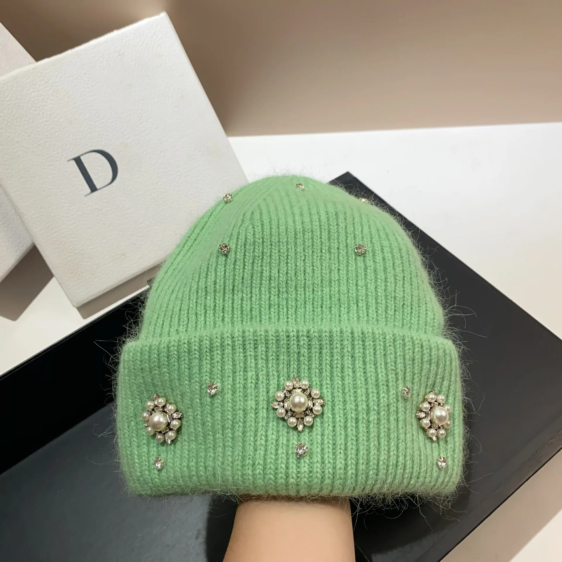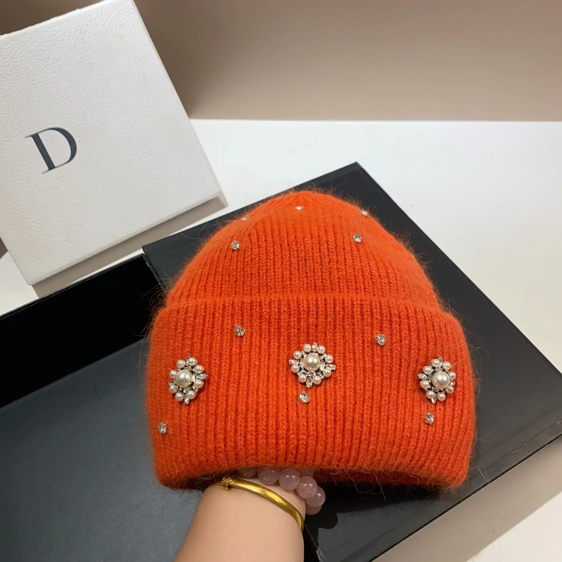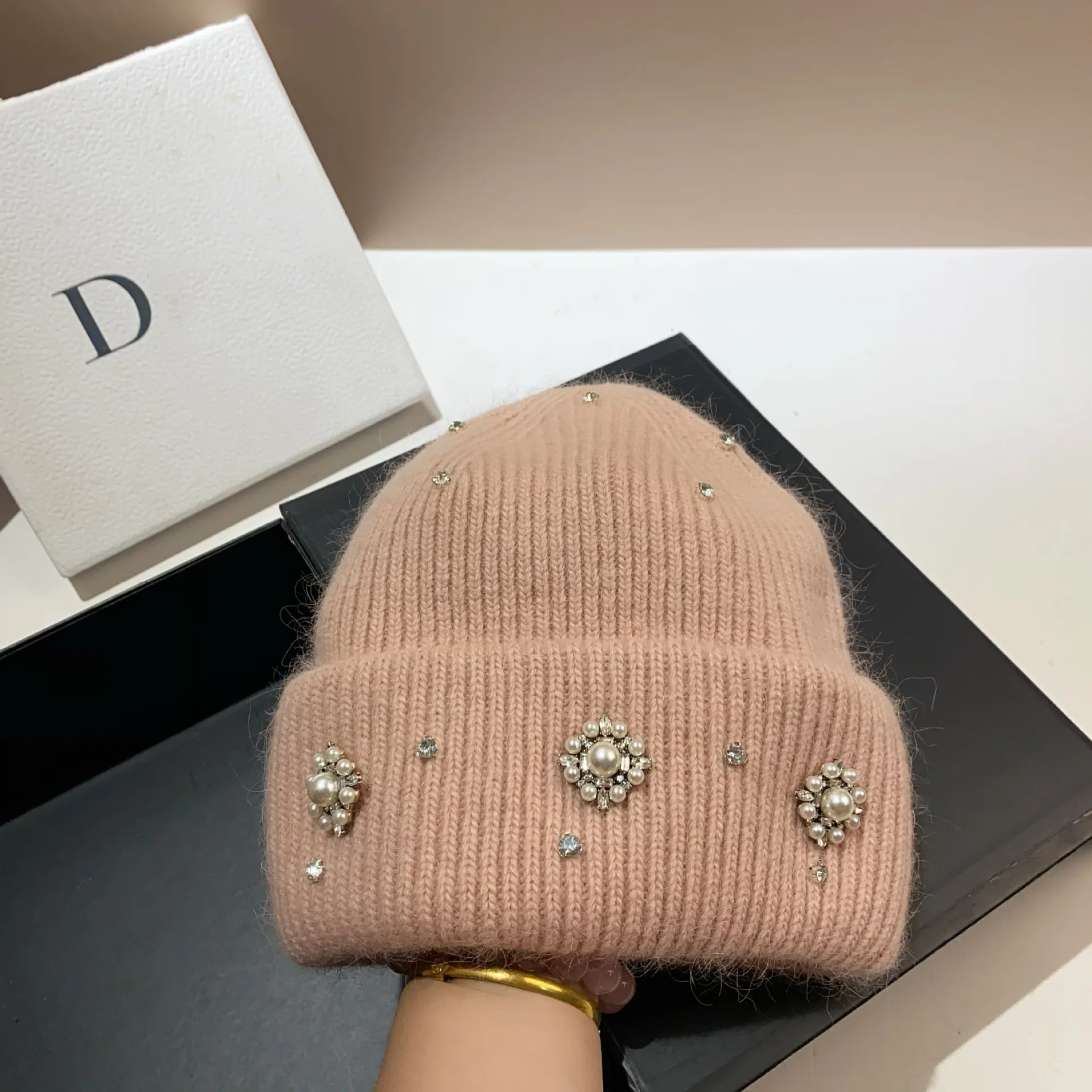 Berretti in pelliccia di coniglio con strass perlati Cappello invernale soffice per donna Angora Cappello lavorato a maglia morbido e caldo Berretti Berretto lavorato a maglia con cofano femminile 1Berretti in pelliccia di coniglio con strass perlati Cappello invernale soffice per donna Angora Cappello lavorato a maglia morbido e caldo Berretti Berretto lavorato a maglia con cofano femminile