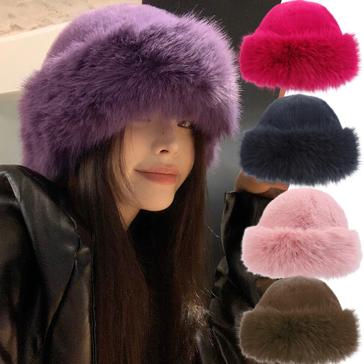 Berretti pelosi caldi e spessi invernali Cappello da donna Moda imitazione pelliccia di visone Berretto russo Berretto senza tesa in peluche tinta unita Cappello da sci senza tesa 1Berretti pelosi caldi e spessi invernali Cappello da donna Moda imitazione pelliccia di visone Berretto russo Berretto senza tesa in peluche tinta unita Cappello da sci senza tesa