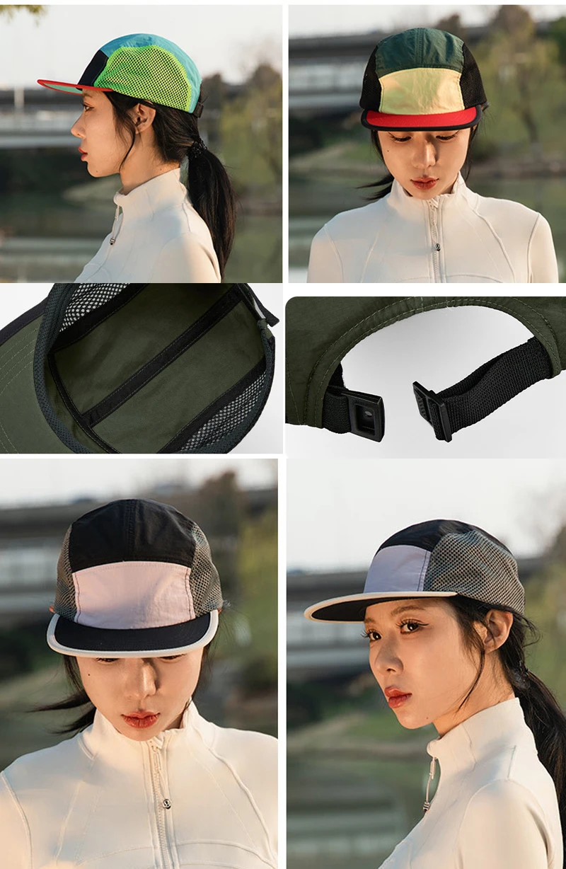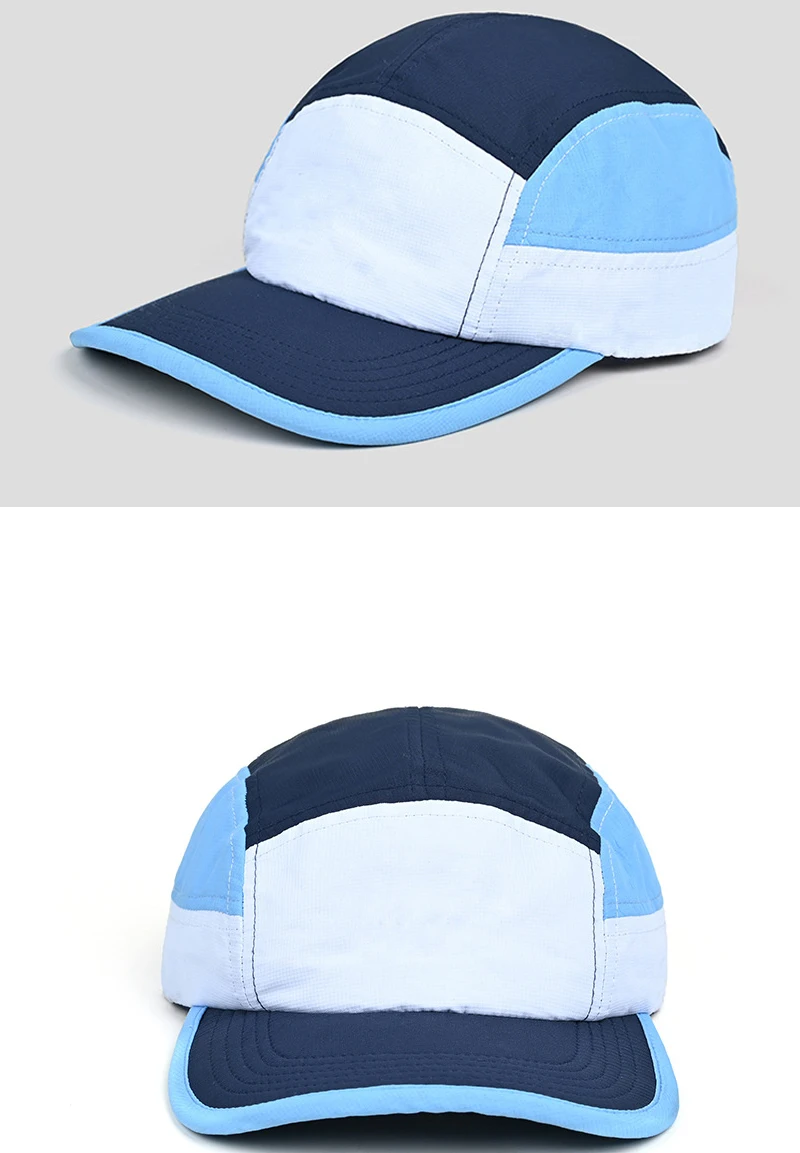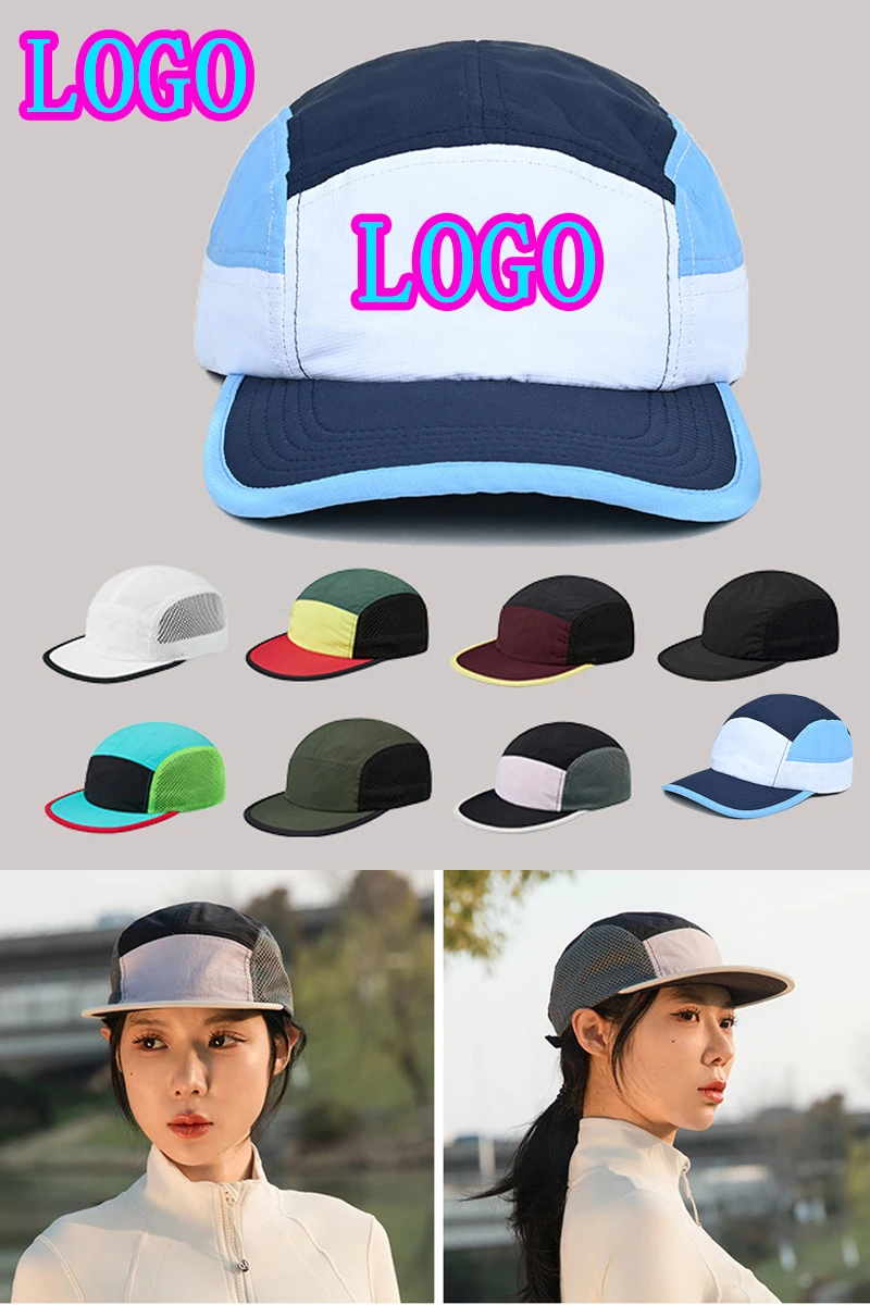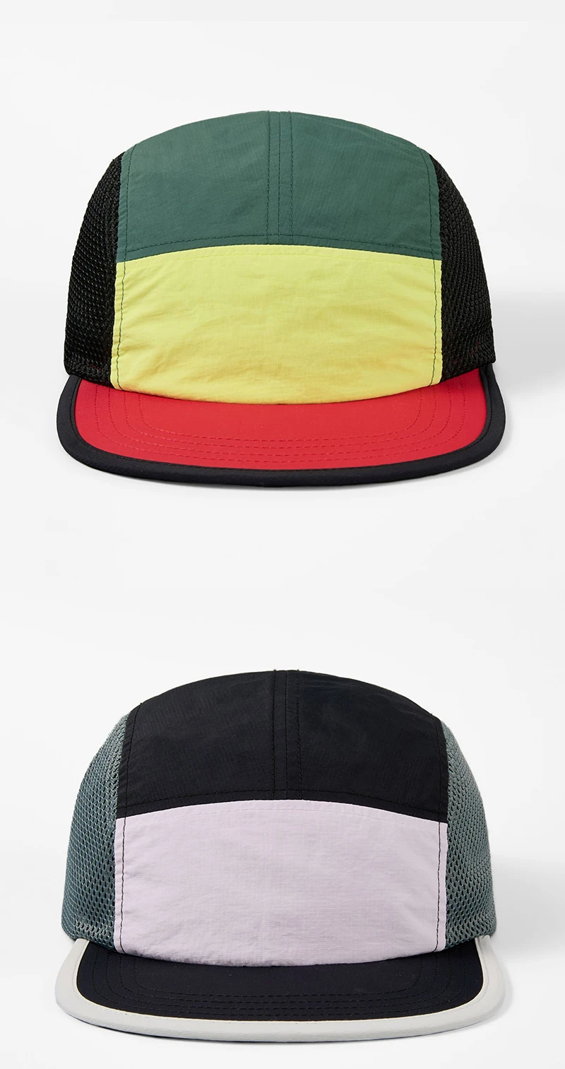 Berretto da baseball con logo personalizzato per esterni a 5 pannelli con blocco colore da donna Cappello snapback regolabile ad asciugatura rapida Cappello da camionista per protezione solare da uomo