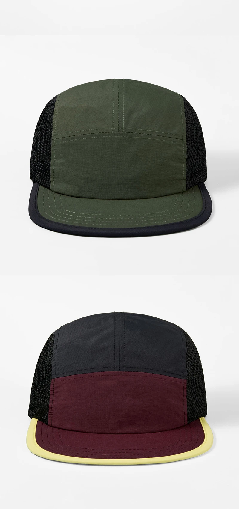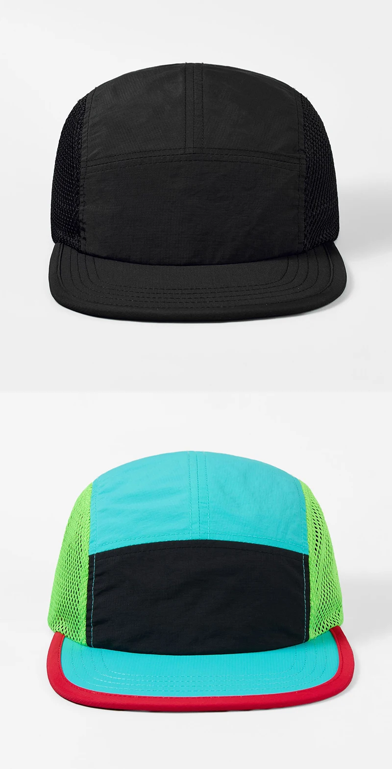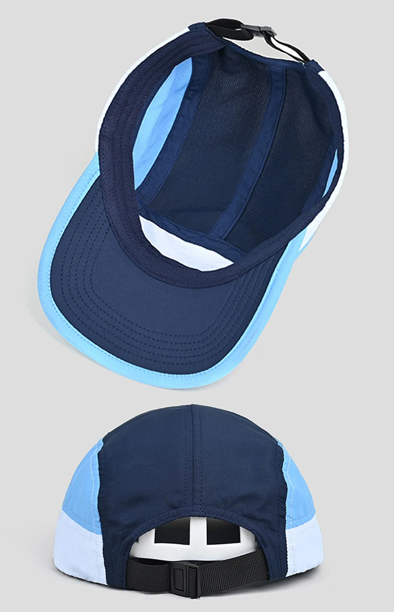 Berretto da baseball con logo personalizzato per esterni a 5 pannelli con blocco colore da donna Cappello snapback regolabile ad asciugatura rapida Cappello da camionista per protezione solare da uomo