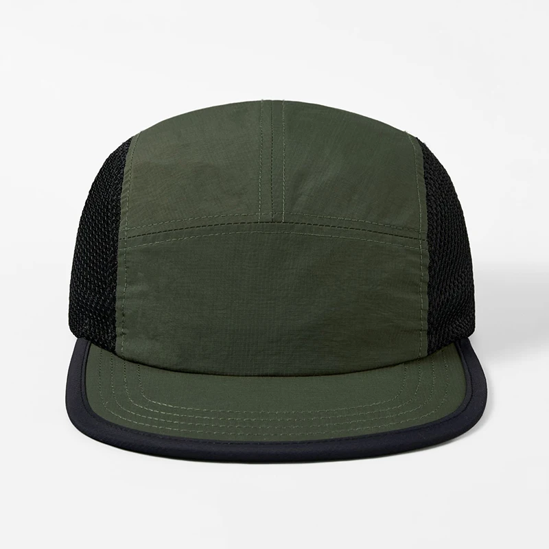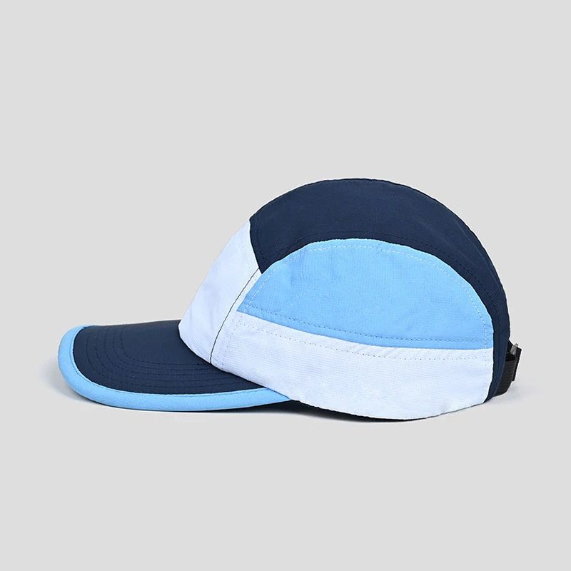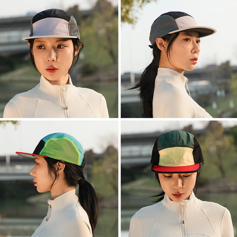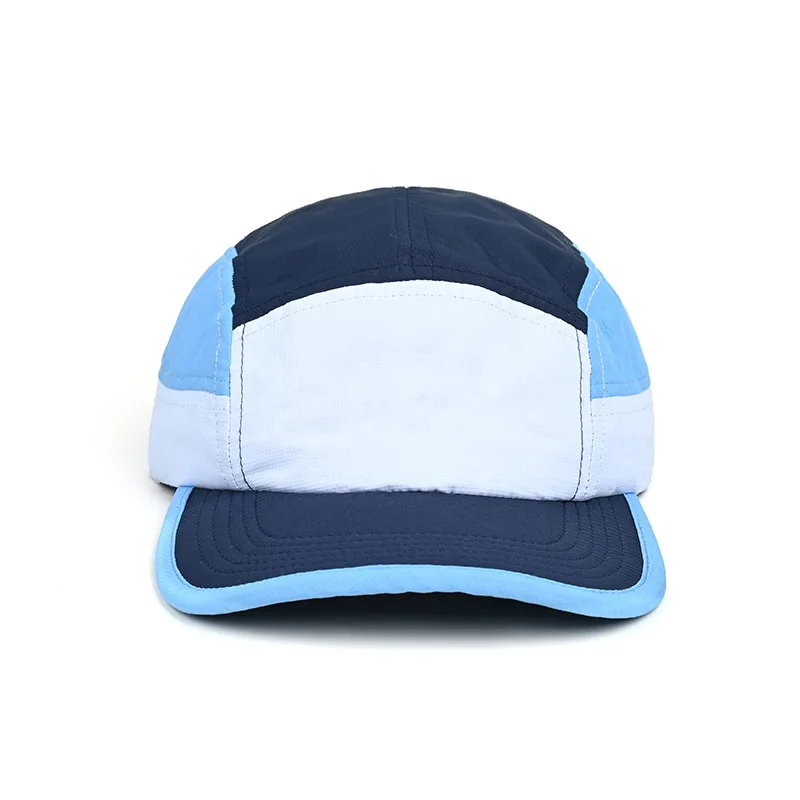 Berretto da baseball con logo personalizzato per esterni a 5 pannelli con blocco colore da donna Cappello snapback regolabile ad asciugatura rapida Cappello da camionista per protezione solare da uomo