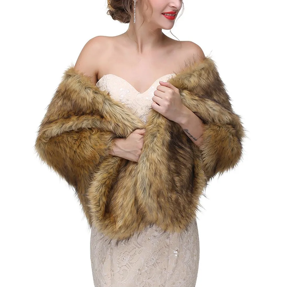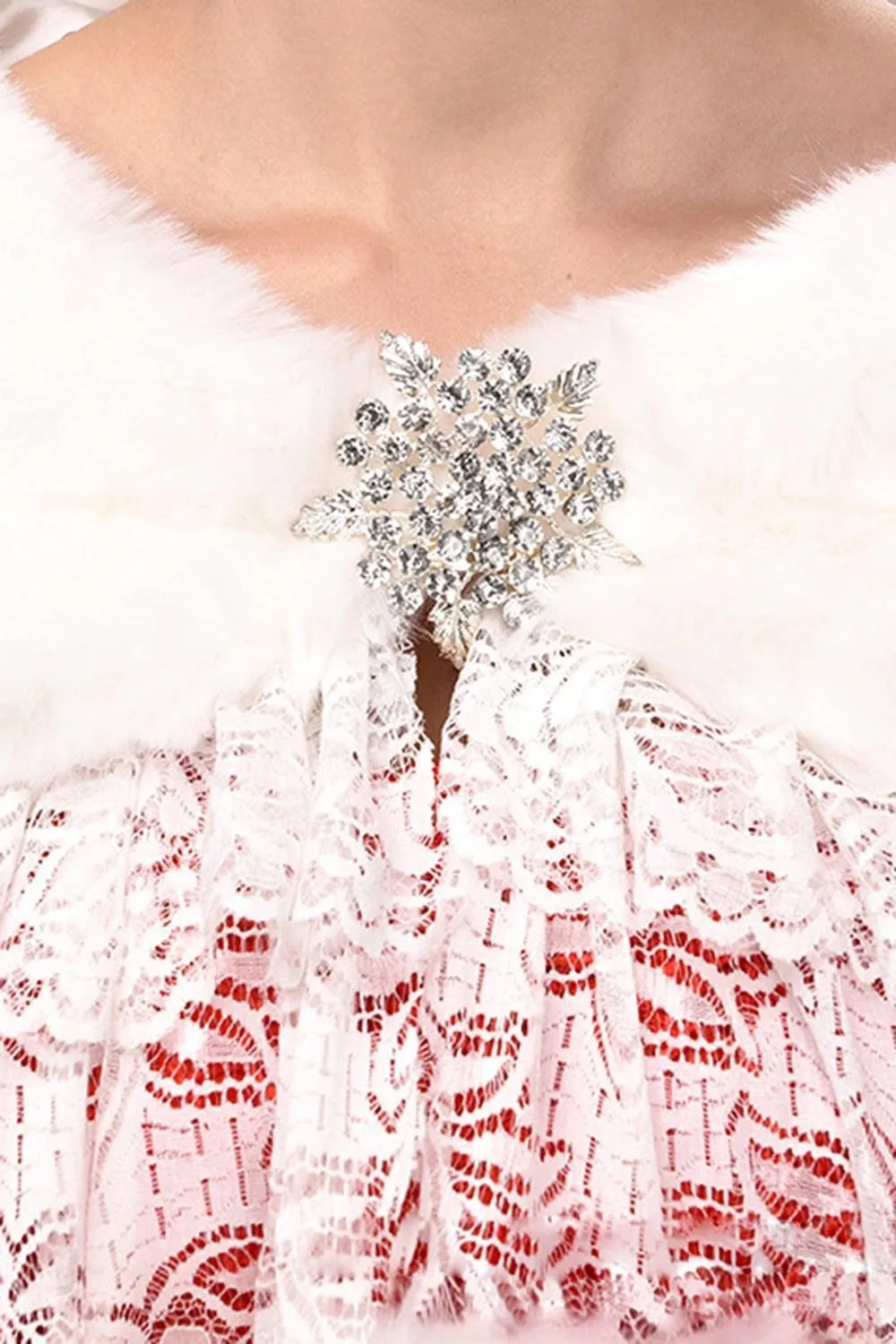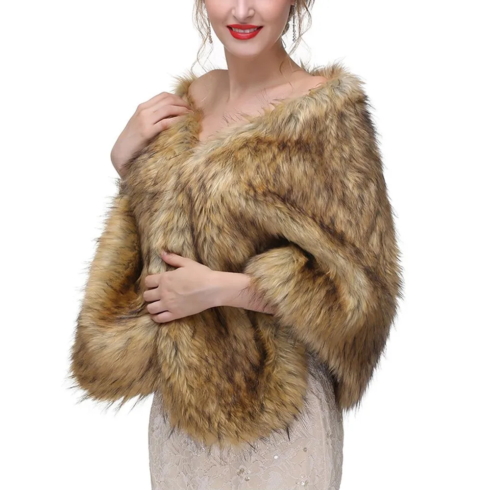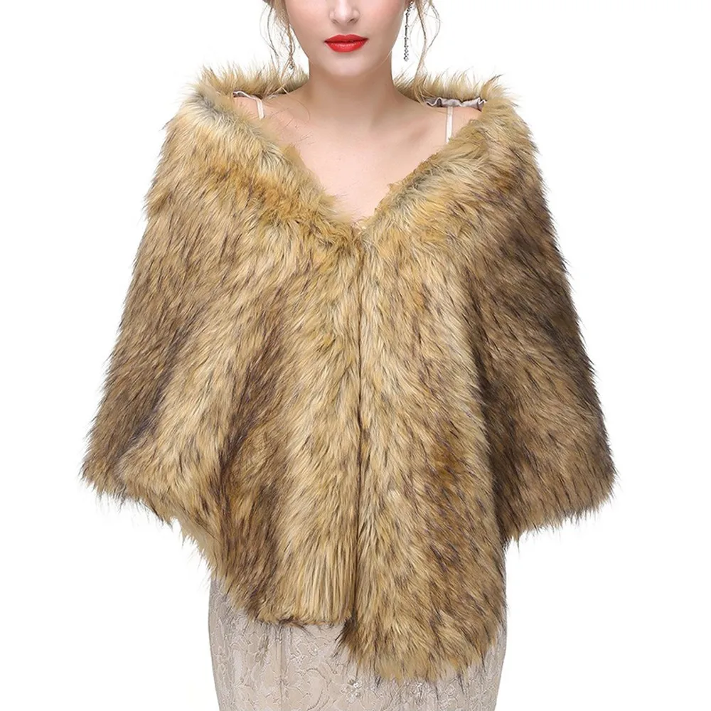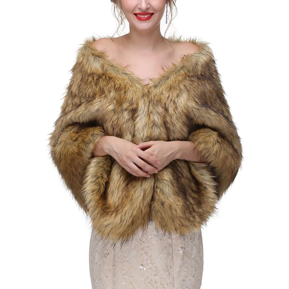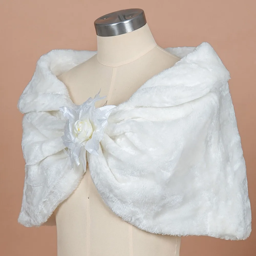 Bianco avorio da donna involucro da sposa bolero pelliccia sintetica pizzo cristallo autunno inverno abito scialle giacca mantello stola mantello accessori da sposa