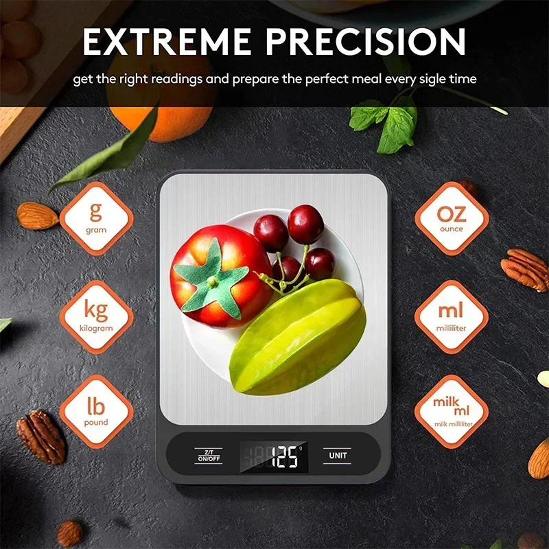 Bilancia da cucina digitale Bilancia da 10 kg/1 g Bilancia da caffè per alimenti USB Bilancia digitale elettronica intelligente impermeabile per cuocere al forno e cuocere