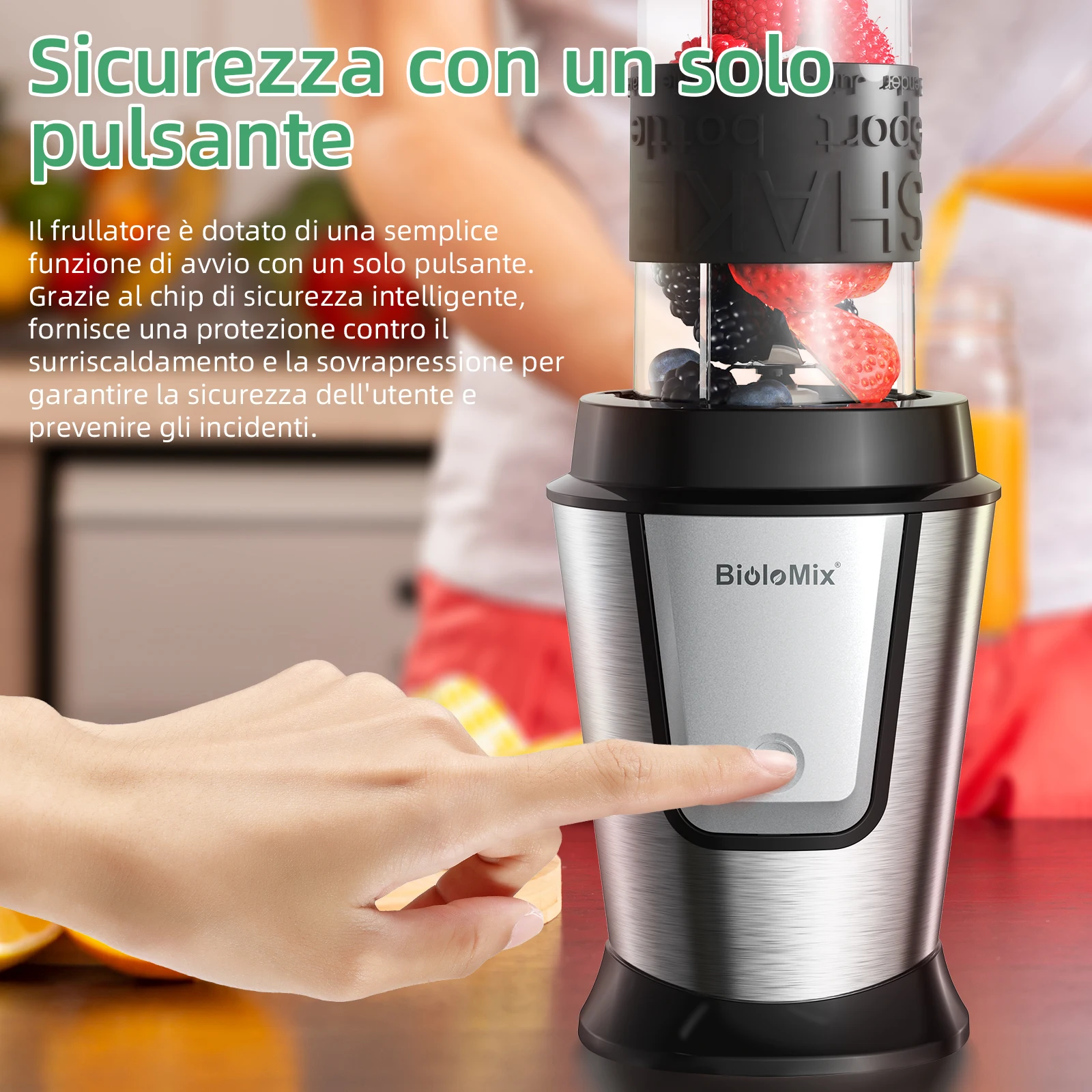 【Frullatore multifunzionale 3 in 1】 Il frullatore BioloMix è un frullatore, un tritatutto e un tritacarne in uno e viene fornito con una bottiglia frullatore da 600 ml, una ciotola tritatutto da 1200 ml e una tazza tritacarne da 100 ml.
