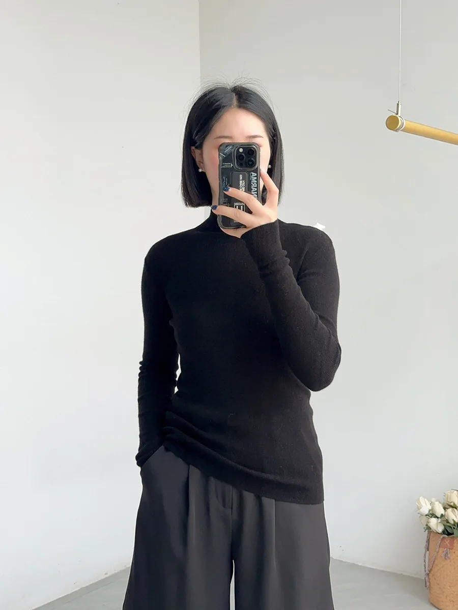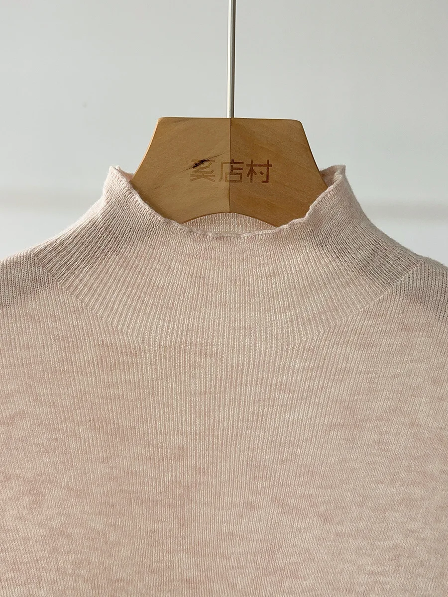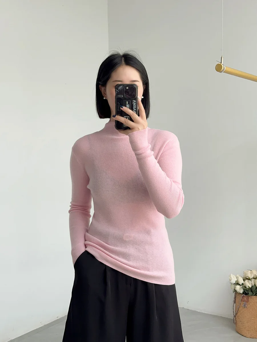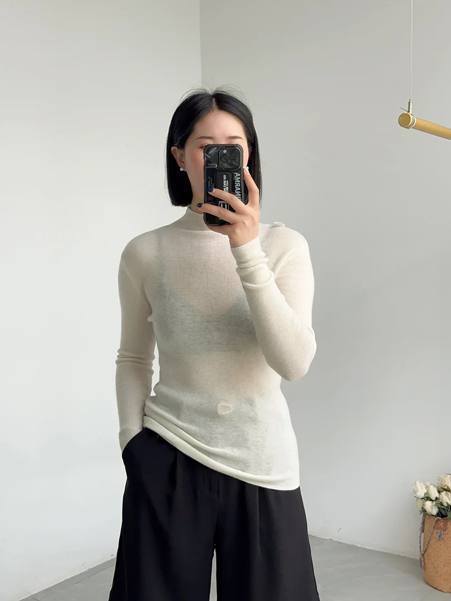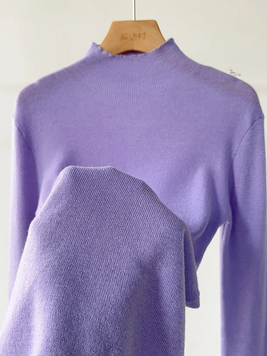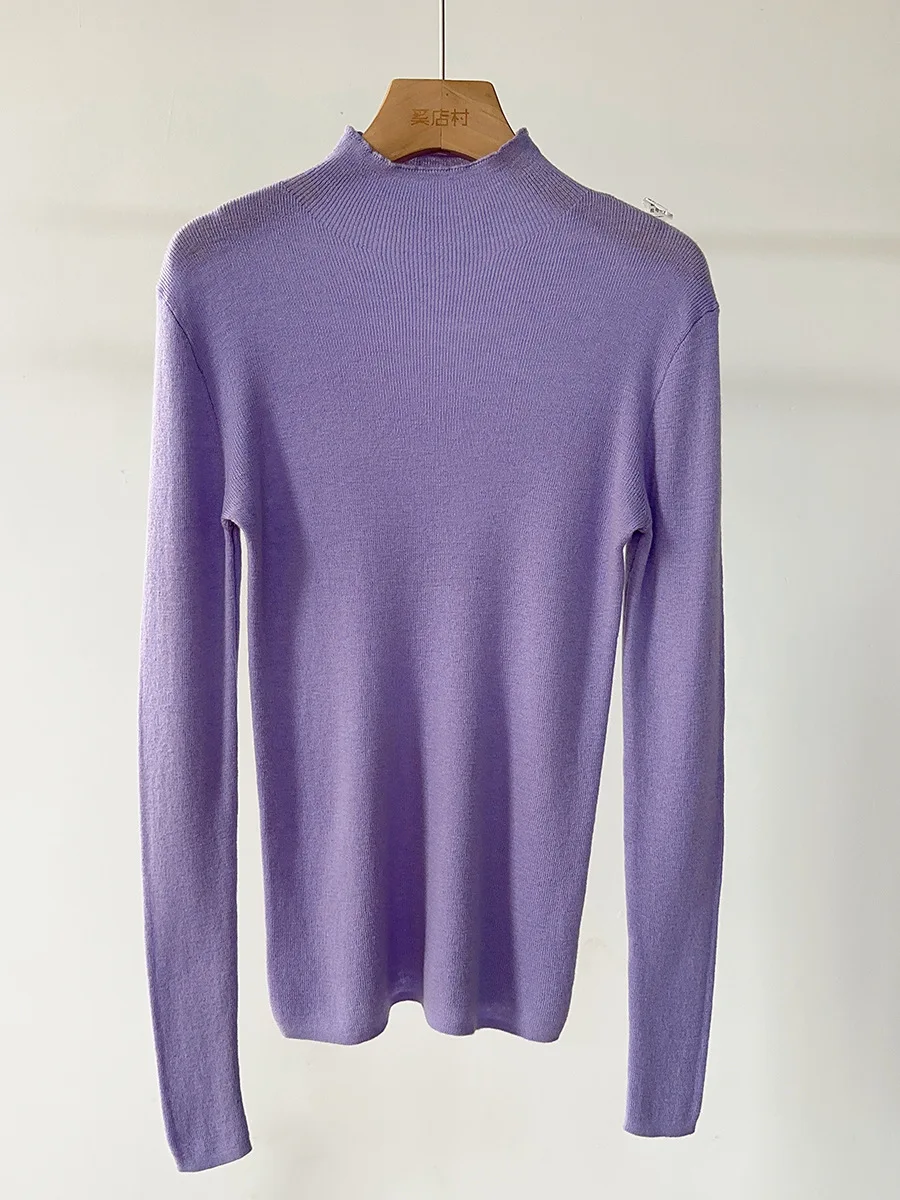 BirdTree, maglione sottile sottile 100% lana, collo a lupetto manica lunga donna, fondo senza cuciture alto elastico, autunno estate 2024 Tessuto: 100% lana