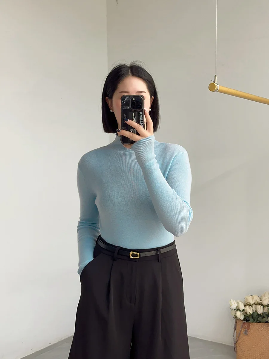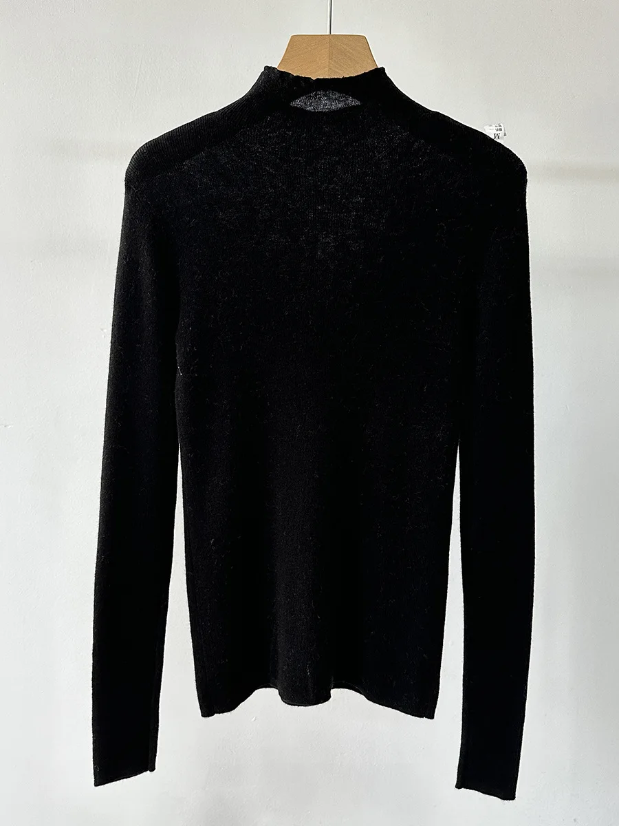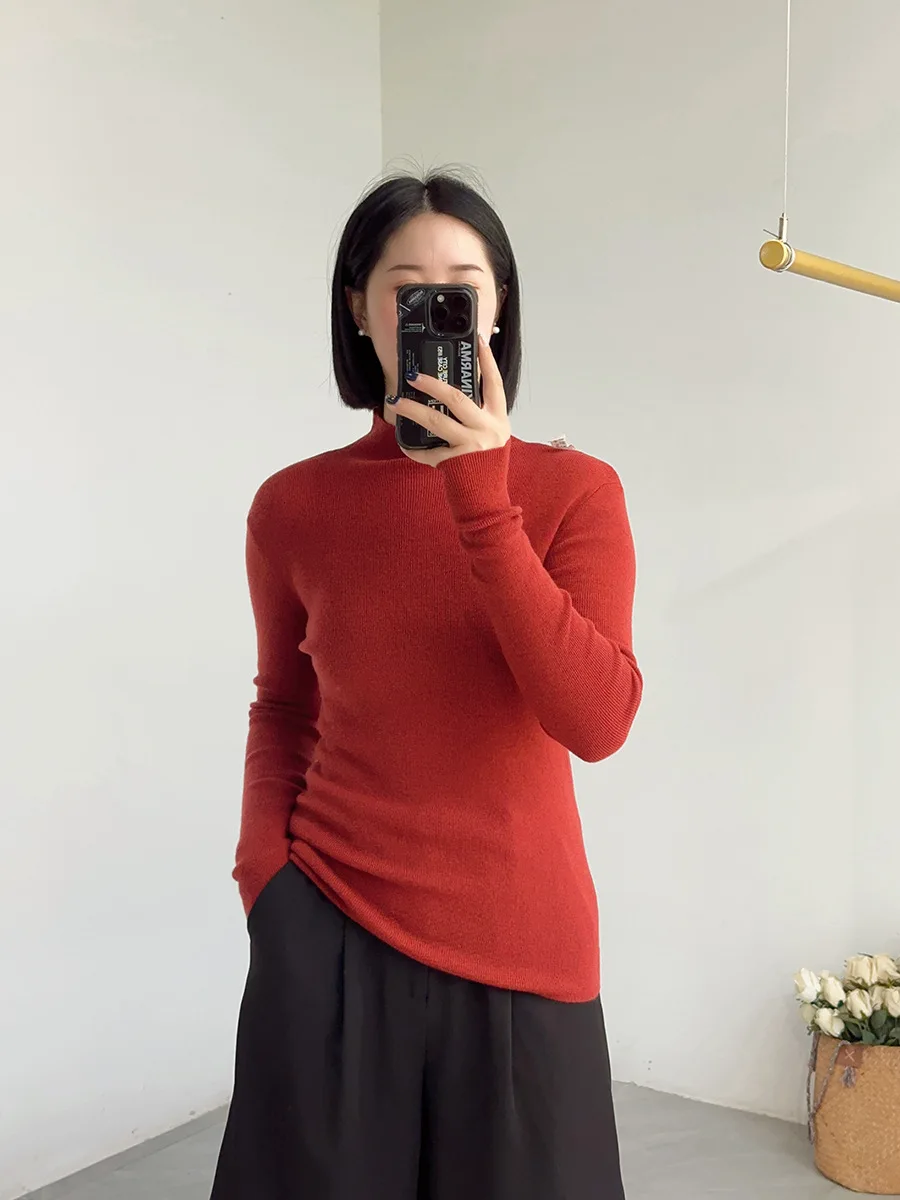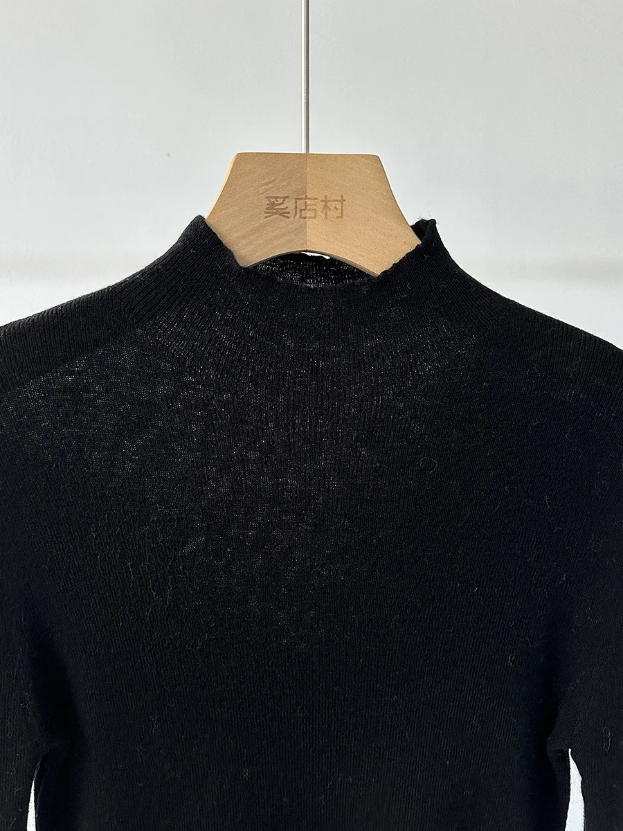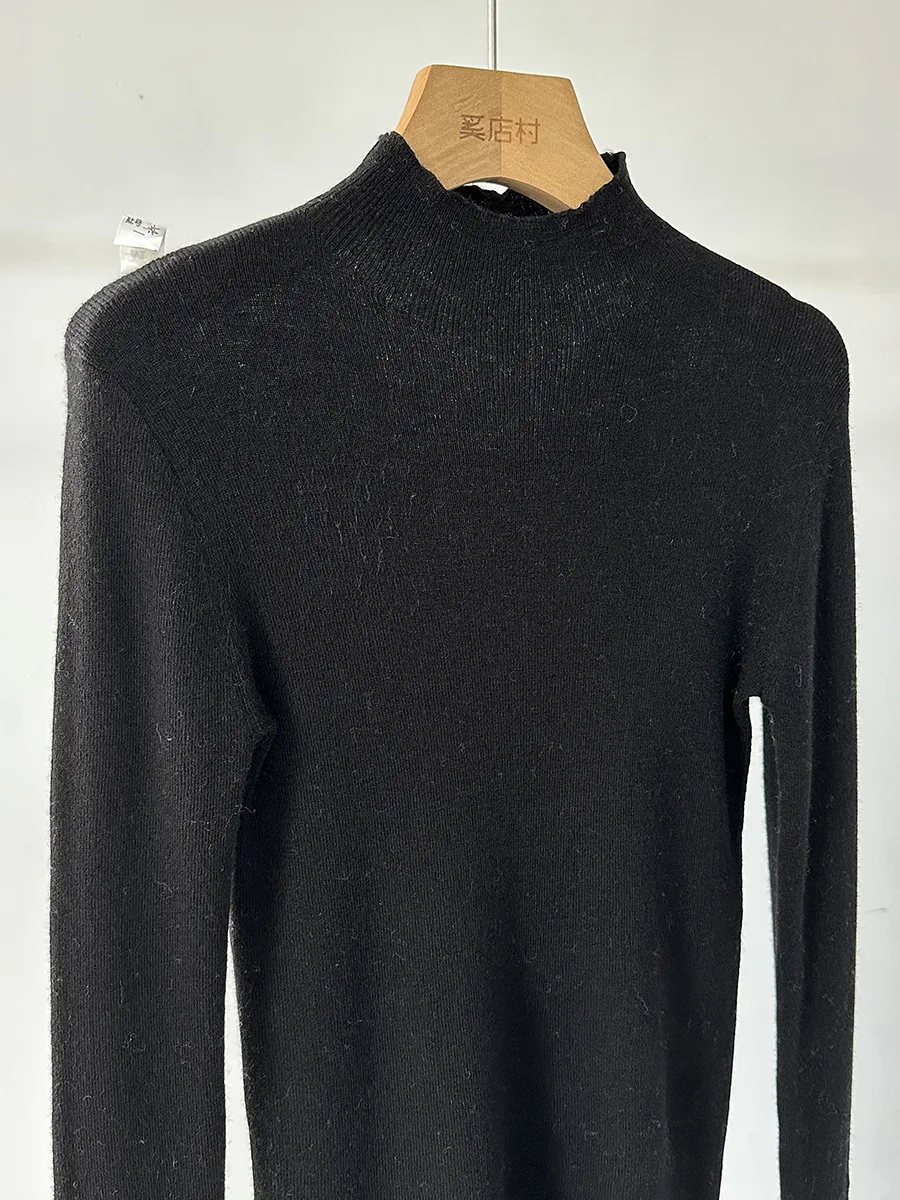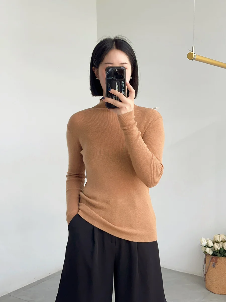 BirdTree, maglione sottile sottile 100% lana, collo a lupetto manica lunga donna, fondo senza cuciture alto elastico, autunno estate 2024 Tessuto: 100% lana