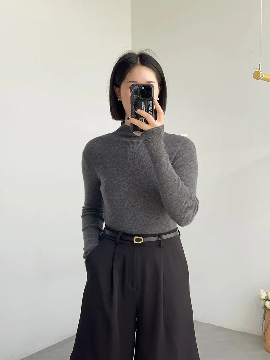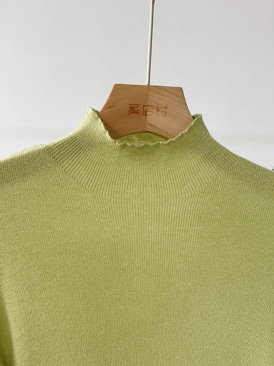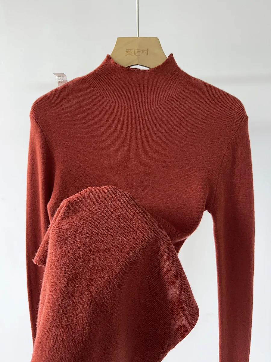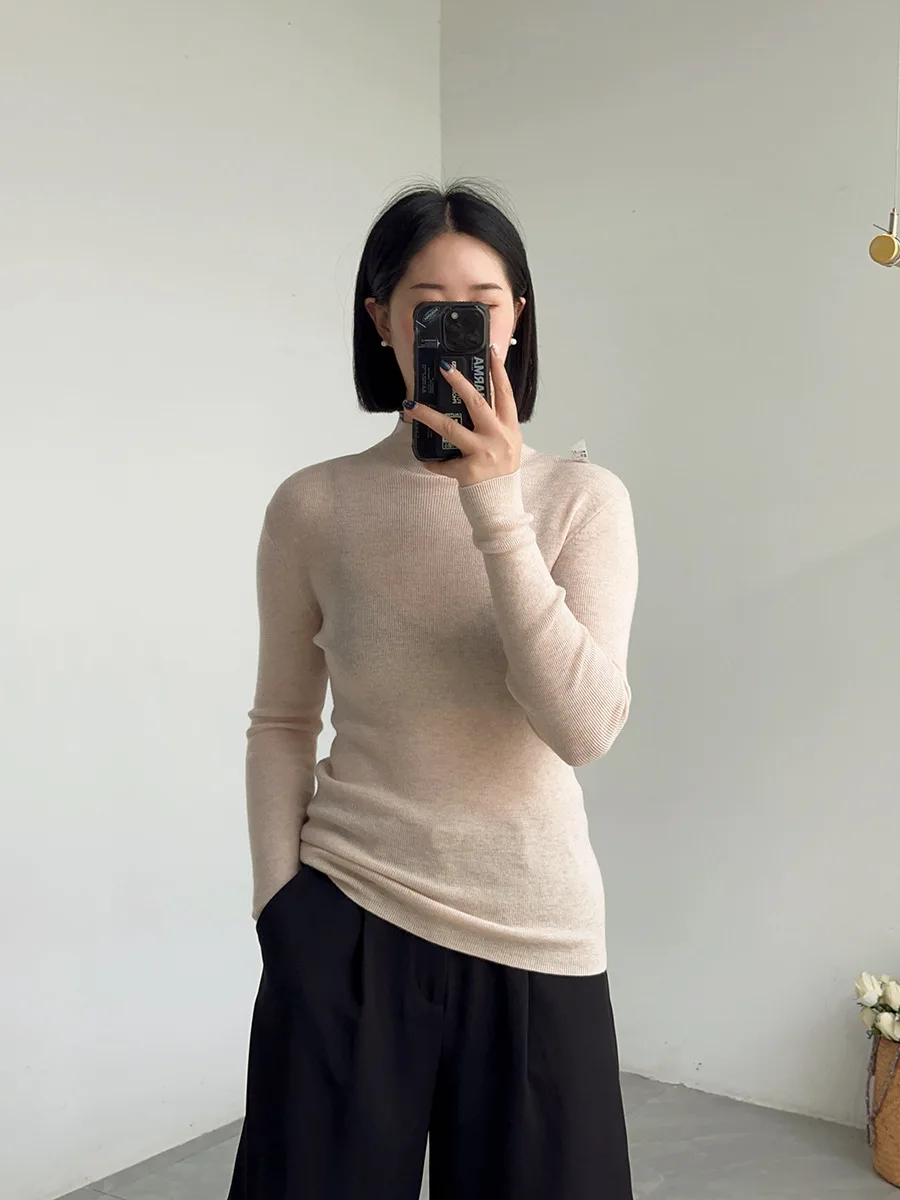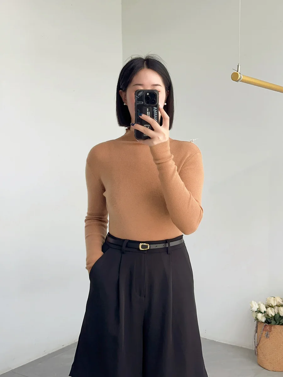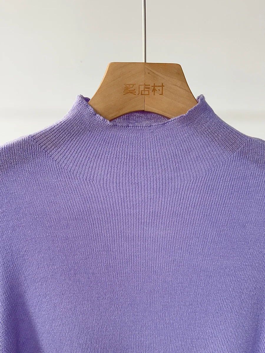 BirdTree, maglione sottile sottile 100% lana, collo a lupetto manica lunga donna, fondo senza cuciture alto elastico, autunno estate 2024 Tessuto: 100% lana