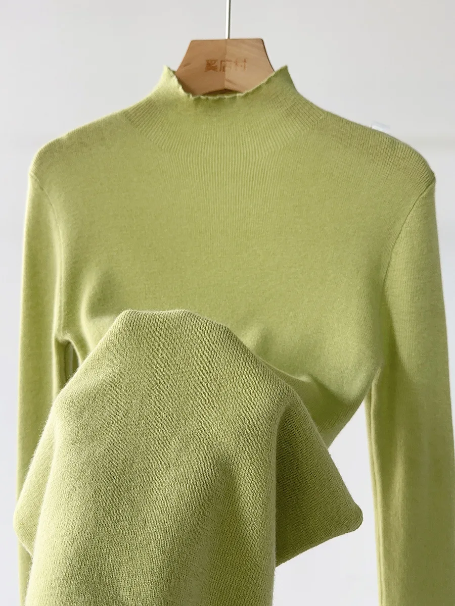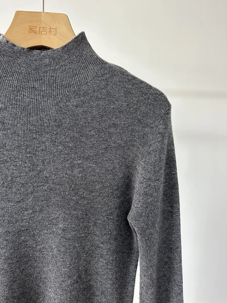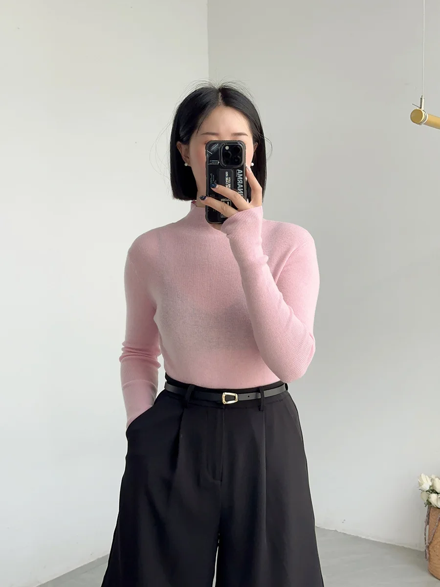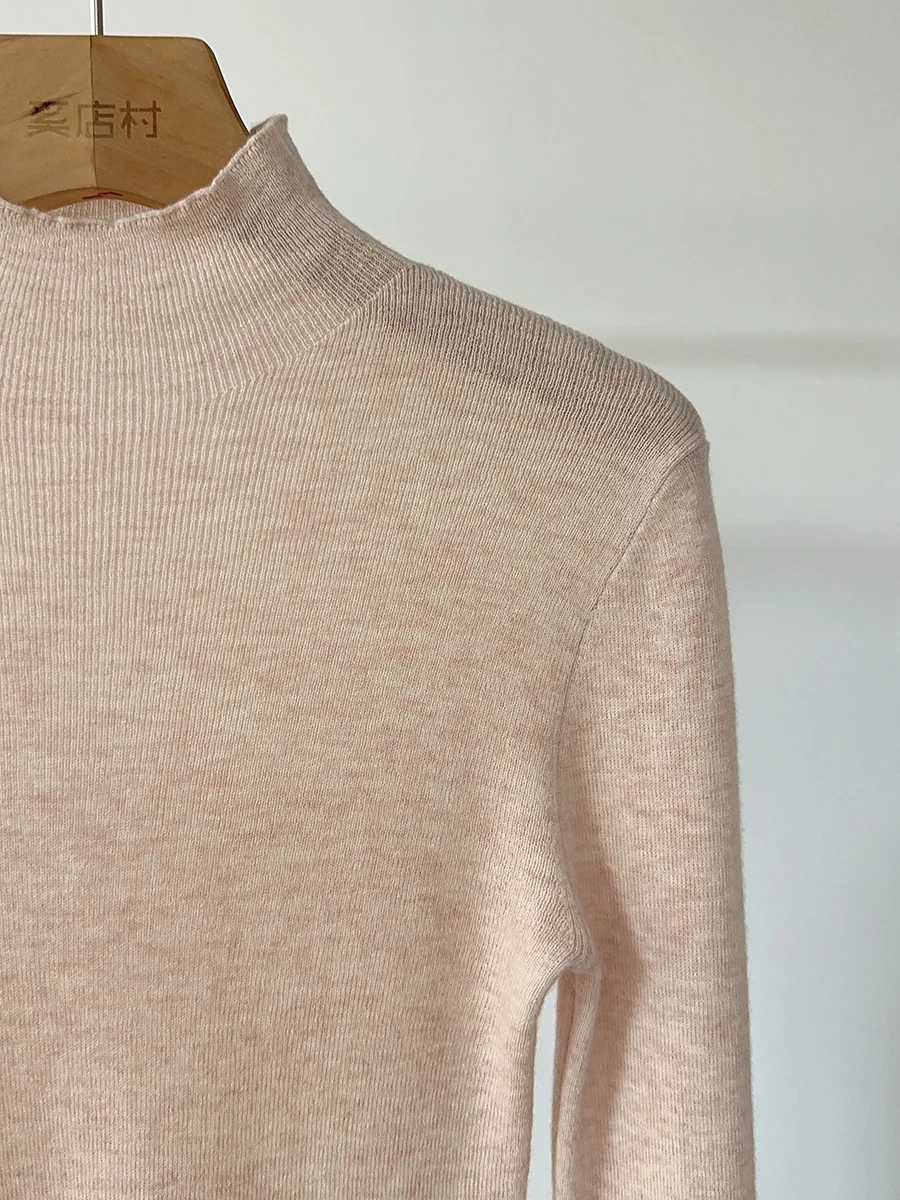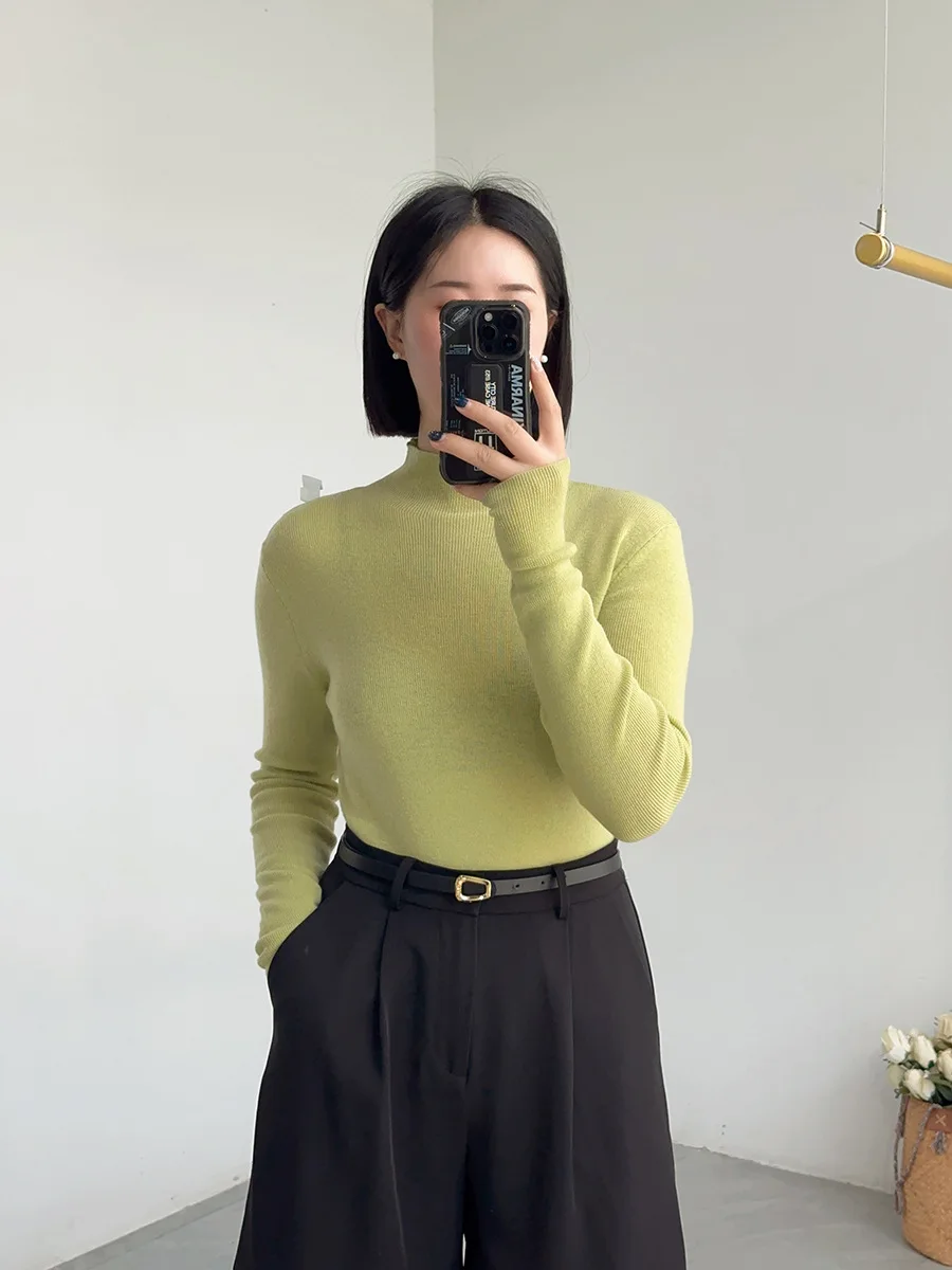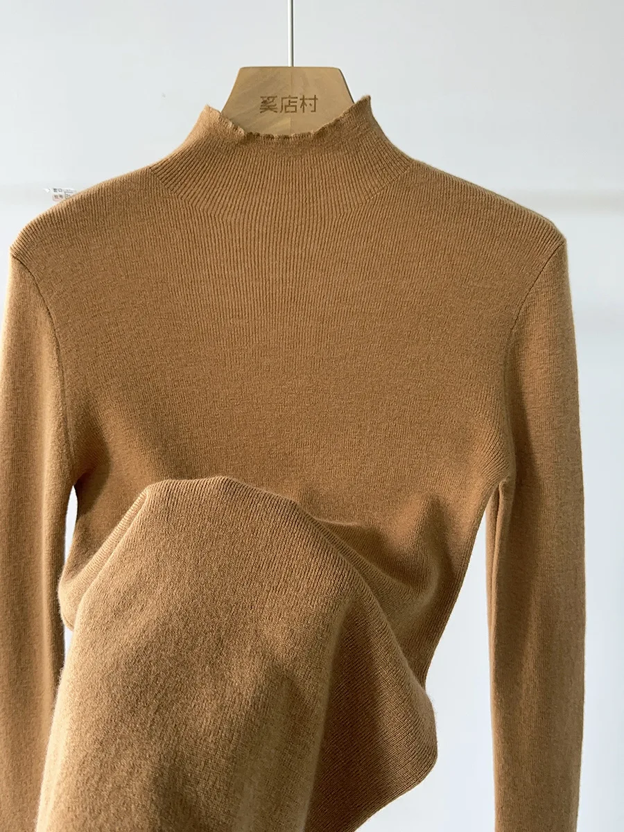 BirdTree, maglione sottile sottile 100% lana, collo a lupetto manica lunga donna, fondo senza cuciture alto elastico, autunno estate 2024 Tessuto: 100% lana