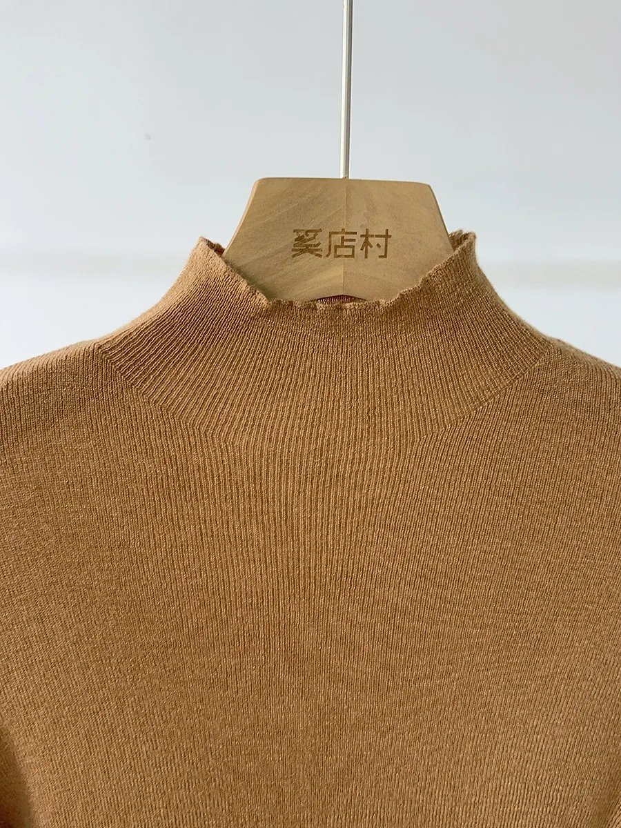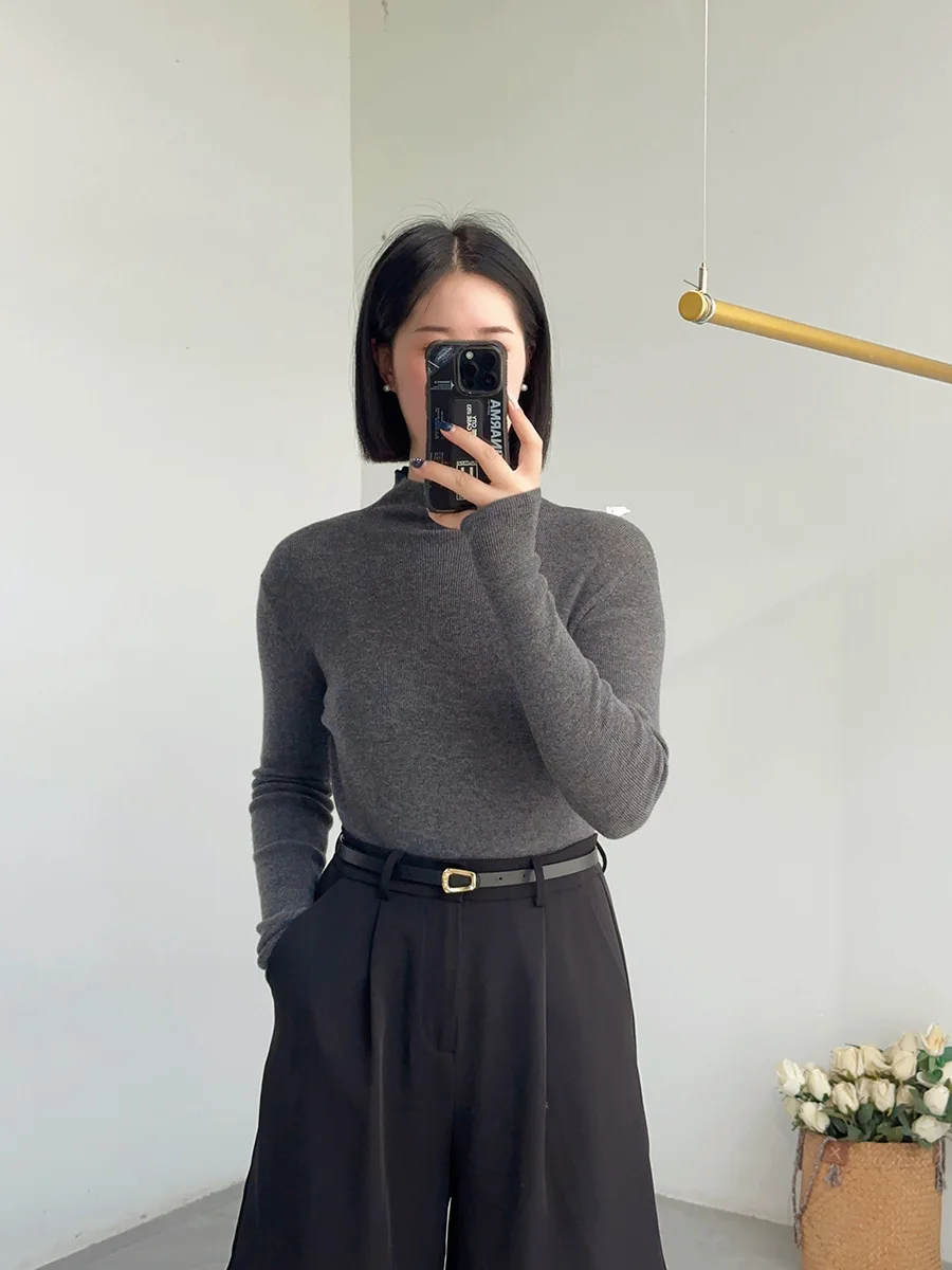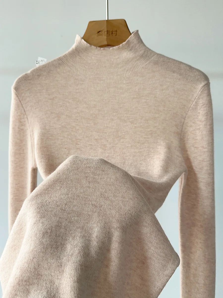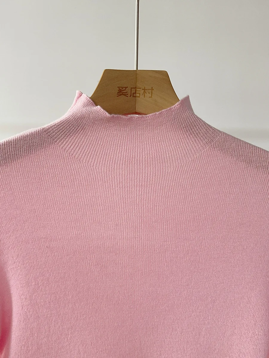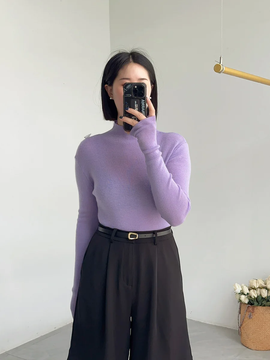 BirdTree, maglione sottile sottile 100% lana, collo a lupetto manica lunga donna, fondo senza cuciture alto elastico, autunno estate 2024 Tessuto: 100% lana
