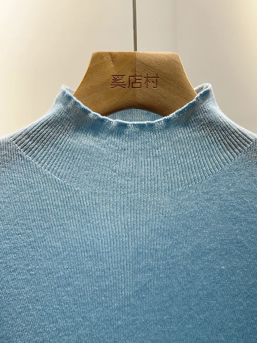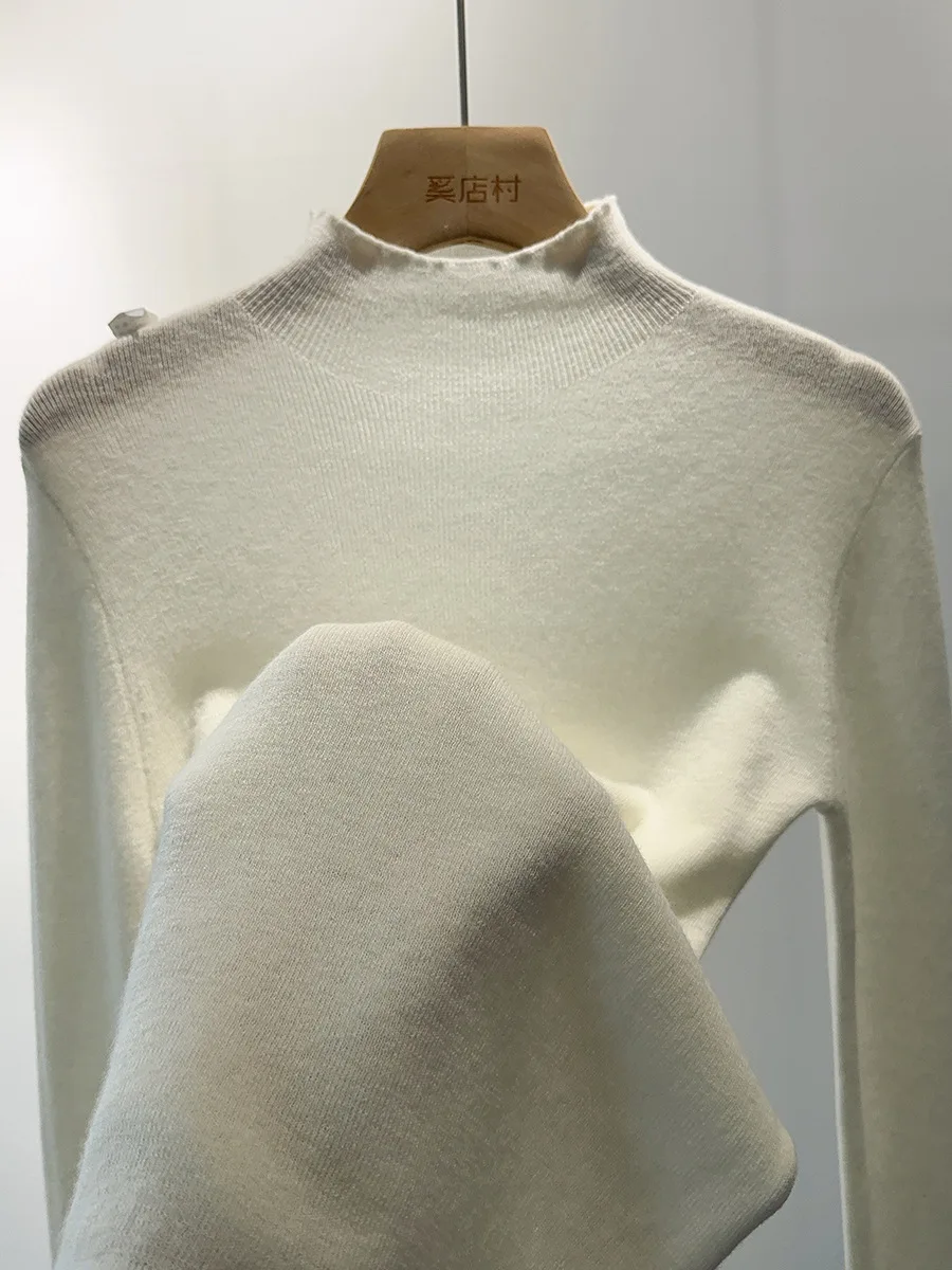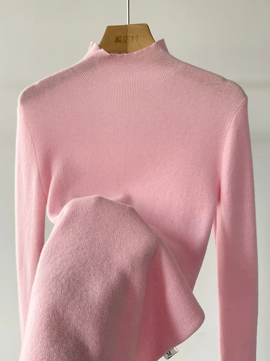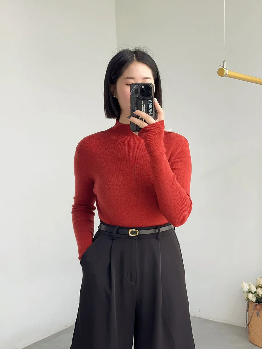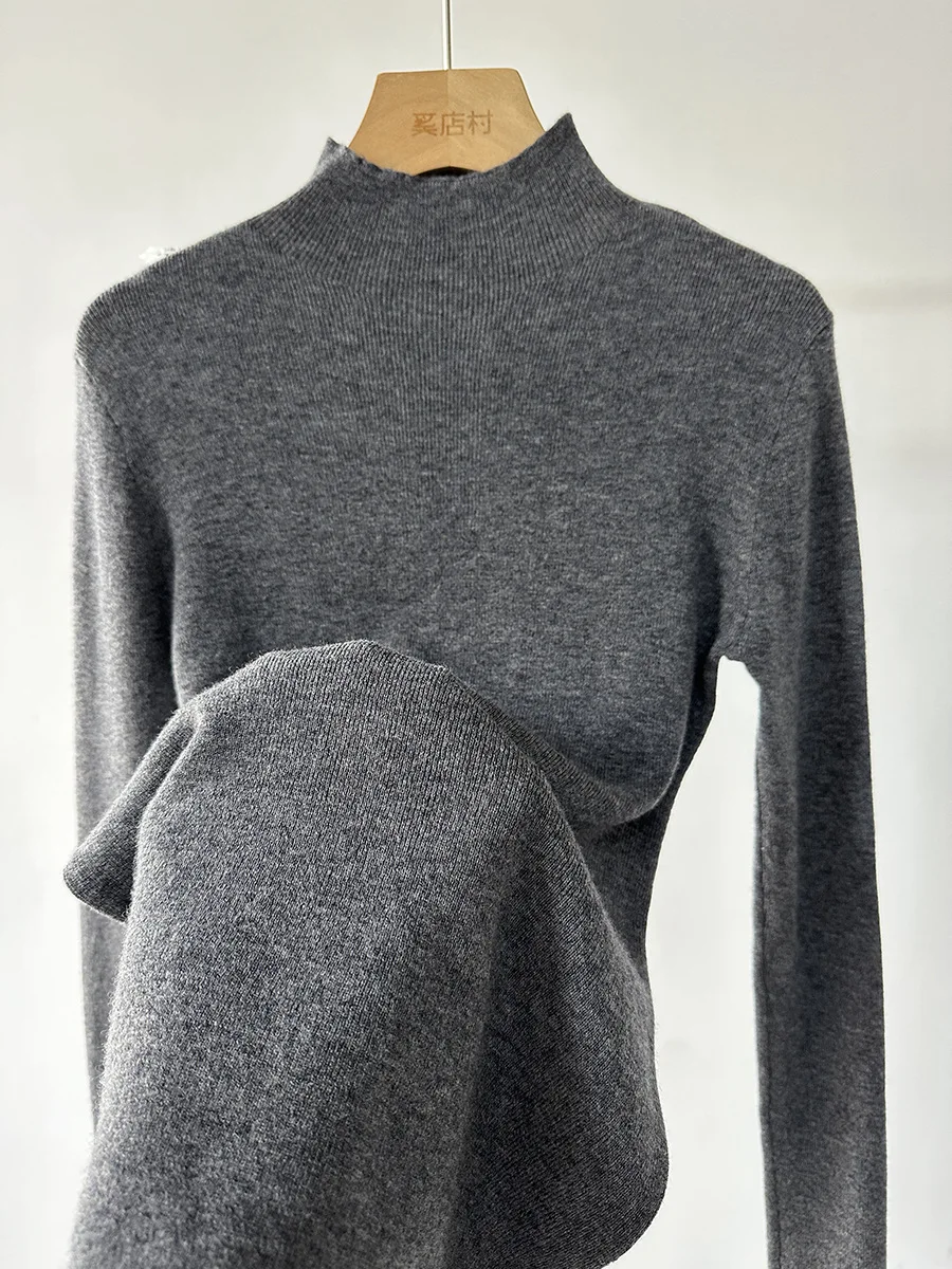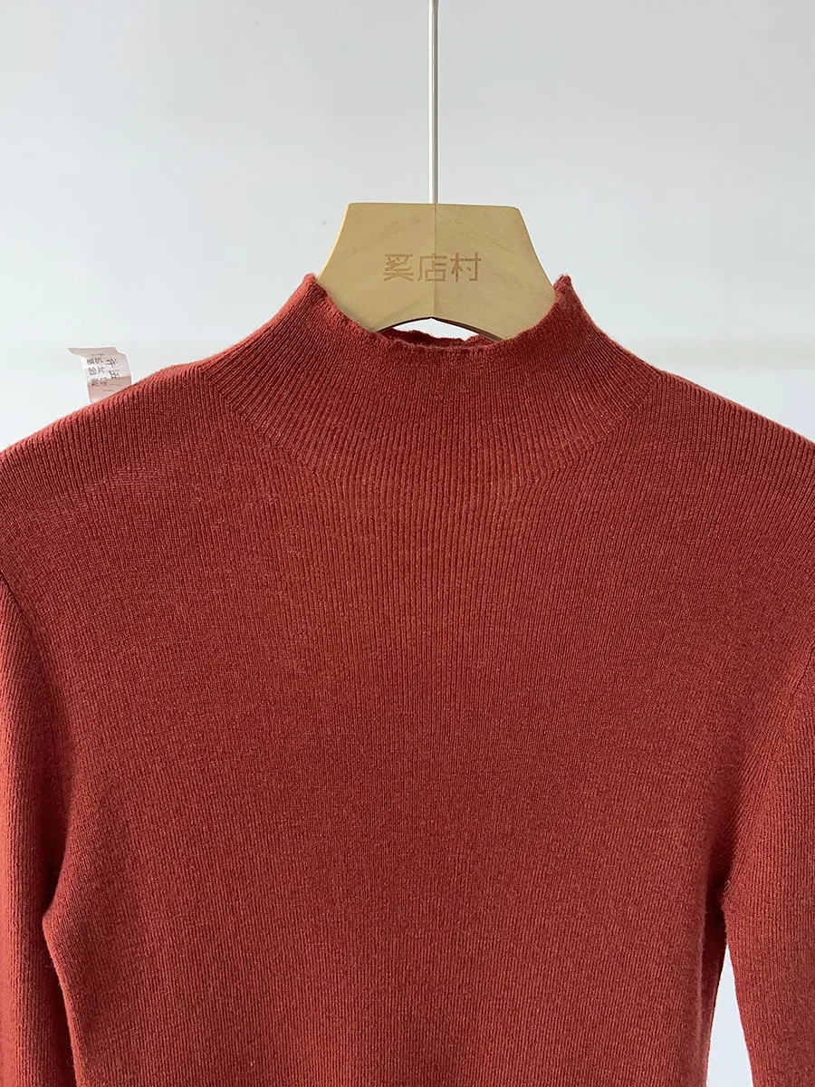 BirdTree, maglione sottile sottile 100% lana, collo a lupetto manica lunga donna, fondo senza cuciture alto elastico, autunno estate 2024 Tessuto: 100% lana