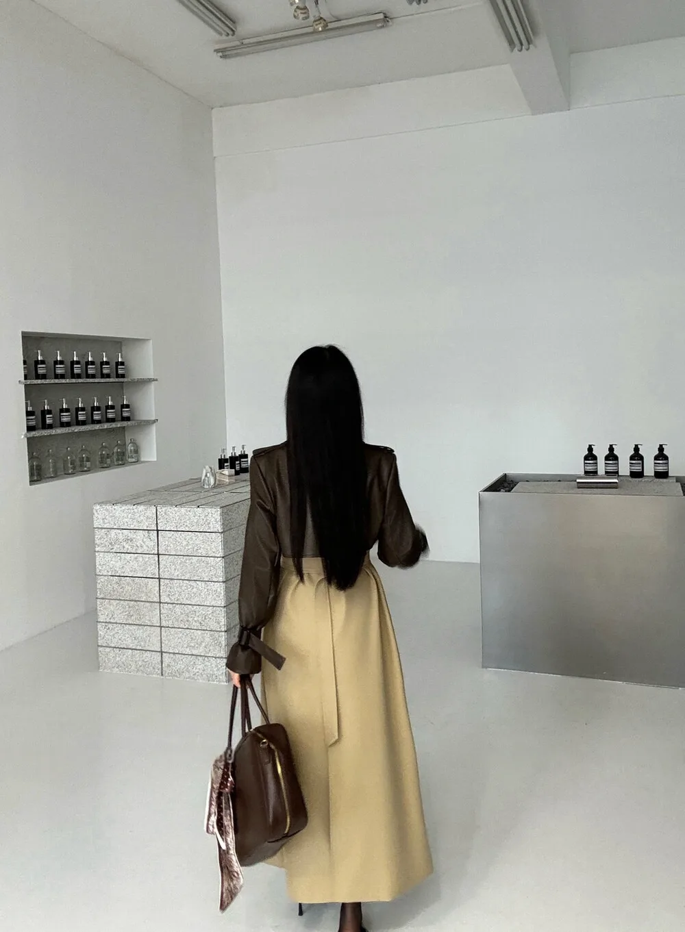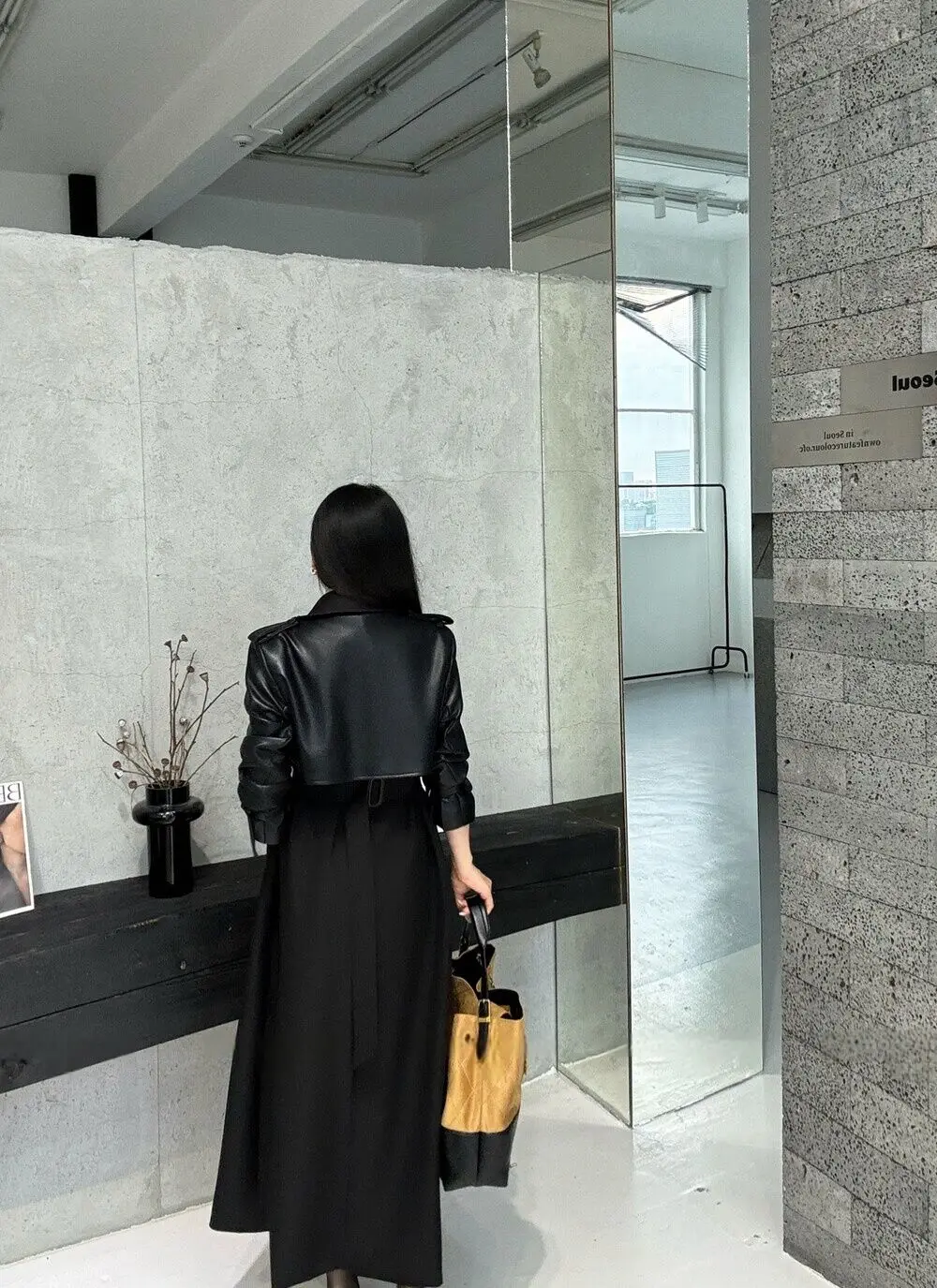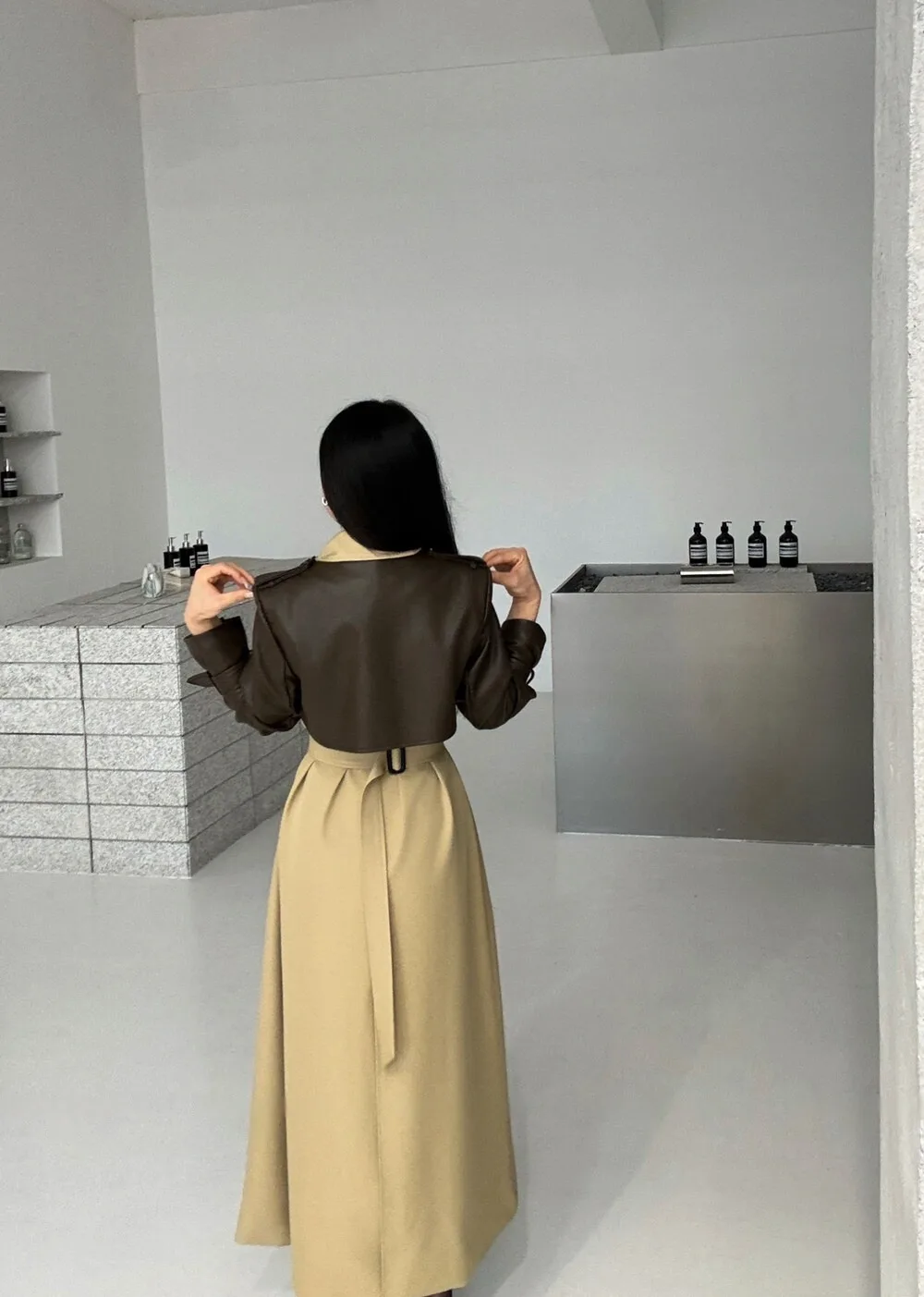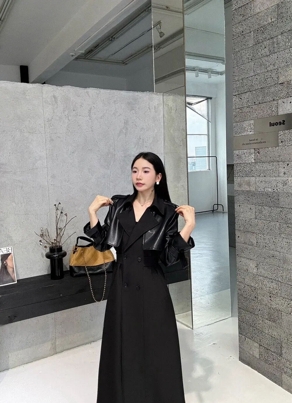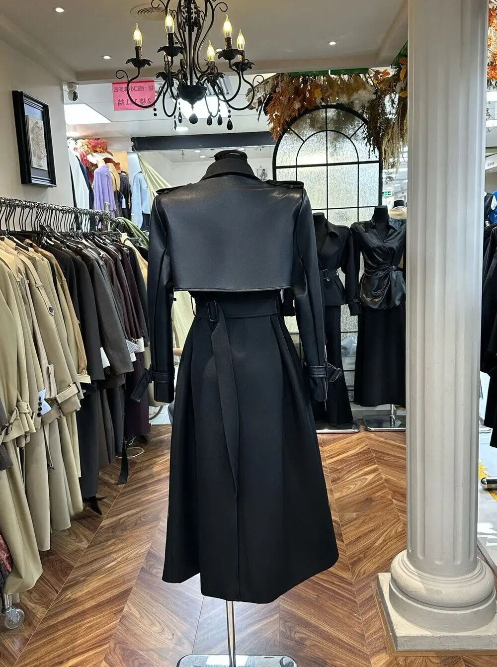 BJTZ 2025 Autunno Inverno Trench in pelle PU da donna Patchwork Color Block Luxury Elegante con cintura doppio petto Capispalla 1BJTZ 2025 Autunno Inverno Trench in pelle PU da donna Patchwork Color Block Luxury Elegante con cintura doppio petto Capispalla