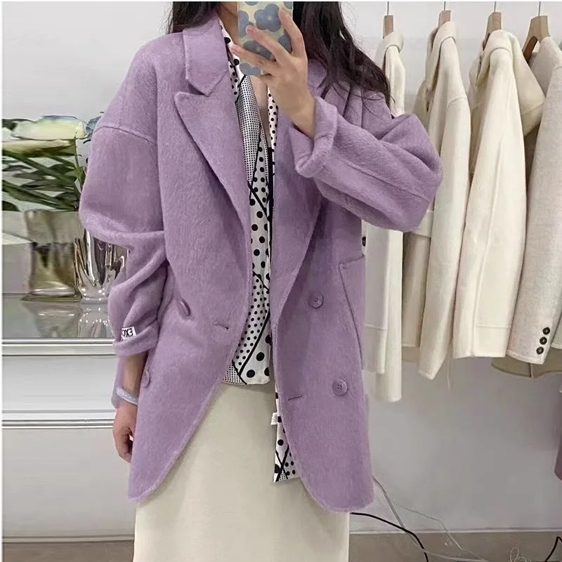 BJTZ Cappotto di lana double face con senso del design di fascia alta per donna Giacca di lana ampia da donna versatile da ufficio
