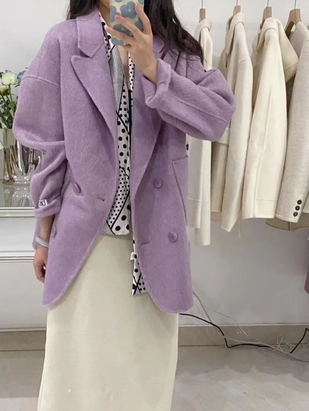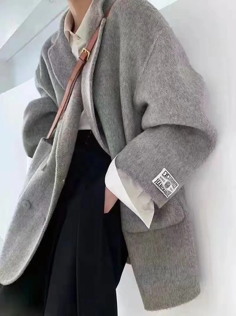 BJTZ Cappotto di lana double face con senso del design di fascia alta per donna Giacca di lana ampia da donna versatile da ufficio