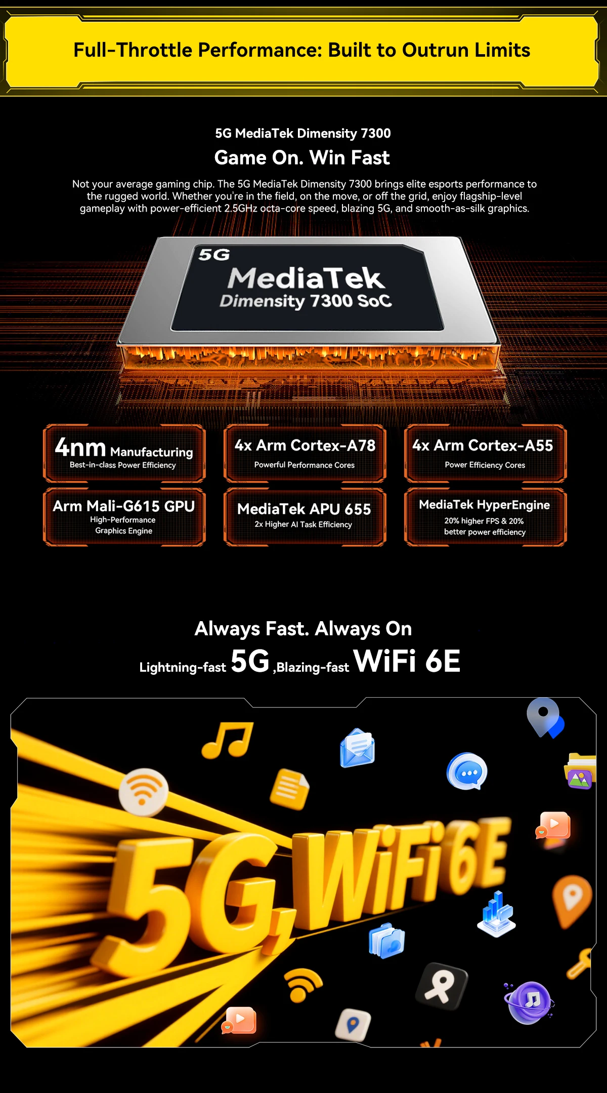 CPU: MediaTek Dimensity 7300 (MT6878), Octa-core,4 x A78 2,5 GHz+ 4x A55 2,0 GHz