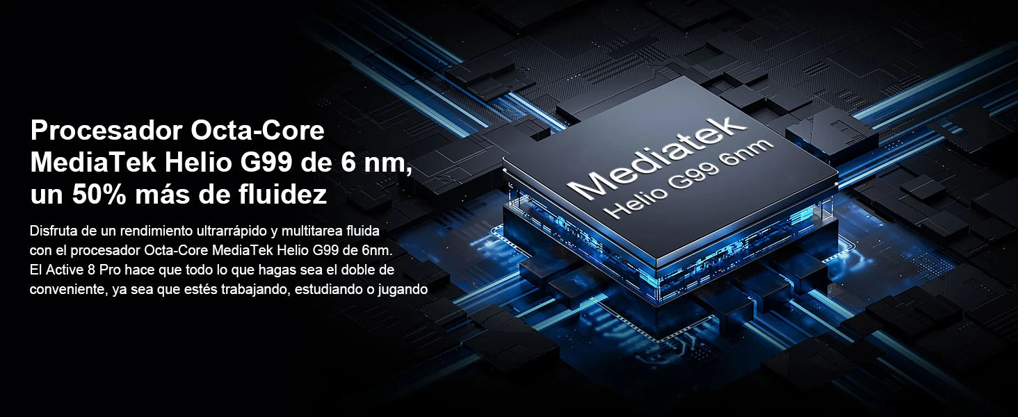 Il tablet Active 8 Pro viene fornito con il processore MediaTek G99 fino a 2,2 GHz, ha 8 GB di RAM integrata e possibilità di aumento con 8 GB di memoria virtuale aggiuntiva, garantisce un funzionamento regolare ed un’esperienza multimediale di prima classe.