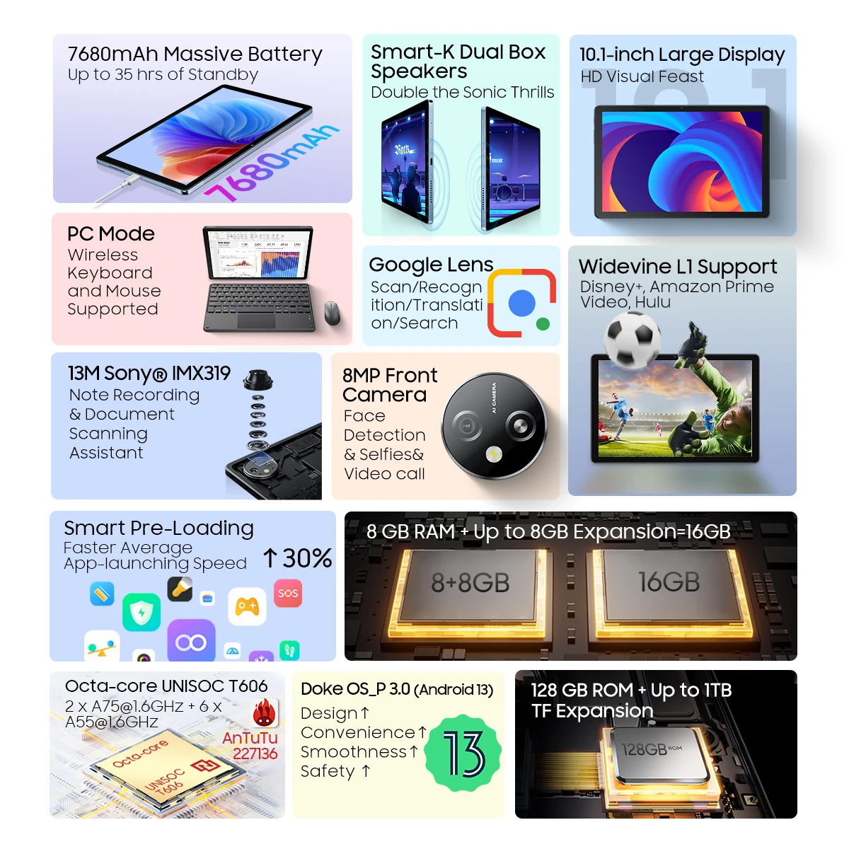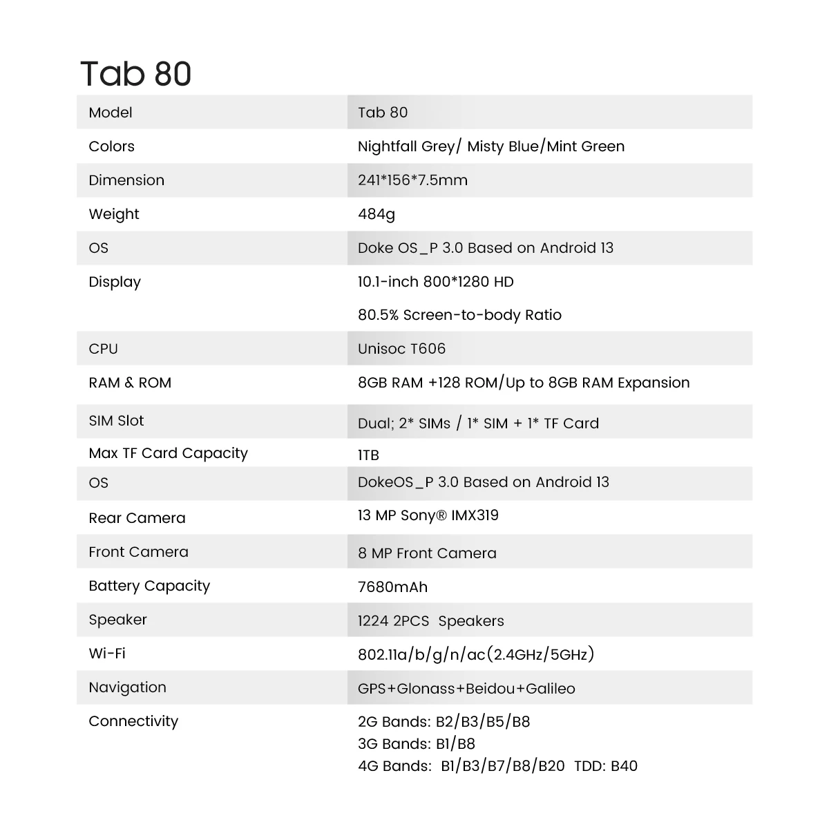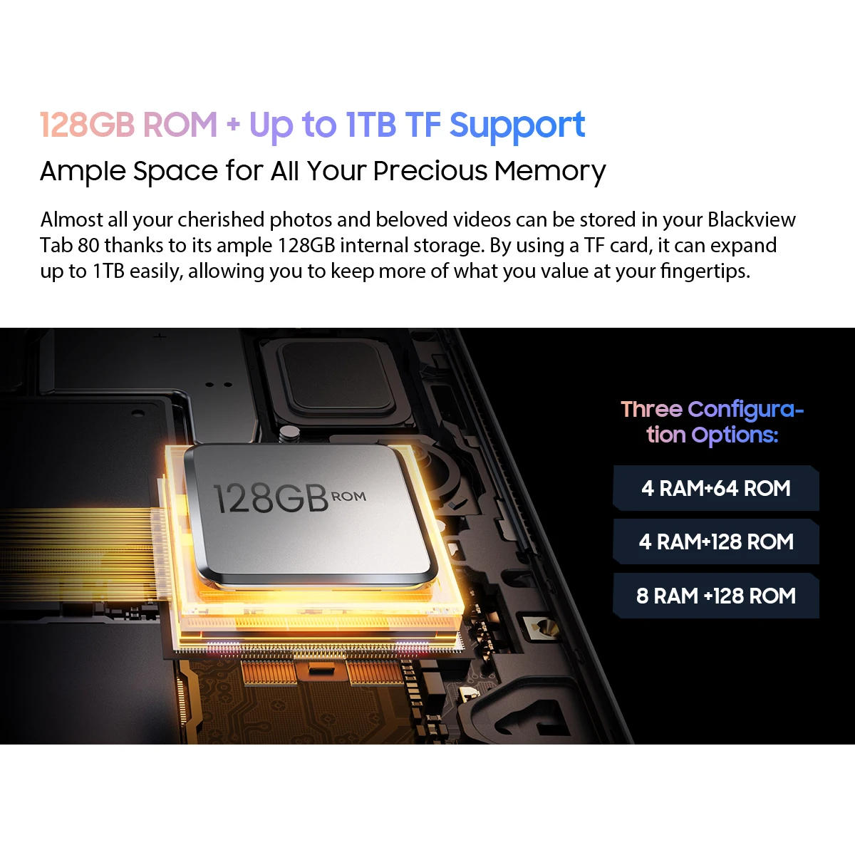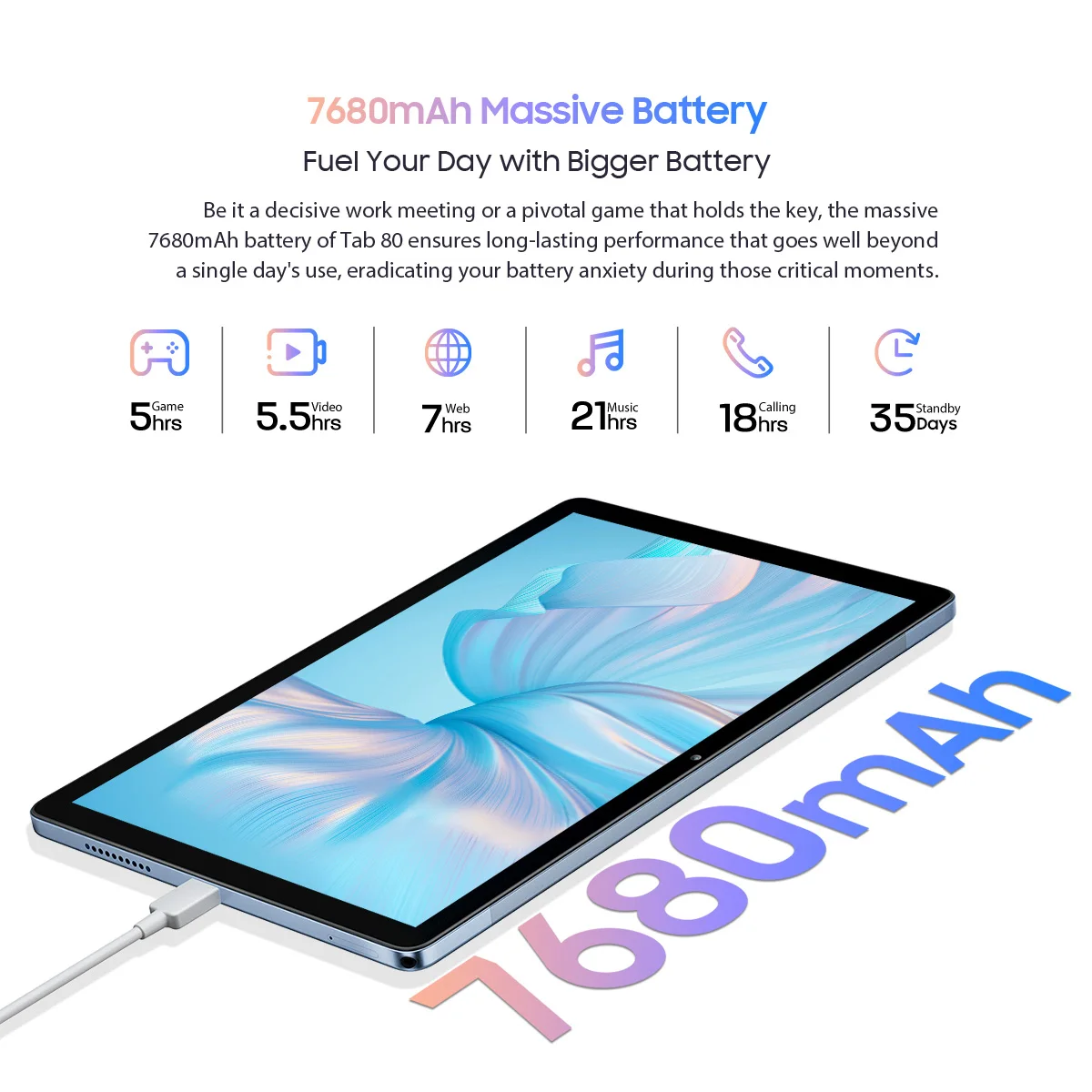 Blackview Tab 80 Tablet Android 13 8GB + 128GB Display HD da 10,1 pollici T606 Octa Core 7680mAh 2.4G/5G WiFi 13MP Fotocamera posteriore Tablet 4G