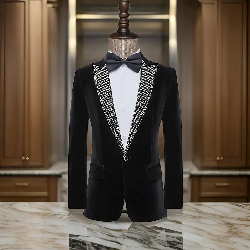 Blazer da ballo in velluto nero di lusso per uomo Slim Fit 1 pezzo giacca da smoking perline giacca con risvolto a punta blazer da uomo per feste di scena 1Blazer da ballo in velluto nero di lusso per uomo Slim Fit 1 pezzo giacca da smoking perline giacca con risvolto a punta blazer da uomo per feste di scena