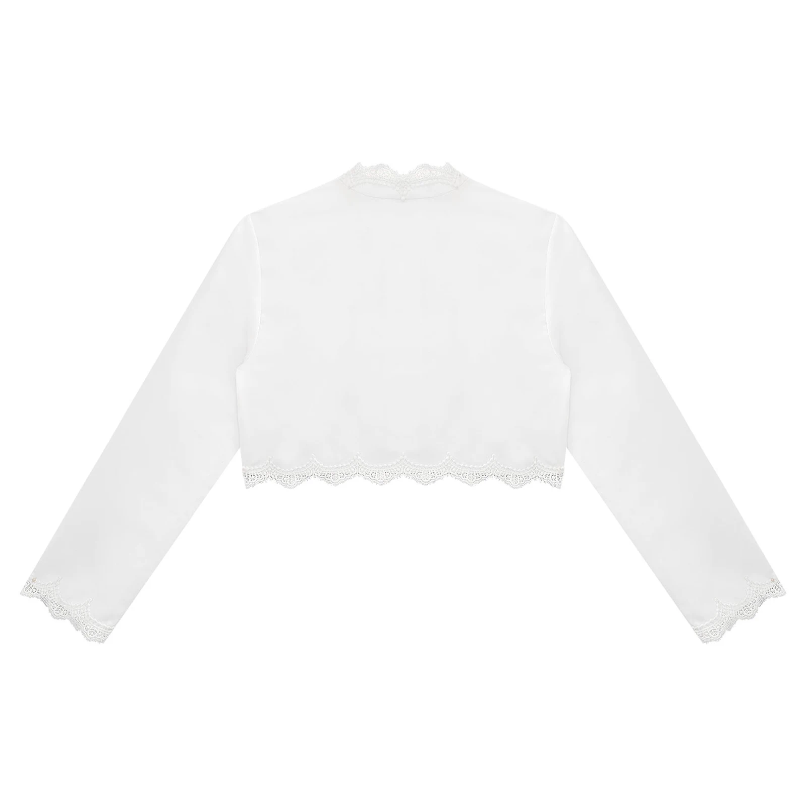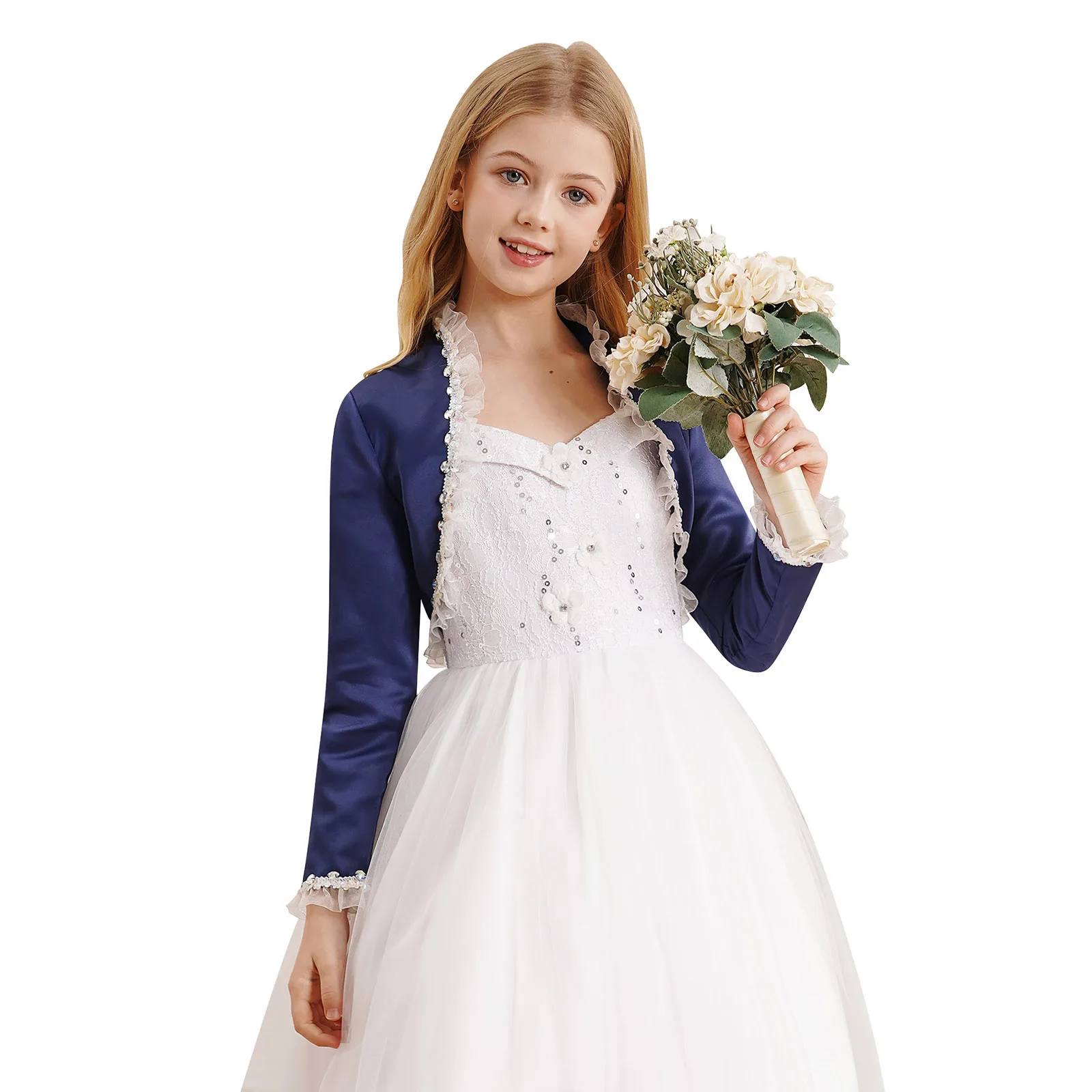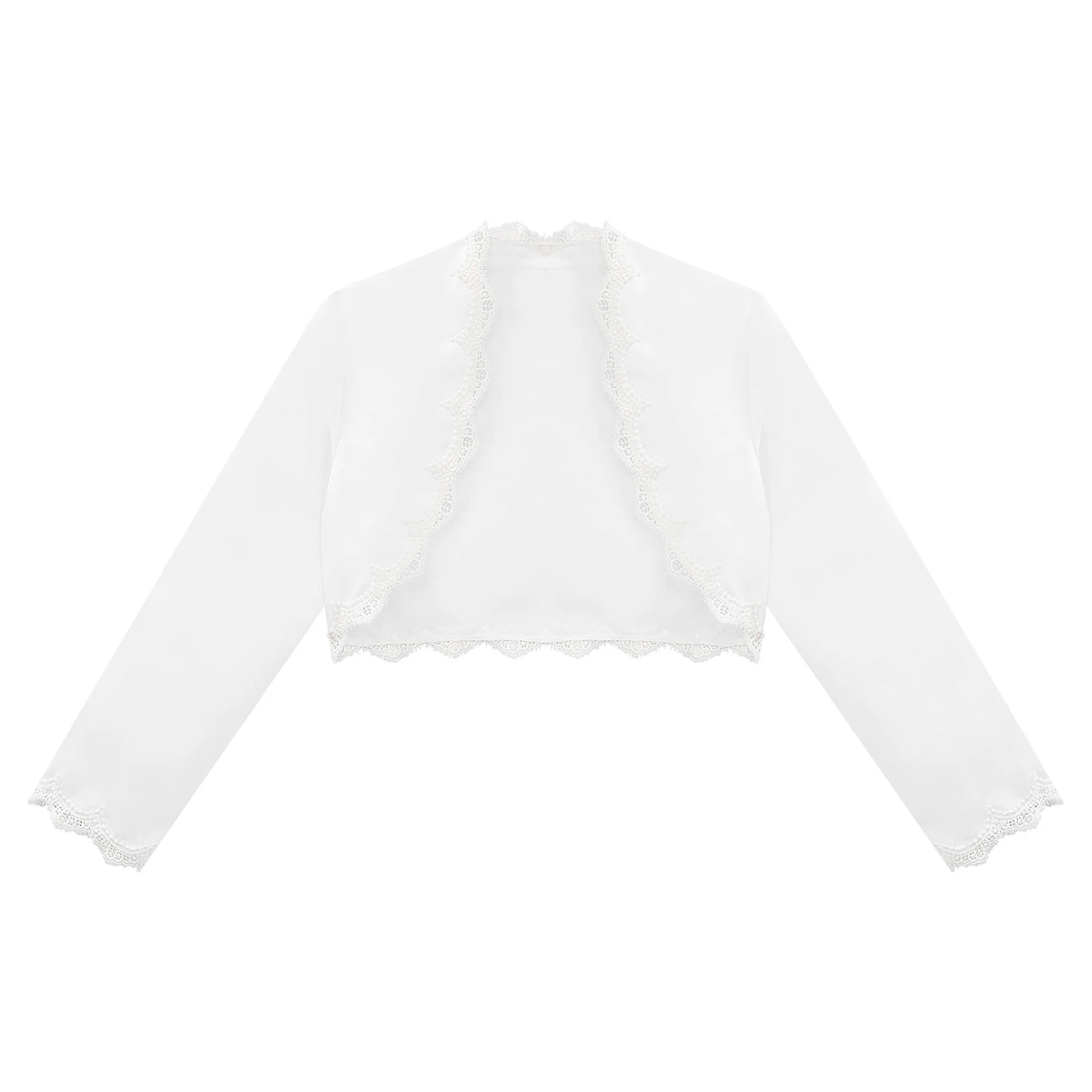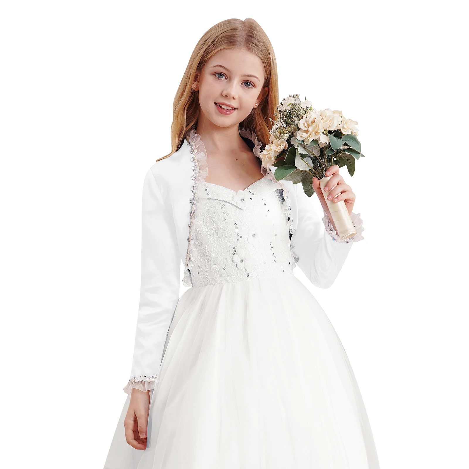 Bolero Cardigan frontale aperto con maniche lunghe a sbuffo Bolero in rilievo elegante per bambina giacca da ragazza con fiore avvolgente per feste di nozze 1Bolero Cardigan frontale aperto con maniche lunghe a sbuffo Bolero in rilievo elegante per bambina giacca da ragazza con fiore avvolgente per feste di nozze