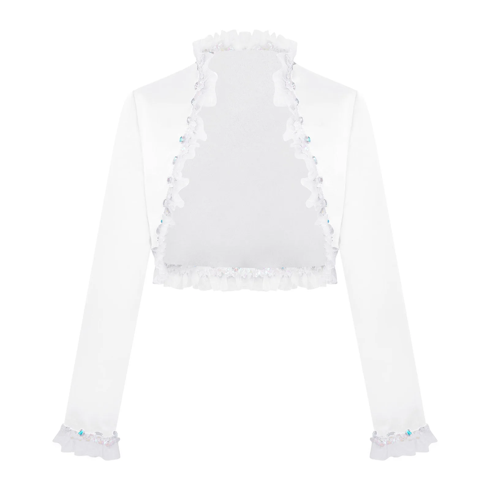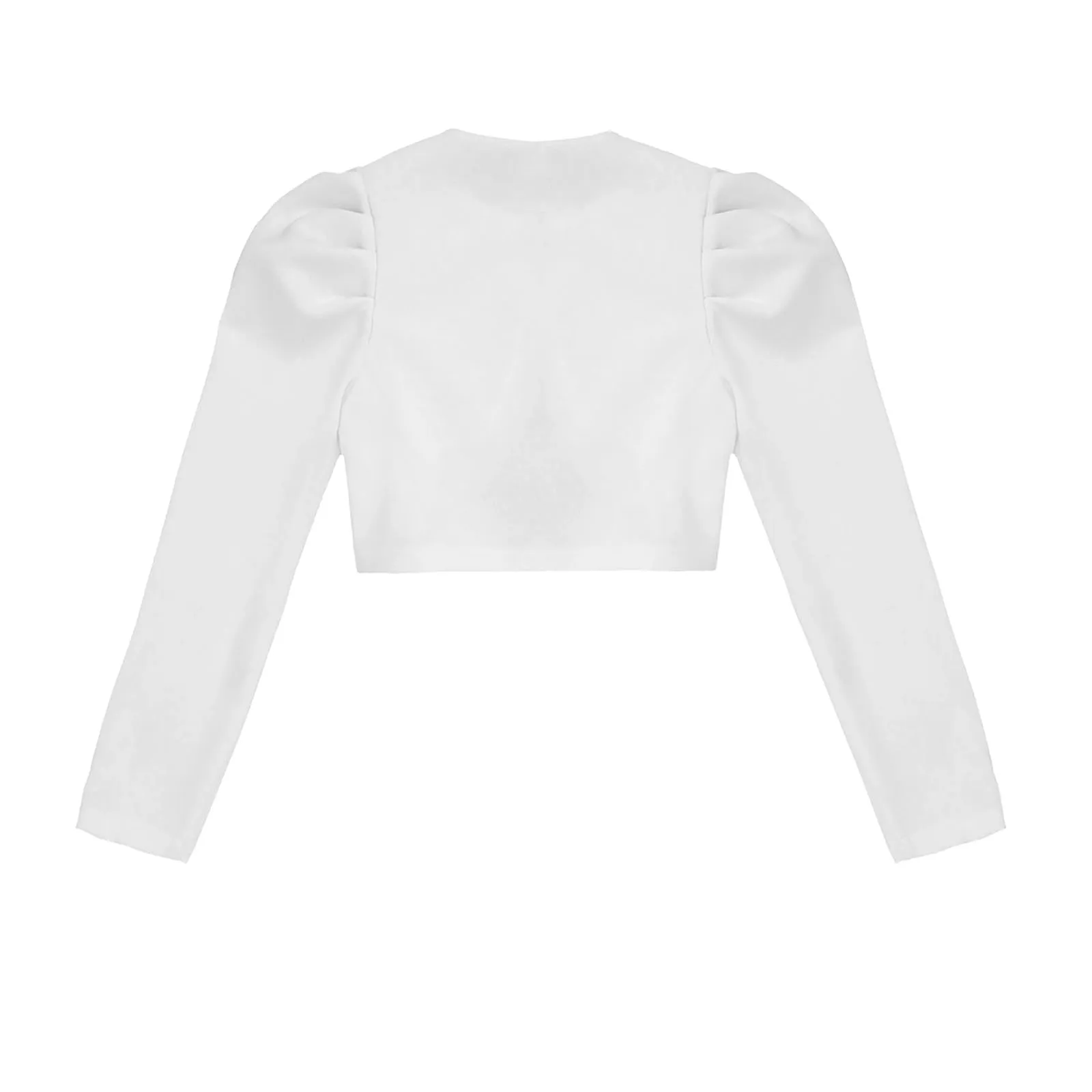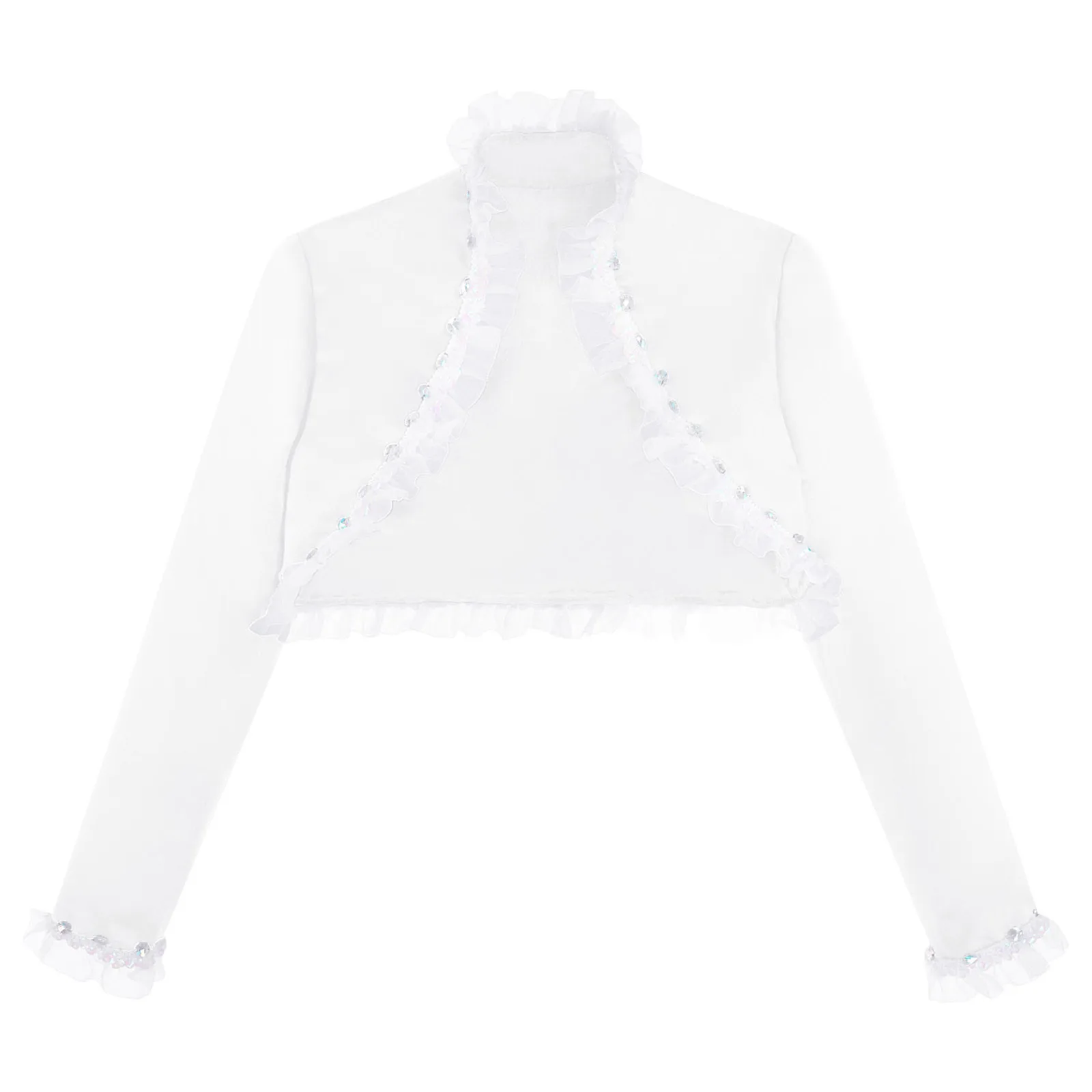 Bolero Cardigan frontale aperto con maniche lunghe a sbuffo Bolero in rilievo elegante per bambina giacca da ragazza con fiore avvolgente per feste di nozze 1Bolero Cardigan frontale aperto con maniche lunghe a sbuffo Bolero in rilievo elegante per bambina giacca da ragazza con fiore avvolgente per feste di nozze