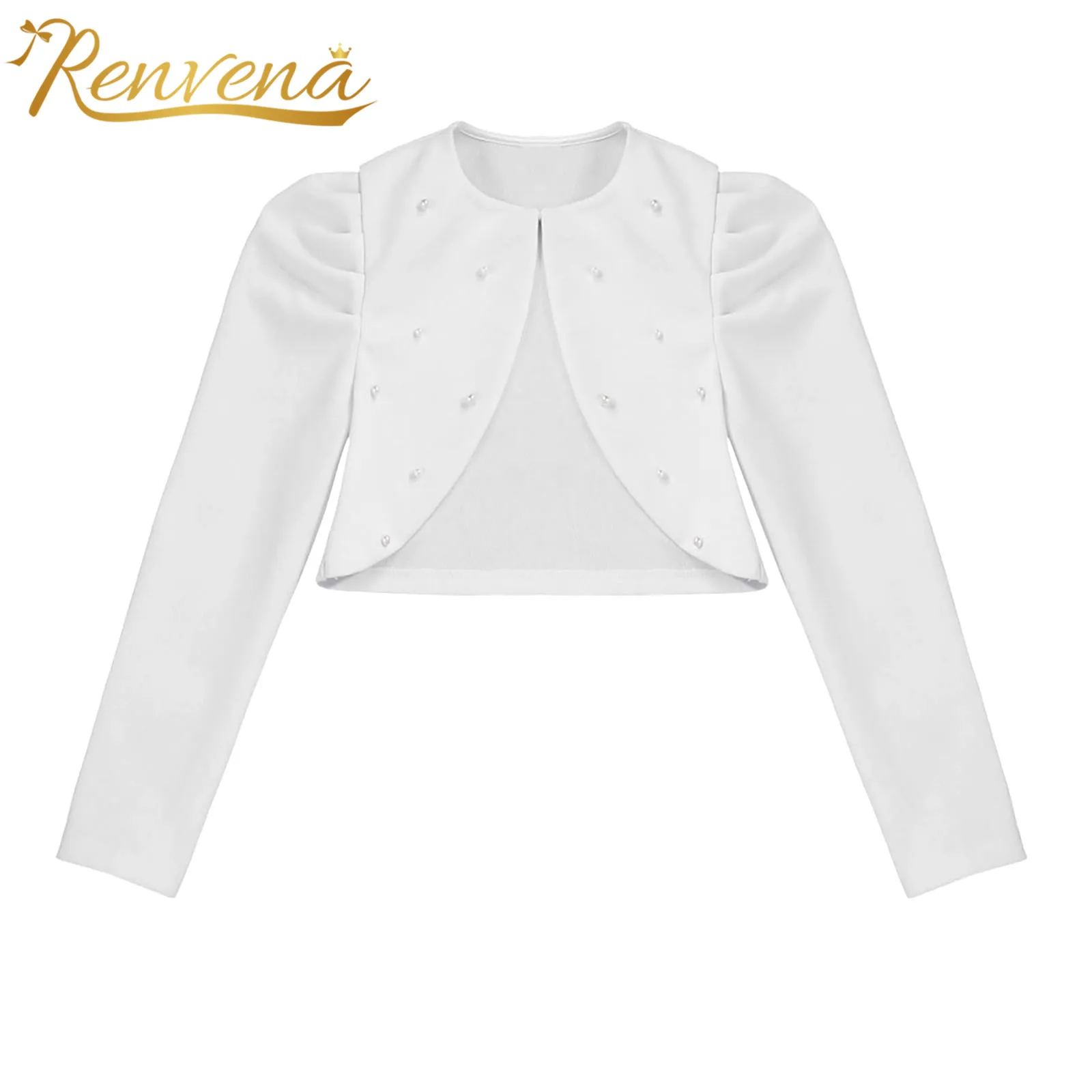 Bambini ragazze elegante Bolero di perline manica lunga a sbuffo Cardigan aperto sul davanti Bolero per Pageant Wedding Party Wrap Flower Girls Jacket Il Set Include: 1Pc BoleroCondizione: Nuovo con TagMateriale: Poliestere, perle finte