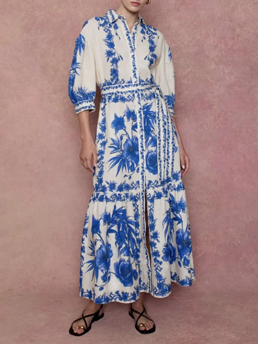 Caratteristica: vita legata, stampa floreale, pieghettata, giunto diviso,