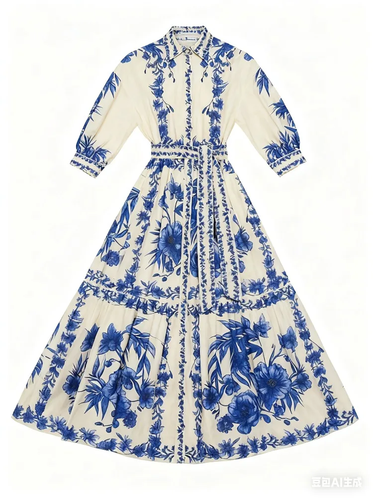 Caratteristica: vita legata, stampa floreale, pieghettata, giunto diviso,