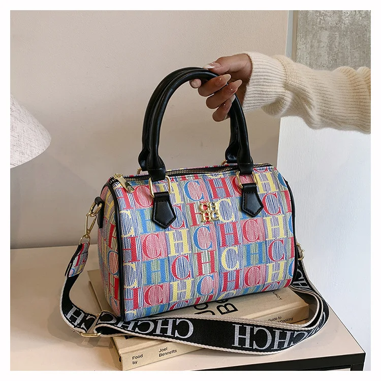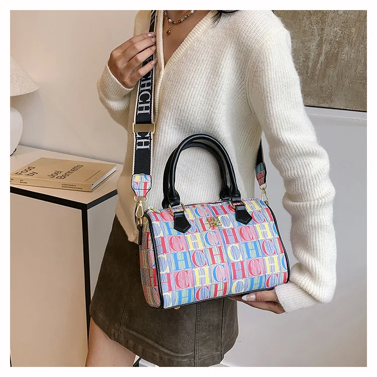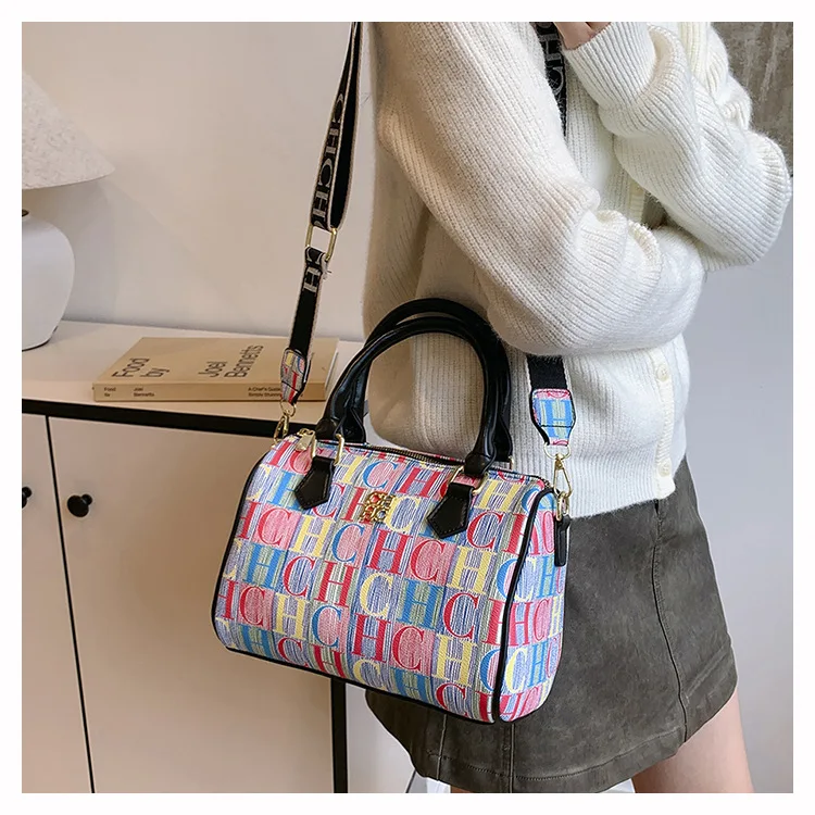 Borsa a secchiello alla moda con scritte 2025, borsa a tracolla di ispirazione vintage, borsa a tracolla in tela con coulisse, must-have alla moda