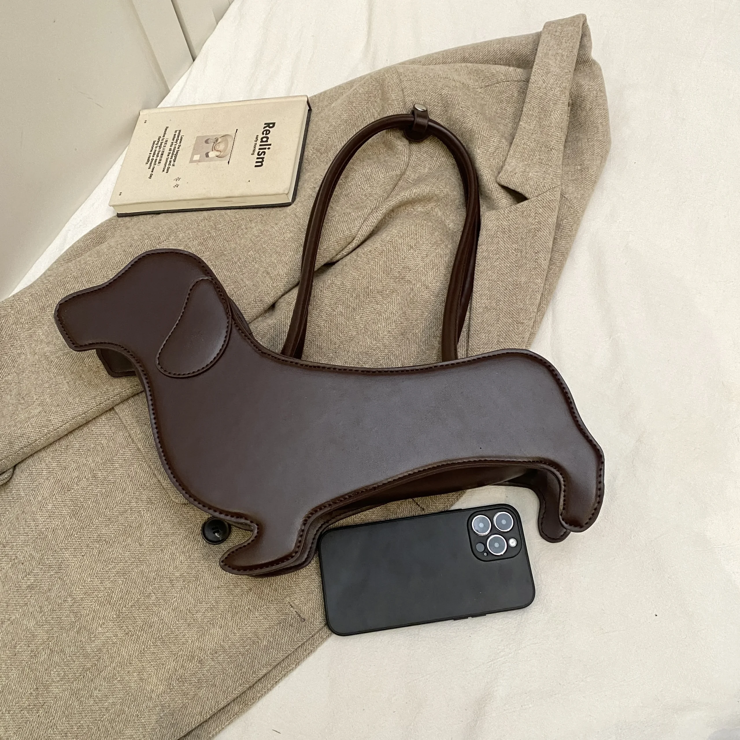 Borsa a tracolla bassotto tridimensionale INS borsa retrò in tessuto pu borsa ascellare dal design minoritario coreano